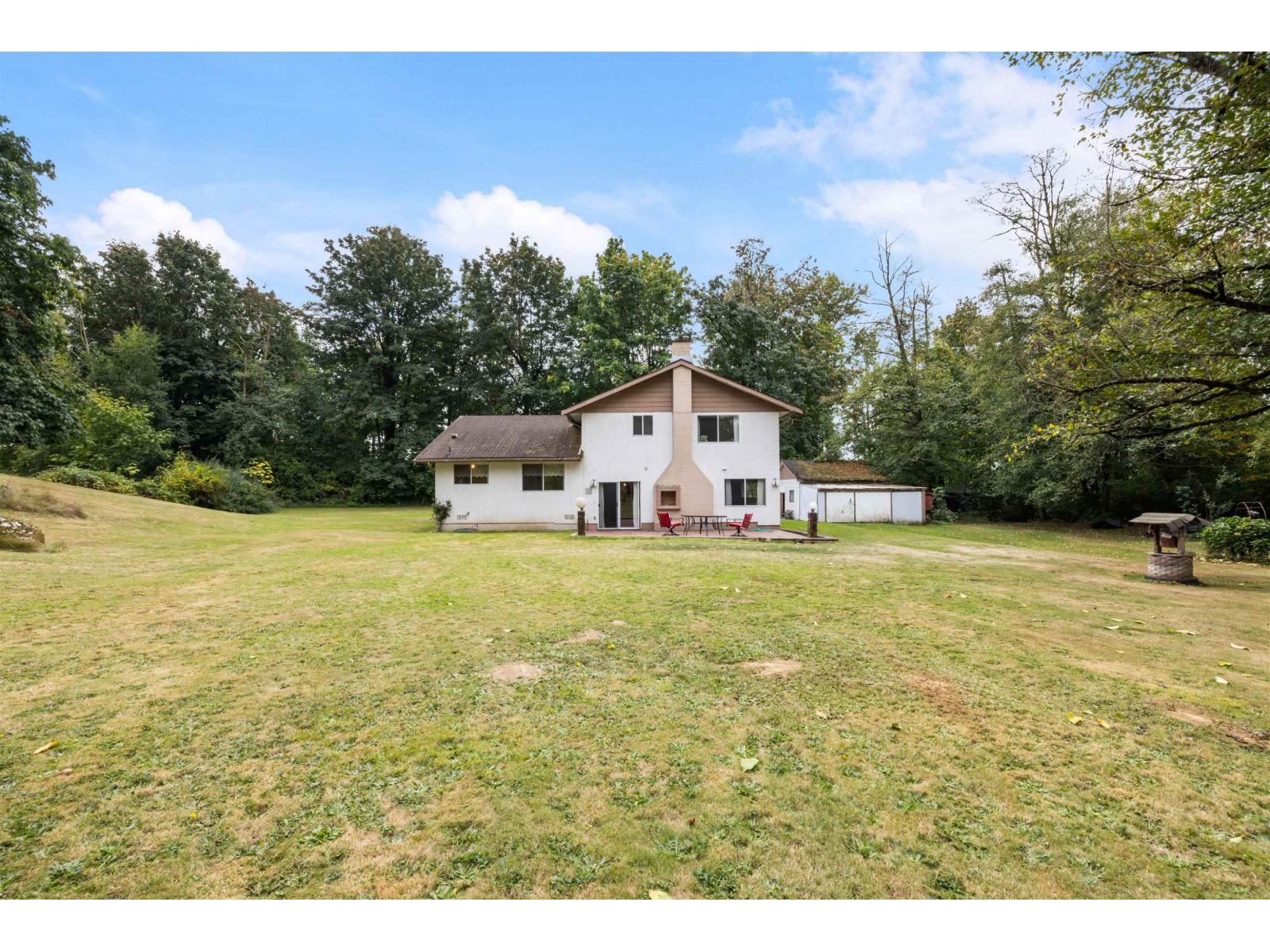 First time offered for sale in 50 YEARS! This prime acreage in South Langley's Aldergrove sits on a quiet no through street. This unique 4.14-acre property, featuring approximately 395' of frontage by 455' of depth, is zoned RU-2 (Rural Zone), is an incredible future building site of your dream home. Winding driveway with loads of parking and spots for your toys. Charming 3-level split home has been meticulously cared for by the owners and remains in the pristine condition it was in five decades ago-a true time capsule ready for your renovation vision. Located on a quiet dead-end road, this tranquil acreage offers privacy and a peaceful, long-term investment. Don't miss this once-in-a-lifetime chance to own a piece of South Langley's best-kept. Do not enter property without an appointment. (id:44393)