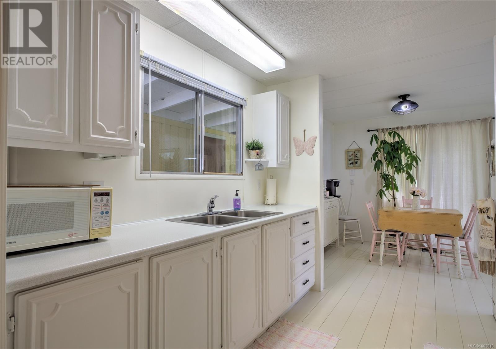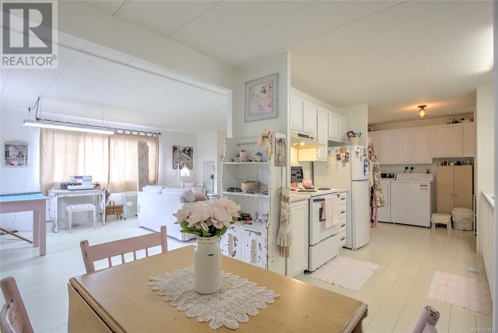 $618 MonthlyThis double wide mobile home is so bright and welcoming and has an open layout. Great living space with 1056 sqft, well laid out kitchen with separate eating area, large living room, 2 bedrooms plus a den, lots of storage (6 x10) and workshop (6x7). There is also lots of covered outside space including a deck which looks out to the peaceful seasonal creek. There is a carport as well to keep the vehicle dry in the winter and cooler in the summer. The park has a great community feel and is very well run. It is close to shopping, recreation, restaurants and golf course. 55 plus, sorry no cats or dogs permitted. (id:44393)
