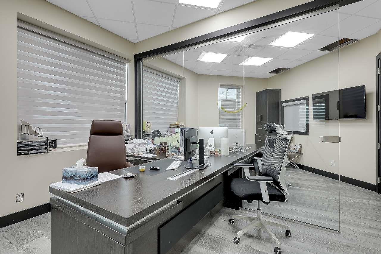 2,796 Sq.Ft Office Space in PAYAL BUSINESS CENTRE!? Prime corner unit with expansive windows flooding the space with natural light, creating a bright and welcoming environment. Excellent visibility and exposure for your business! The office features 11 private rooms, 2 washrooms, and a spacious boardroom, making it ideal for a variety of professional uses. Recently renovated and freshly painted, the unit showcases modern finishes, glass doors, and a sleek contemporary vibe. A perfect workspace for professional firms seeking a highly functional, move-in ready office in one of Surrey's most sought-after business centres. (id:44393)