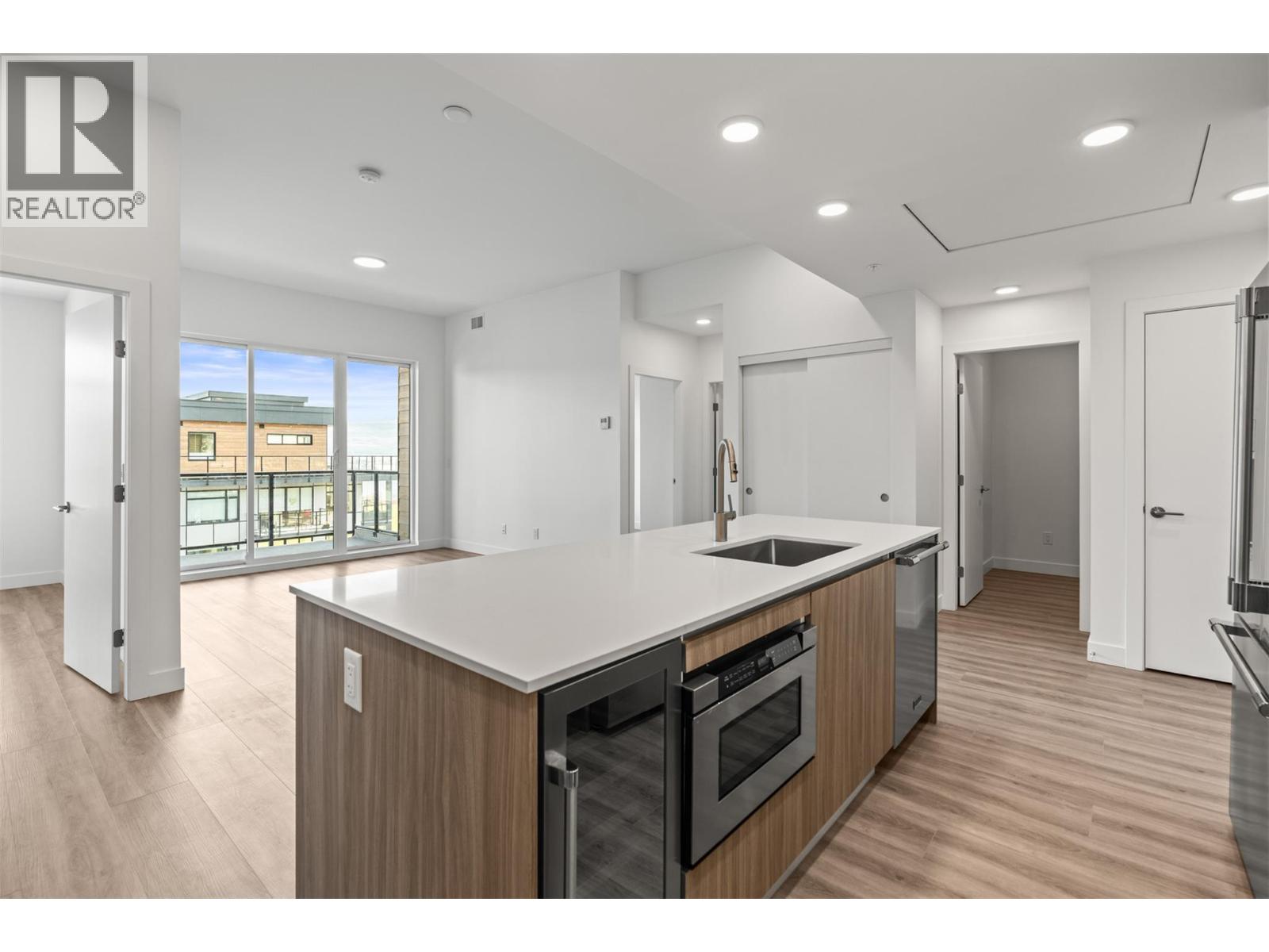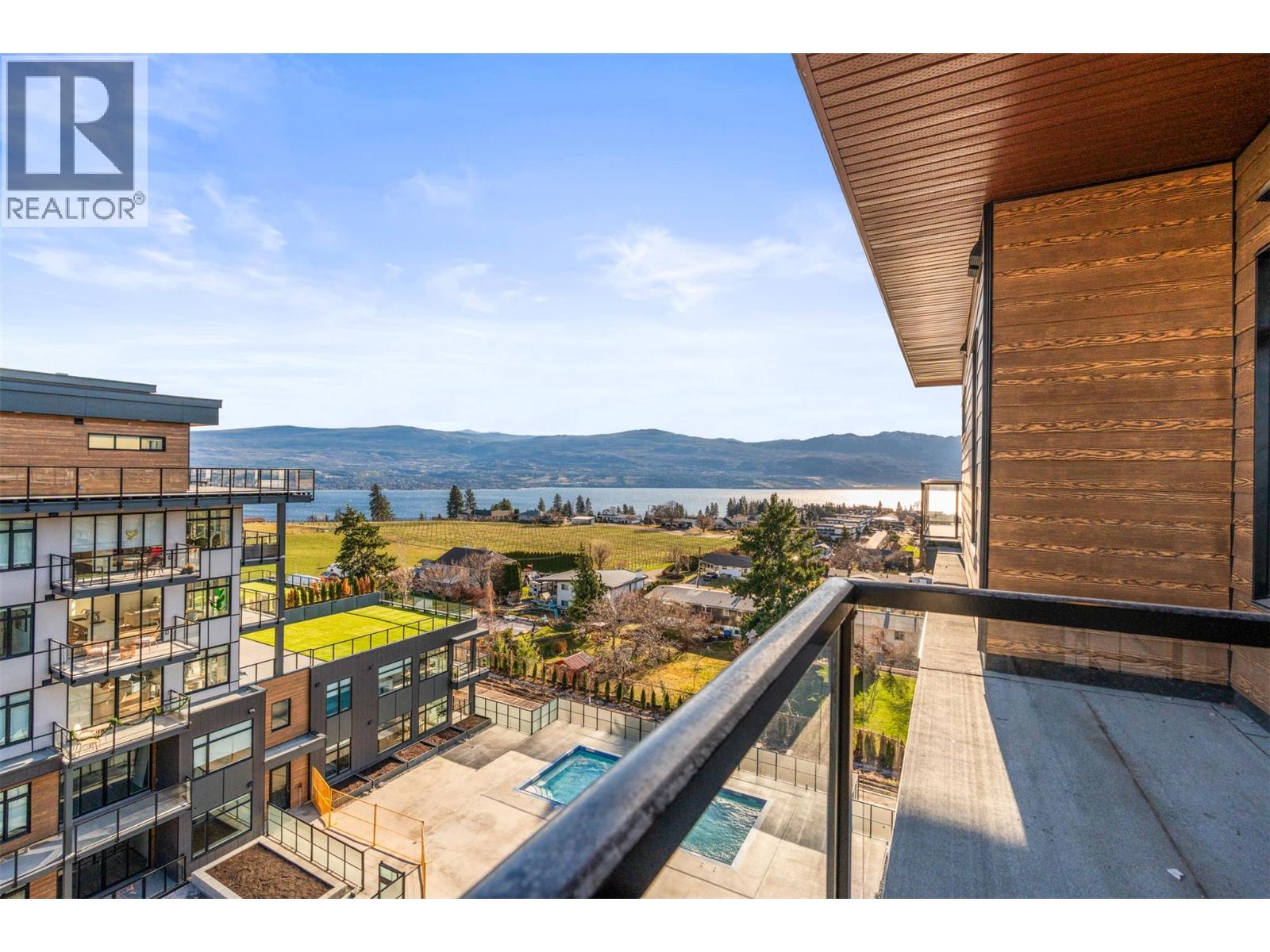 $491.10 MonthlyExperience elevated living in this brand-new 2 bedroom + den, 2 bathroom corner residence, where thoughtful architecture meets breathtaking surroundings. Wrapped in an expansive glass deck, the home captures sweeping views across the lake, vineyards, and mountains, while floor-to-ceiling windows bathe the interior in natural light. At the heart of the home is a stunning chef-inspired kitchen, anchored by an oversized quartz island perfect for entertaining. Premium finishes include a gas cooktop, built-in wine fridge & pantry wall, microwave, custom drawer organizers, imported Italian cabinetry, and sleek luxury vinyl plank flooring that flows seamlessly through the space. The smart layout places the bedrooms on opposite sides of the home, offering enhanced privacy for owners and guests alike. Wake up to unforgettable vistas in the primary retreat, featuring a walk-through closet and a serene, spa-style ensuite with heated tile flooring. Designed with comfort and convenience in mind, this home also includes a spacious deck, one secure parking stall + storage locker, and welcomes up to 2 pets. Residents enjoy a resort lifestyle with access to an onsite greenhouse, outdoor pool + hot tub, fitness centre, dog wash, community gardens, secure parcel delivery, and the advanced Butterfly entry system. Ideally located, this home is just steps from a brand-new community centre, schools, bistro, market, & sports courts & only minutes to beaches, boat launches, and celebrated wineries. (id:44393)