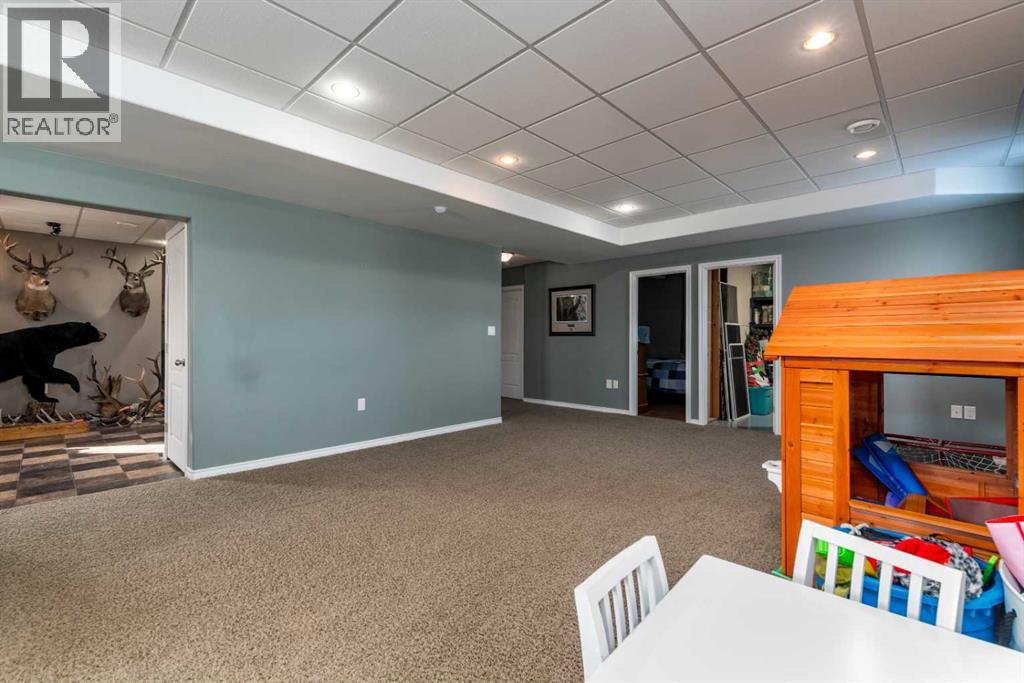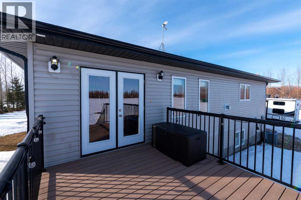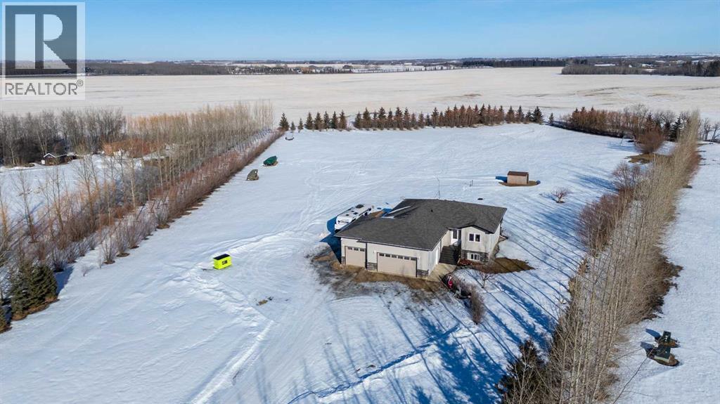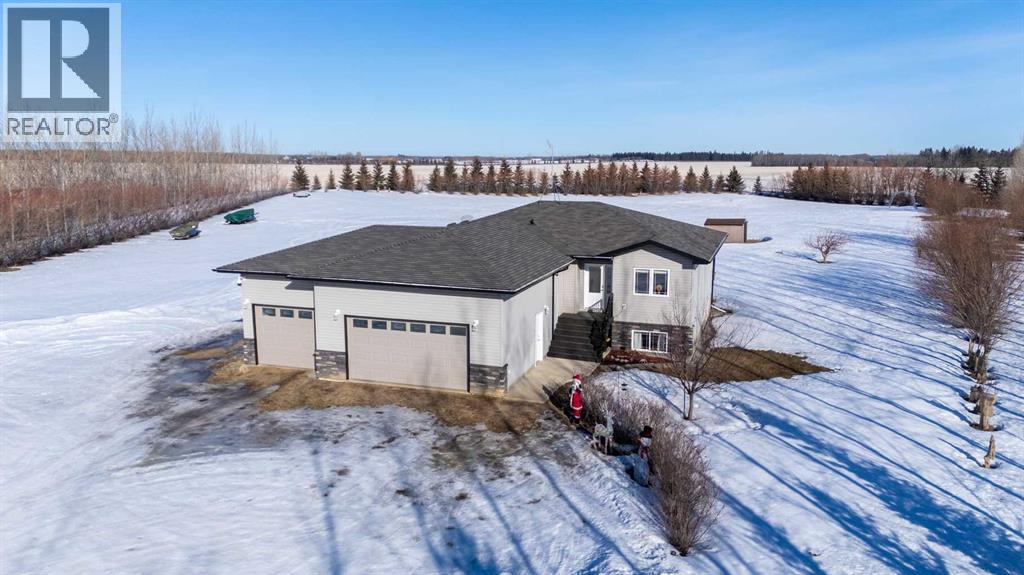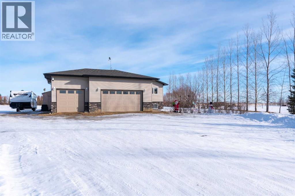 Located in Border Creek Estates, just 2.5 km north of Lloydminster, this beautiful acreage offers the perfect combination of privacy, space, and convenience. The home features a large front entry with a bonus room just off to the side, leading into an open-concept kitchen, dining, and living area complete with a built-in fireplace. From the dining area, step out onto the 12' x 12' flex deck overlooking the private, tree-lined backyard.The main floor includes a spacious laundry room with plumbing for a potential soaker sink, double closets, and direct access to the heated triple-car garage. Two good-sized bedrooms, a four-piece main bath, and a large primary suite with a four-piece ensuite and walk-in closet complete the main level.The fully finished basement features an ICF foundation, 9' ceilings, and in-floor heat. It includes two large bedrooms, a three-piece bath, a rumpus room, and a games area—ideal for family living or entertaining. The utility room houses a reverse osmosis system, water softener, central vacuum, and sump pump.Enjoy central air conditioning, a good well with ample water supply, large garden and a peaceful 5.1-acre setting with over 300 trees, backing onto a farmer’s field for added privacy. (id:44393)