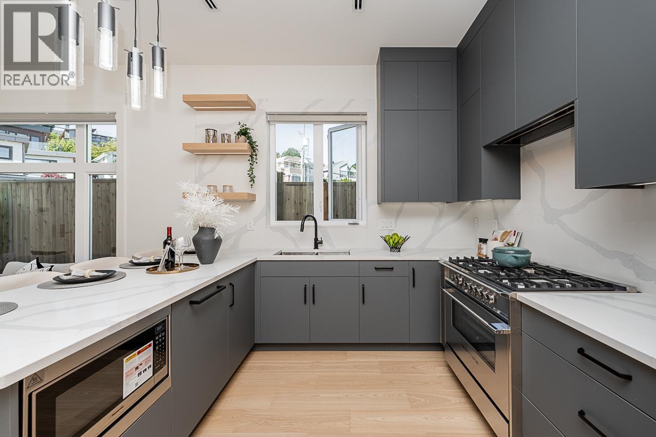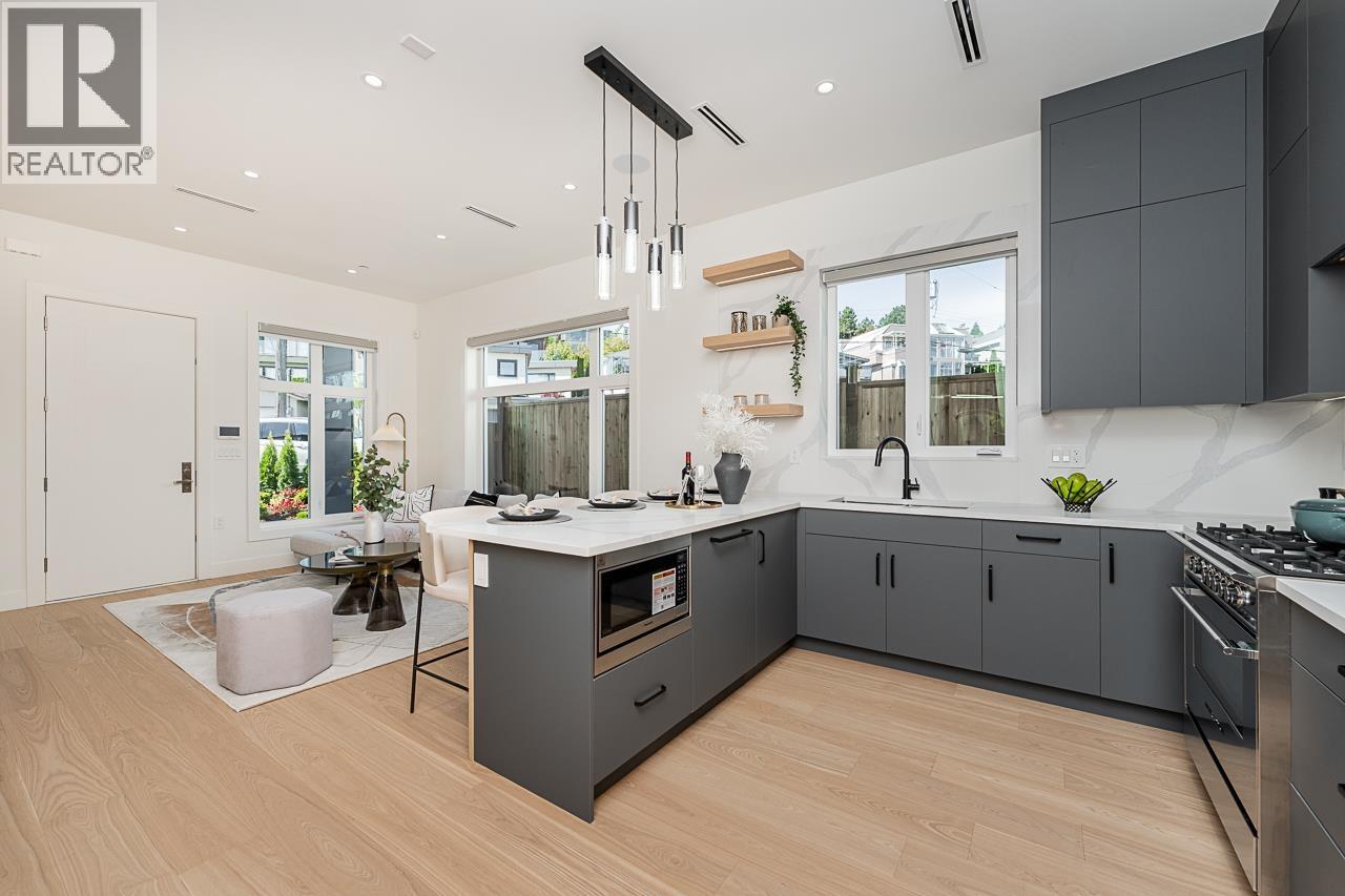 An elegant side by side duplex built by an experienced builder who did not waste any space and came with an unique design. This duplex offers an open lay out with a large Living room, a gourmet kitchen, a one bedroom legal suite with a separate entrance as a mortgage helper which is rare to find in duplexes. The second floor offers 3 large bedrooms and two full bath rooms, the master bedroom and balcony has a million dollar view. Why own a condo where you pay a hefty strata fee and do not own any land. Open house Oct.4th.Sun. 2-4 (id:44393)