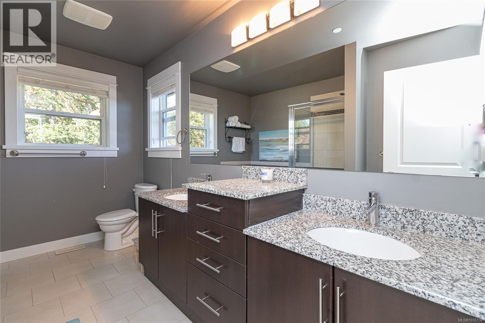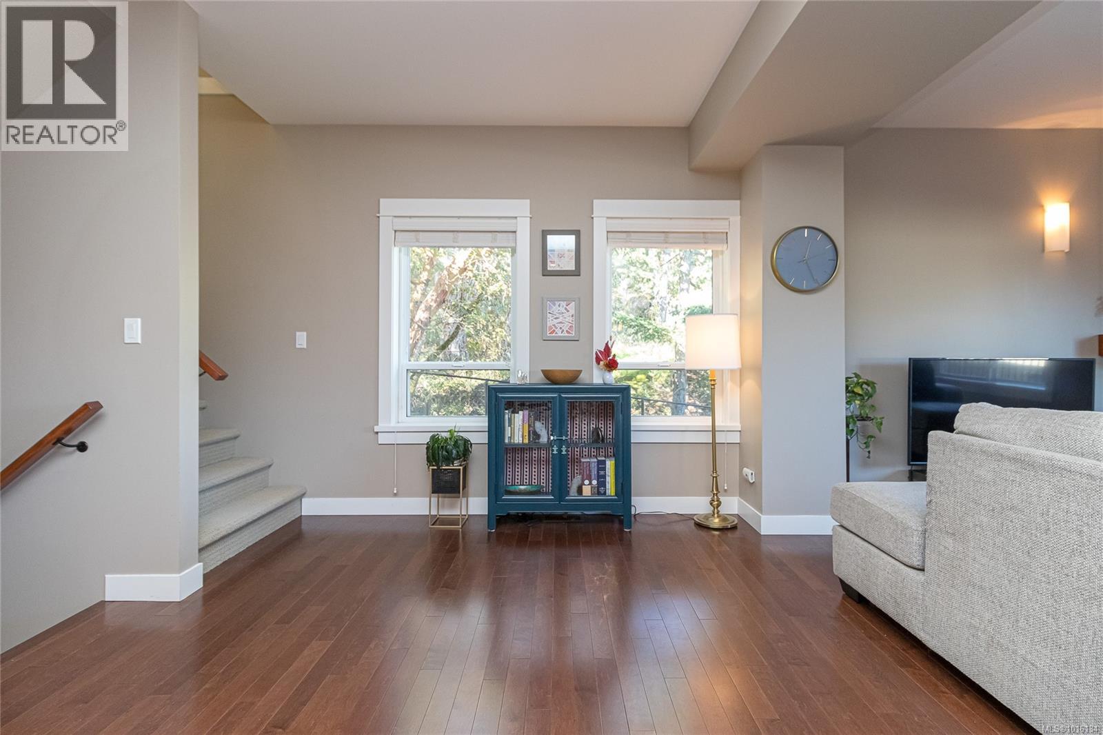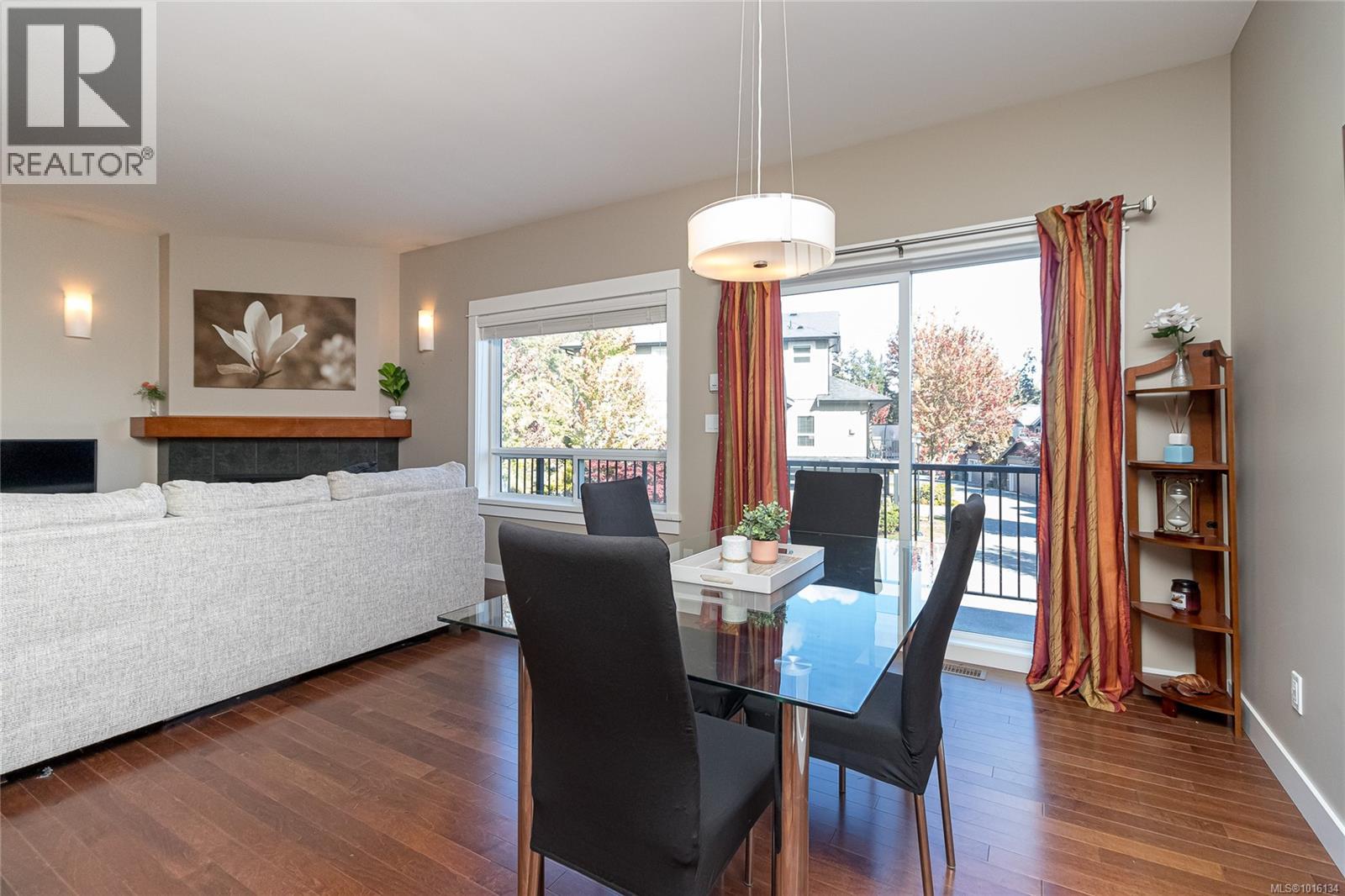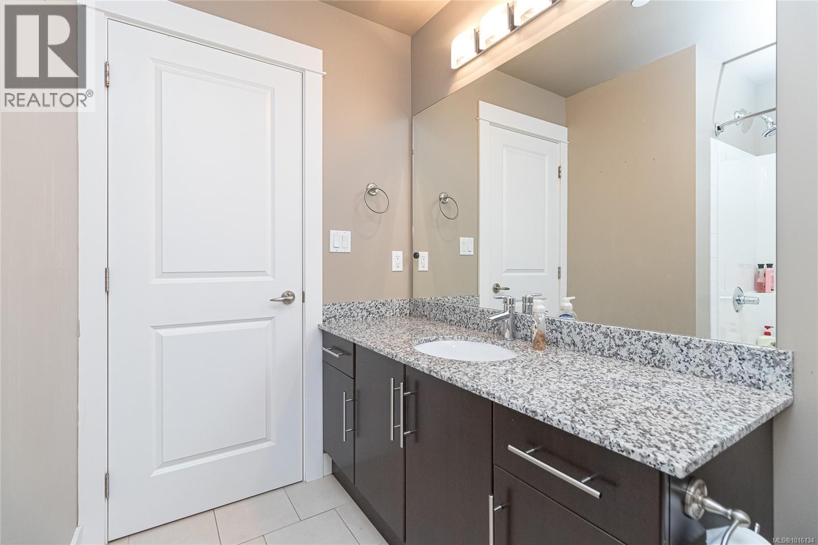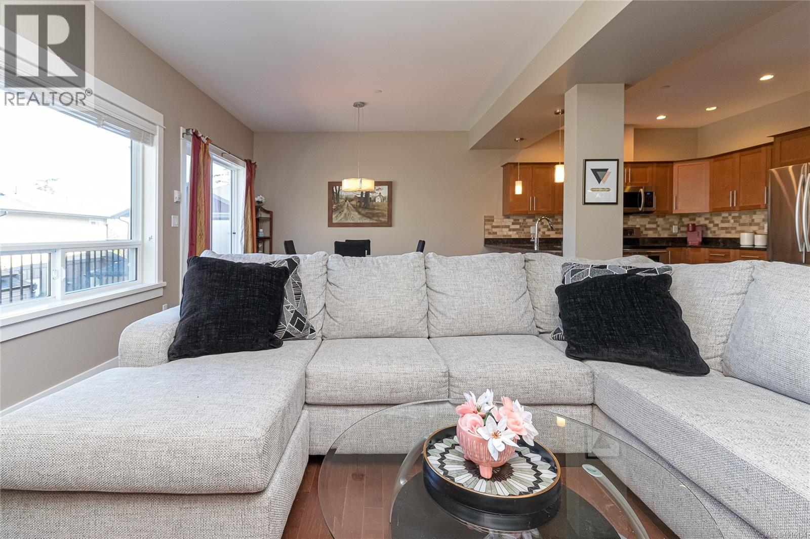 $519.28 MonthlyOPEN Sat. 11th 11:00 - 1:00 PM...A luxurious end unit Townhome located near the park, Galloping Goose Trail and Thetis Lake and is just 12 min. to Downtown. This home has 2266 sf on 3 levels; and is like a half duplex in design with only a neighbor to its one side; a double garage with additional parking spots on its driveway; and views overlooking beautiful treed area and privacy. The 2nd level includes a gourmet kitchen with eating peninsula, granite counters, s/s appliances and walk-in pantry; an open dining and living room with patio door access to a huge balcony area, and a very large family room with a walk out patio and private garden setting. An open staircase leads to 3 good-sized bedrooms on the upper level; including a spacious Primary Bedroom with 10' 6'' ceilings and deluxe 5 pce ensuite bath, a laundry room and a 2nd full bath. Outstanding features include wood floors, good storage area, geothermal heating / AC and extra parking for flexibility. (id:44393)