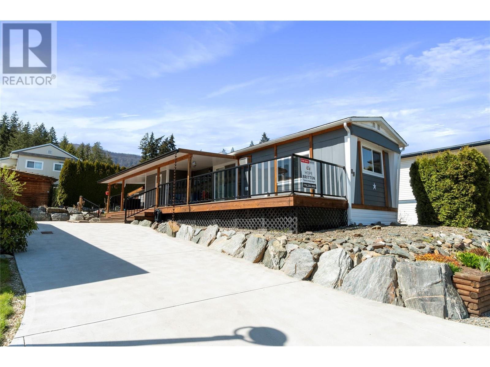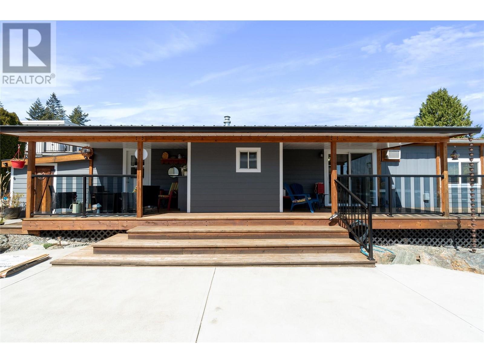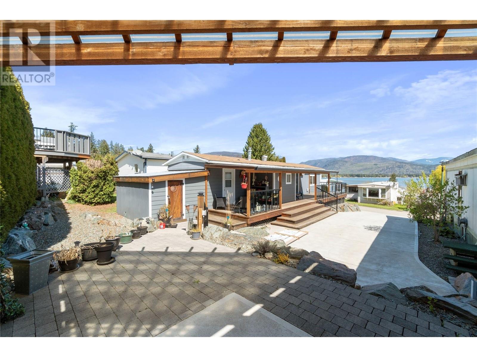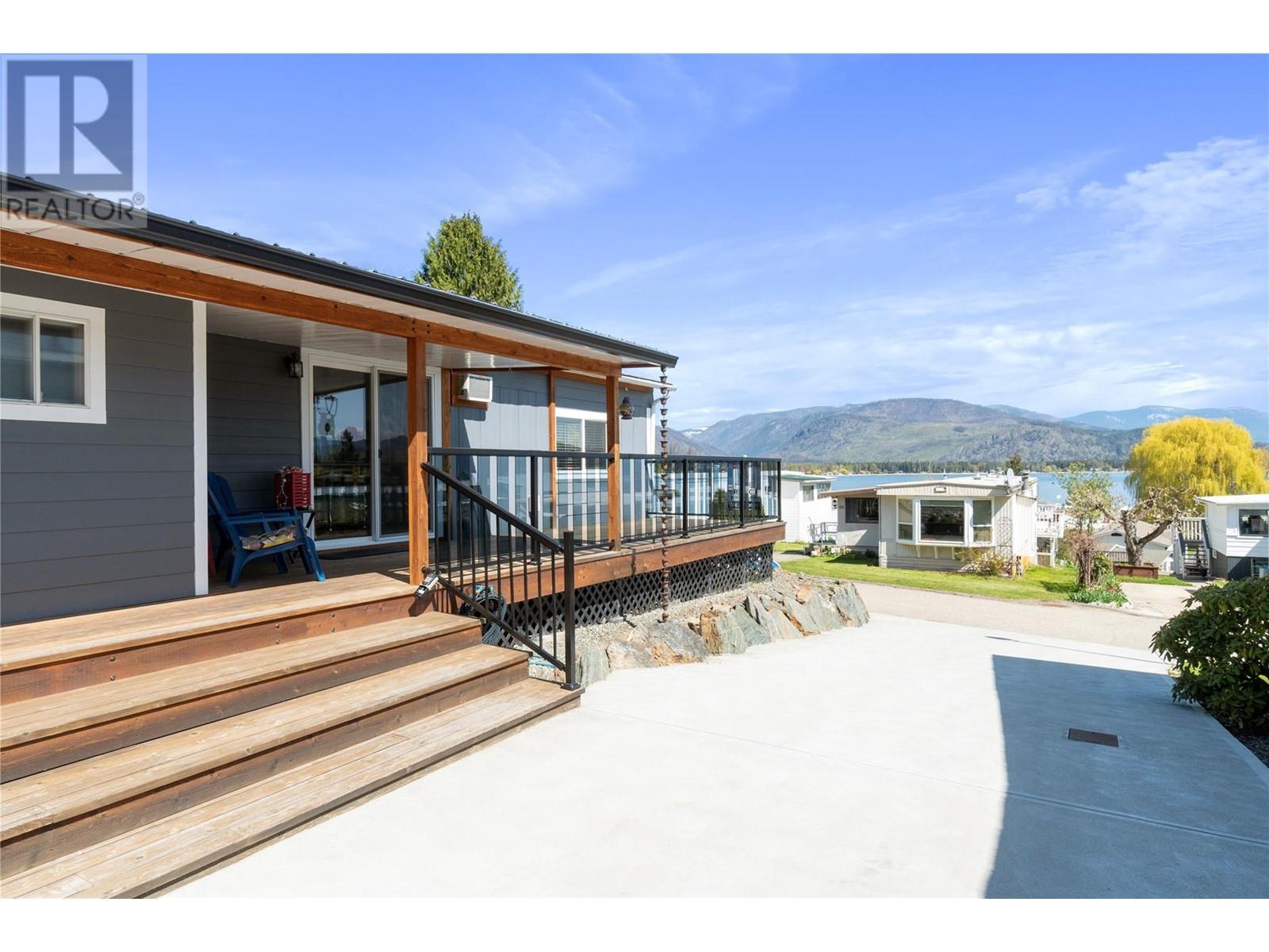 $602 MonthlyWelcome to Sorrento Place on the Lake! 55+. Amazing Lake and Mountain Views located on the shores of the Shuswap Lake. Fully renovated Glendale Manufactured Home. Charm and Grandeur! Walk onto your full-length Custom-Built Deck equipped for your gas BBQ. Come into your Fully Renovated Kitchen with Beautiful Granite Countertops. Bar Stool Seating at your Island with Extra Storage. Comfy Living Room with a Lake View! Exquisite flooring and a Spectacular designed Storage Closet Area with Stackable Washer/Dryer. Meander down the hall to your custom Washroom featuring beautiful hardware and a seated Shower. Unique Walk-in Closet! Spacious Primary Bedroom. Handy dandy Shop located in back. Stylish Patio with lots of room for a raised garden bed, or a beautiful table and chairs. Rock Landscaping and a Brand-New Custom Driveway adorning your new place! Amenities Boat Launch, Private Beach Area, Clubhouse, Pool Table, Horseshoe, & Fire Pit Area. This is for those who demand excellence! (id:44393)