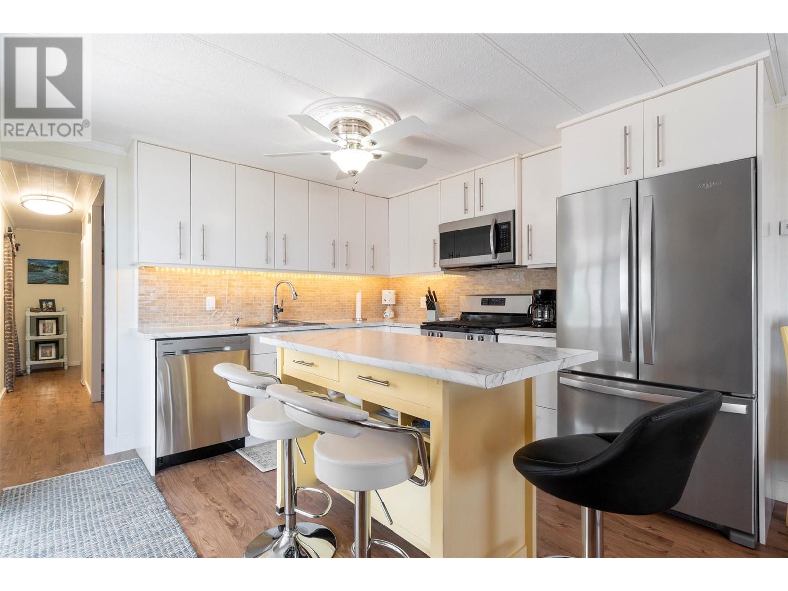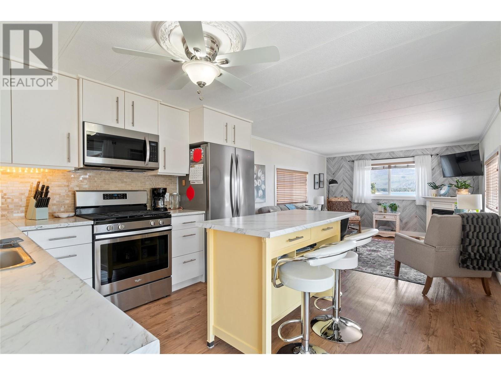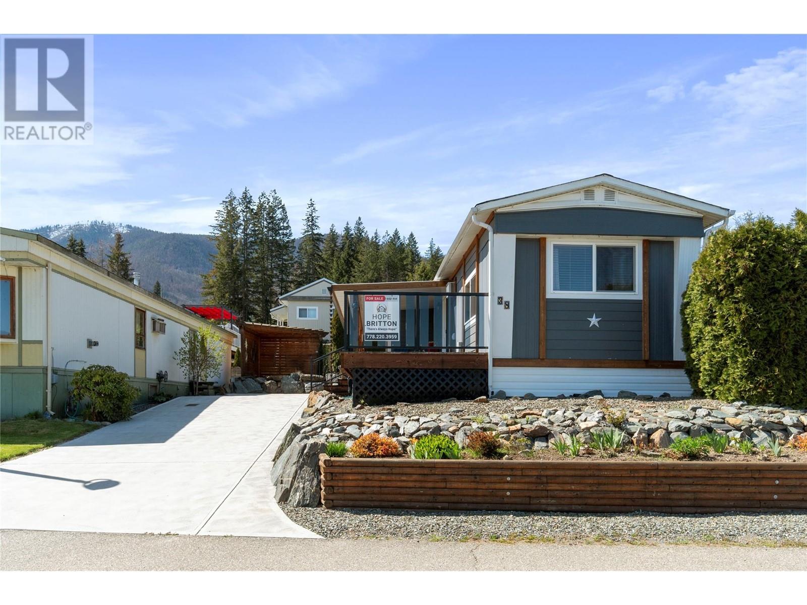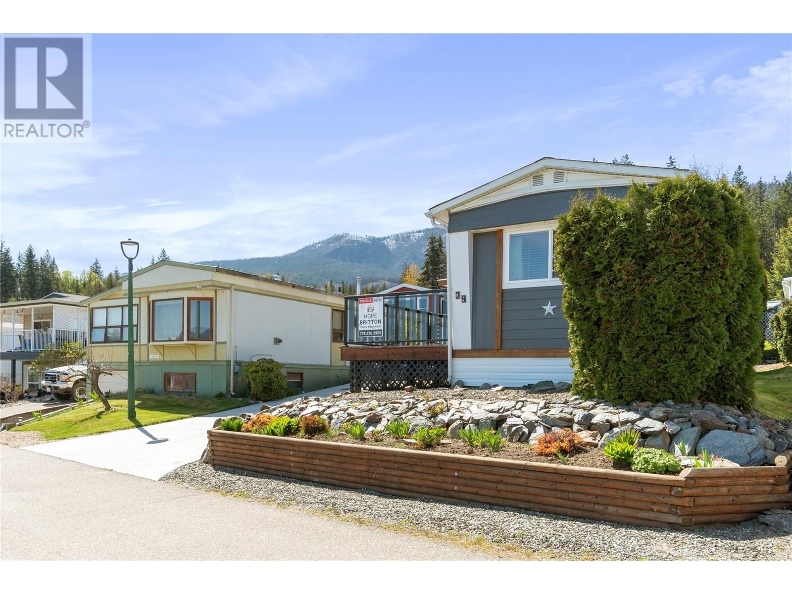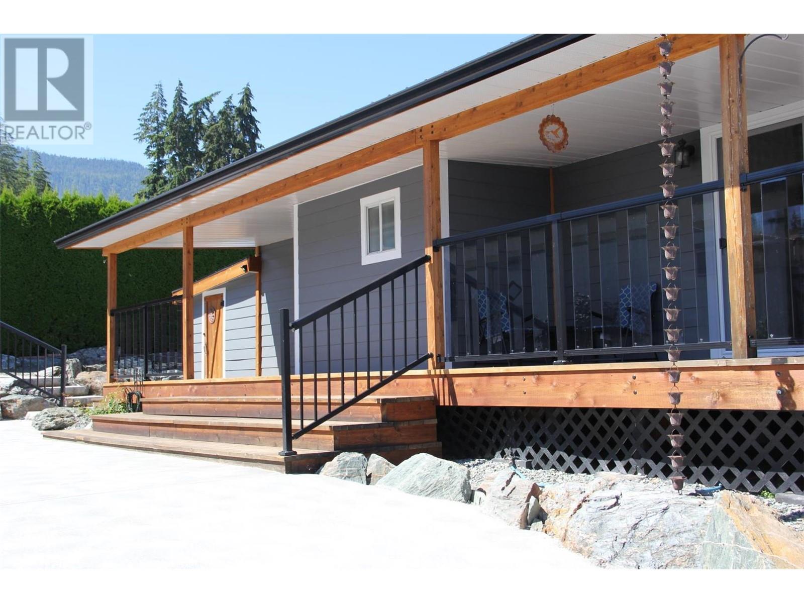 $602 MonthlyWelcome to Sorrento Place on the Lake! 55+. Amazing Lake and Mountain Views located on the shores of the Shuswap Lake. Fully renovated Glendale Manufactured Home. Charm and Grandeur! Walk onto your full-length Custom-Built Deck equipped for your gas BBQ. Come into your Fully Renovated Kitchen with Beautiful Granite Countertops. Bar Stool Seating at your Island with Extra Storage. Comfy Living Room with a Lake View! Exquisite flooring and a Spectacular designed Storage Closet Area with Stackable Washer/Dryer. Meander down the hall to your custom Washroom featuring beautiful hardware and a seated Shower. Unique Walk-in Closet! Spacious Primary Bedroom. Handy dandy Shop located in back. Stylish Patio with lots of room for a raised garden bed, or a beautiful table and chairs. Rock Landscaping and a Brand-New Custom Driveway adorning your new place! Amenities Boat Launch, Private Beach Area, Clubhouse, Pool Table, Horseshoe, & Fire Pit Area. This is for those who demand excellence! (id:44393)