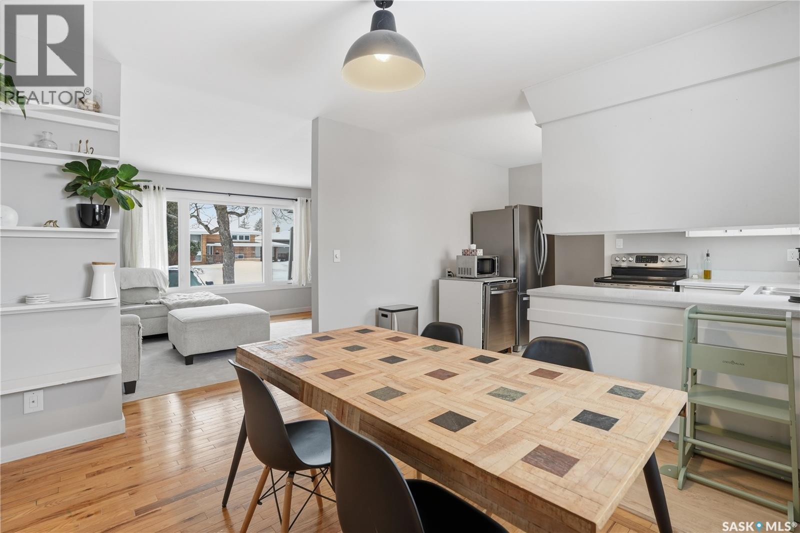 Location and quality are the two things you can’t change about a property. This well-maintained 3 + 1 bedroom bungalow in the heart of River Heights offers both. Enjoy the peace of mind that comes with a home where the essential updates are already complete. With fresh paint throughout and newly updated kitchen flooring, this home successfully merges its original character with modern, functional finishes. The main floor is anchored by original hardwood and large picture windows that provide a clear view of the front deck and gorgeous sunsets. The kitchen is designed for efficiency, featuring stainless steel appliances and a layout that connects directly to a generous dining area which is ideal for both daily life and hosting. The main full 4 piece bathroom is updated with modern features. Generous sized primary bedroom with convenient 2 piece bathroom. The lower level adds extra living space, including a massive recreation room and a newly renovated 3 piece bathroom with modern black fixtures and 4th bedroom (window may not meet egress standards) For the practical homeowner, the dedicated laundry and utility area includes a substantial workspace for tools and projects. Just imagine the lifestyle advantage of a backyard that backs directly onto Caen Park. You have the privacy of no rear neighbors and immediate access to evening strolls. The yard is fully fenced, featuring multi-level garden beds and the rare benefit of double-alley access. Complete with high-efficiency furnace, tankless water heater and newer PVC windows, this is a solid investment in one of Regina’s most desirable south-end neighborhoods. Walking distance to Hill Avenue Shopping Centre, Elementary and High Schools, Wascana Park plus quick access to downtown Regina, YQR airport and the Regina ByPass. (id:44393)