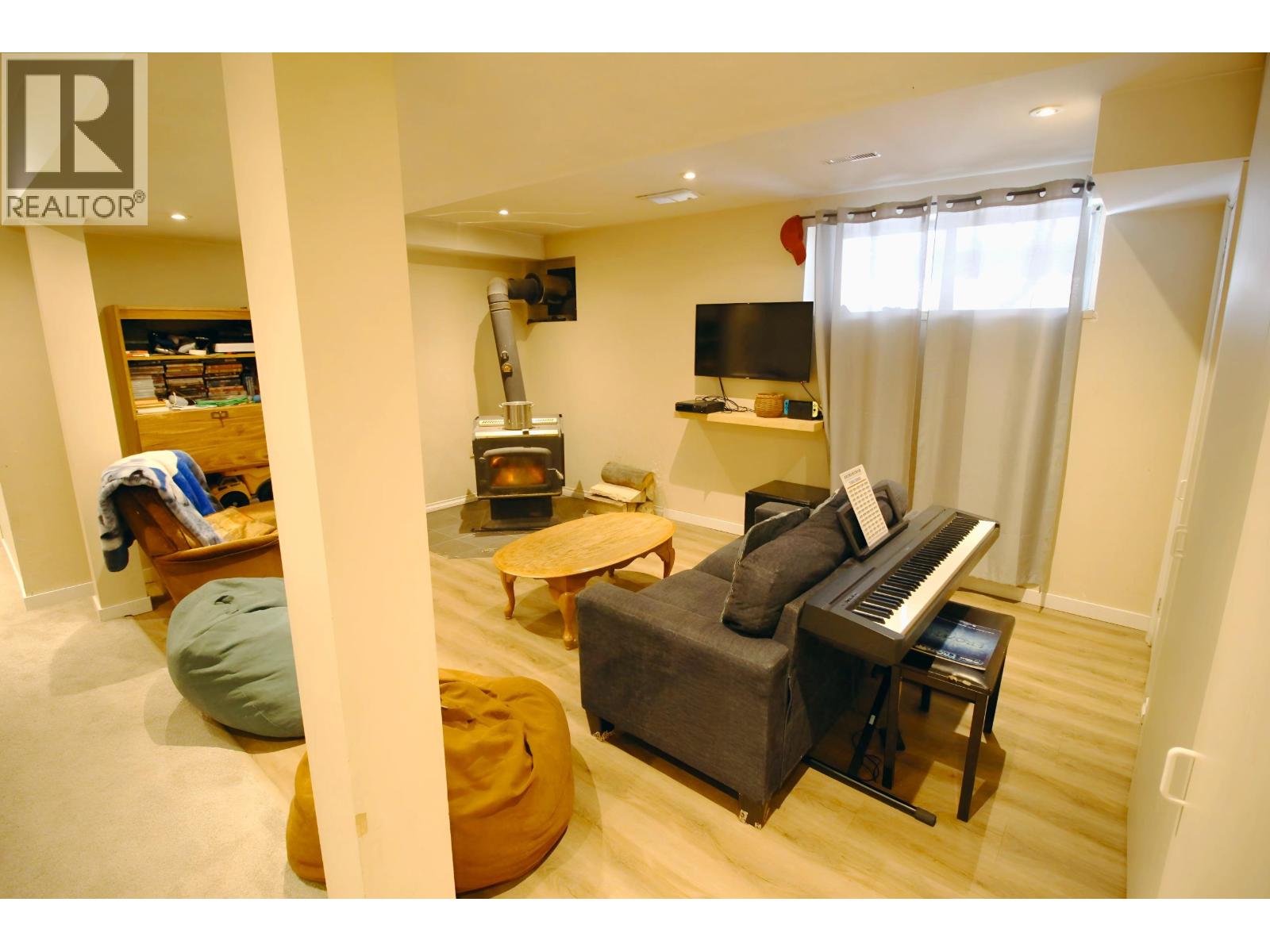 Great Starter! 4 bedroom / 2 bath family home with nice open layout throughout the main living kitchen/dining/living room area. Garden doors from the dining area to an updated treated sundeck overlook the fenced backyard with raised garden beds & storage shed. Convenient wrap-around covered veranda from the back sundeck towards the front of the house. Additional storage shed beside house. 3 bdrms & updated 4 pc bath on main. The finished basement features a very spacious recroom & cozy family room with wood stove. The basement also offers a 4th bdrm, office, 3 pc bathroom, & laundry/utility room. High-eff gas furnace, hot water tank: 2024, value-adding updates over the years throughout. Appliances included. (id:44393)