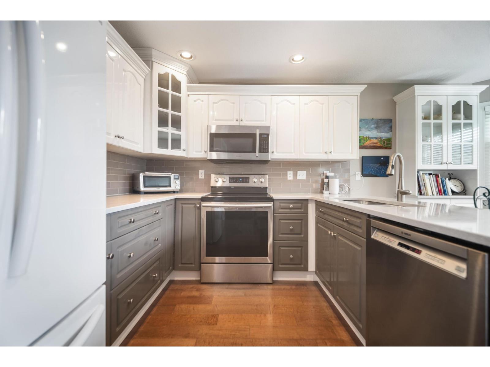 $710 MonthlyOcean Park Grove. Stylish modern decor, fully renovated & move in ready, 2,015 sq. ft. traditional main floor layout, upper level 3 bedrooms. Amazing sunny, private southern exposed patio overlooks maturely landscaped rear yard, including rockery & gardens. Renovation features vinyl windows, French patio doors with screens, engineered hardwood flooring throughout main level, renovated kitchen & baths, quartz & Corian counter tops throughout. Well run strata, 58 homes, updated asphalt roof, outdoor paint, crawl space. 55-year age restriction, 2 cats, no dogs. Clubhouse social events. Steps to Ocean Park Shopping Center, transit, Crescent Park, 1001 steps with beach access. Minutes to Cresent Beach. Please call for your personal viewing, be impressed. Open House Sat. Oct. 4, 1 to 2:30 pm (id:44393)