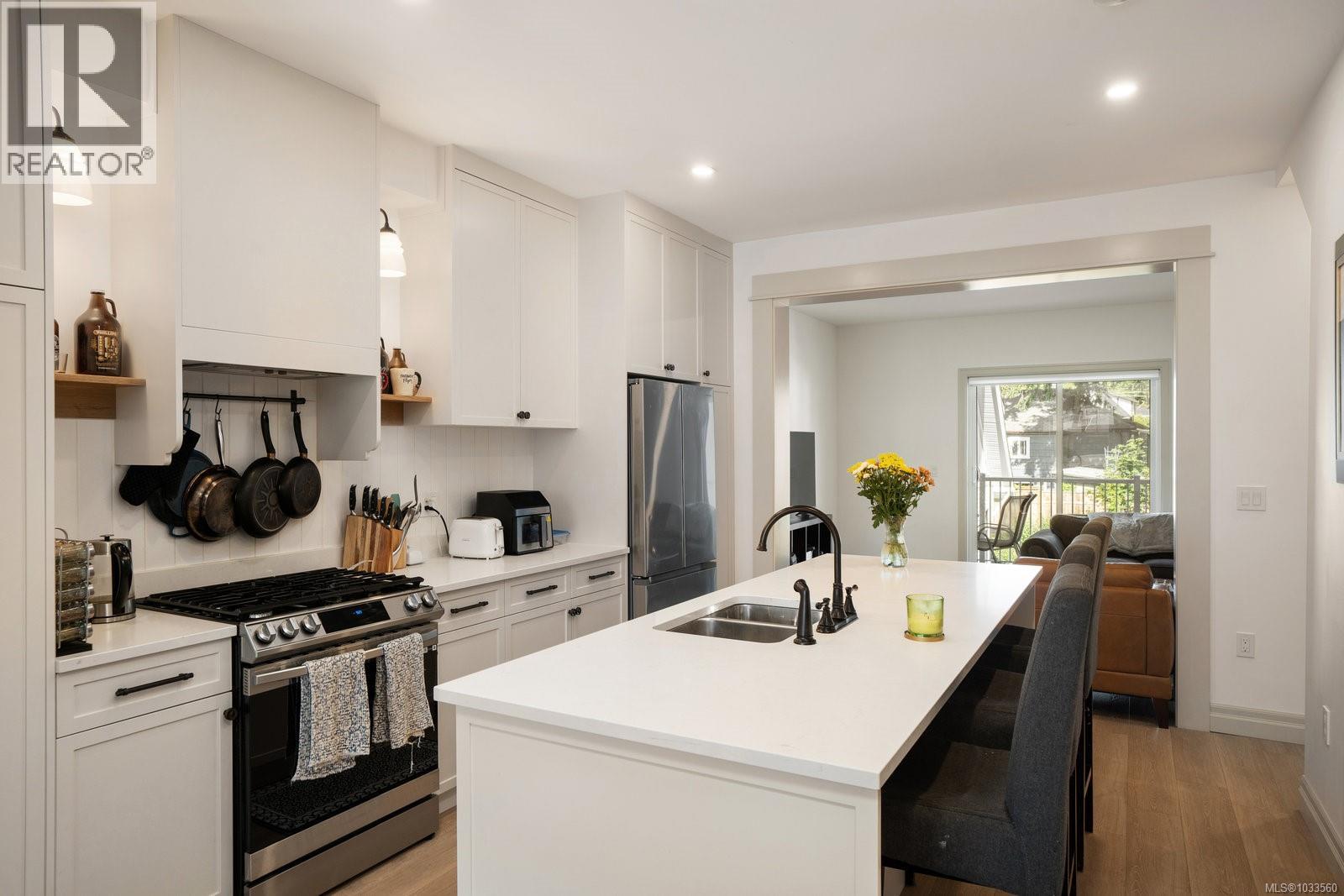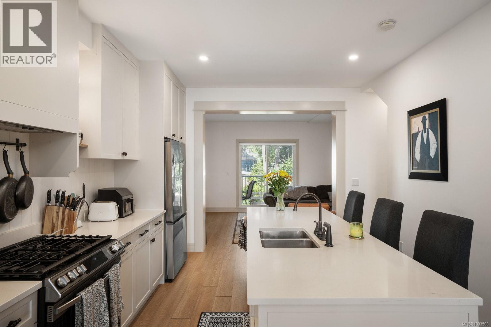 $413.56 MonthlyWashington by Formwell is a traditionally inspired 2023 built, 34 unit complex with white picket fences, landscaped paths, and charming front yards. Features of this spacious 4 bed/4 bath townhome include clever built ins, a gas wall furnace + HRV, gas range, quartz countertops, integrated hood fan, beadboard walls, wool broadloom, tankless hot water system, EV capable, and double wall assemblies between the units. The main level layout offers 9’ ceilings with large windows, an island kitchen with an abundance of cabinets, a powder room, and intimate separate dining and living rooms. Upstairs has 3 bedrooms with a luxurious ensuite and walk-in closet in primary bedroom, plus another 4-piece bath. Downstairs offers a 4th bedroom room, laundry, and a full bathroom to accommodate different family dynamics. Burnside Gorge is a family friendly neighbourhood with a vibrant and diverse food scene. Nearby are parks, the Galloping Goose Trail and the Selkirk Waterfront. Vacant possession in September. (id:44393)