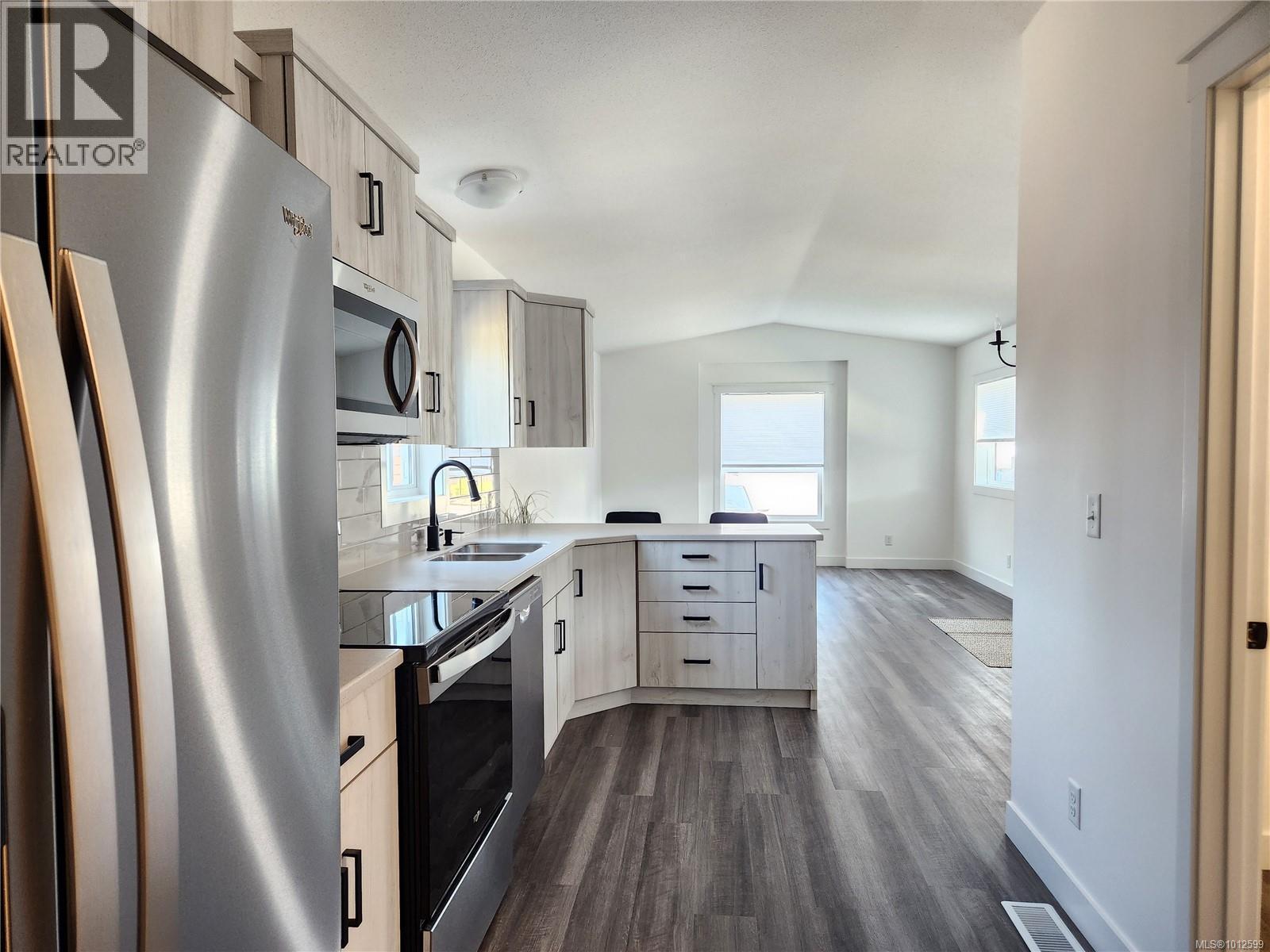 $400 MonthlyStep into this beautifully finished 2-bedroom, 2-bathroom home featuring stylish vinyl plank flooring, vaulted ceilings, and an open-concept layout perfect for modern living. The light, contemporary kitchen boasts sleek Corian countertops, Whirlpool stainless steel appliances, an above-range microwave, and plenty of cabinet space. The spacious primary bedroom offers a walk-in closet and a private ensuite with a walk-in shower, while the main bathroom includes a convenient tub/shower combo. Outside, enjoy the expansive fenced yard, an over-height carport, and a poured concrete slab ready for your garden shed. Tucked away in a quiet manufactured/mobile home park, yet just minutes from town amenities, this location offers the best of both worlds—country charm with city convenience. Don’t miss your chance to own this move-in-ready gem! (id:44393)