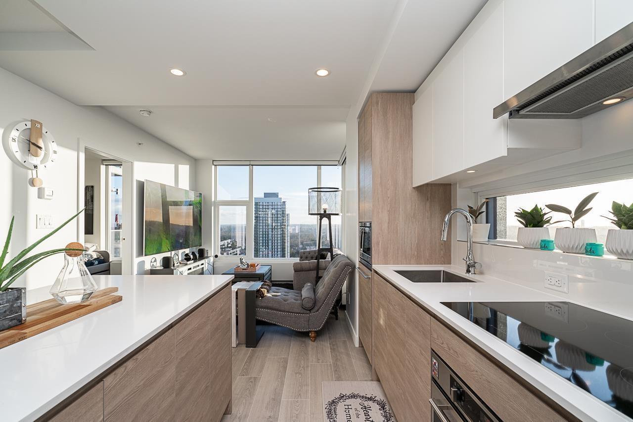 $539 MonthlyElevate Your Lifestyle. Discover this stunning southwest corner unit at the prestigious King George Hub, the crown jewel of Surrey City Centre. Sleek accent walls adorn the foyer and bathrooms, while the master bedroom boasts a striking feature wall. The cozy dining area with square paneling is perfect for entertaining. Enjoy breathtaking city, mountain, and park views from every room, enhanced by automatic blackout blinds. This like-new 2-bedroom, 2-bathroom home features a bright, open-concept interior by BYU, with a Blomberg refrigerator, Fulgor Milano oven, induction cooktop, quartz countertops, laminate flooring, and remote-control bidets. Exclusive amenities include a 40th-floor lounge, fitness center, and yoga studio. Steps from SkyTrain, shops, and entertainment. (id:44393)