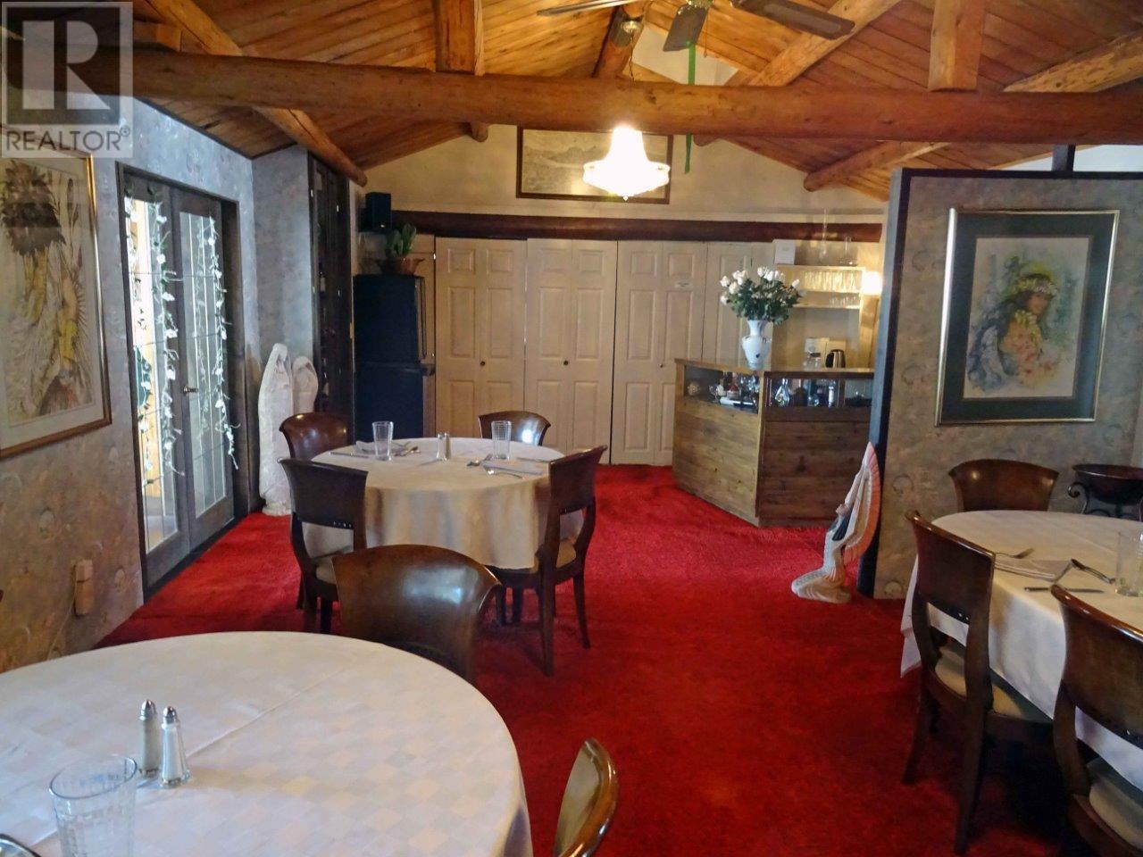 Eagles Nest Resort presents a rare opportunity to acquire a turnkey hospitality business set on nearly 10 acres of lakefront property. With over 1,100 ft of shoreline on Anahim Lake + 800 feet along protected marshland, this commercially zoned property includes 7 guest rooms, 5 private cabins (accommodating 25-30 guests) + a licensed dining facility. Resort has a stable, recession-resistant customer base, drawing both tourists & commercial clientele. Accommodations range from rustic lakeside cabins to comfortable suites with modern amenities. The dining experience is a major draw, with meals served in a professionally equipped kitchen & offered across 2 beautifully styled dining rooms or a lakeside deck with panoramic views. Resort is ideally suited for an owner-operator with hospitality & restaurant experience. Additional features include a meeting room for corporate retreats, owner's suite with spectacular lake views, welcoming foyer with office, check-in desk, & boutique, dock, gardens & much more. (id:44393)