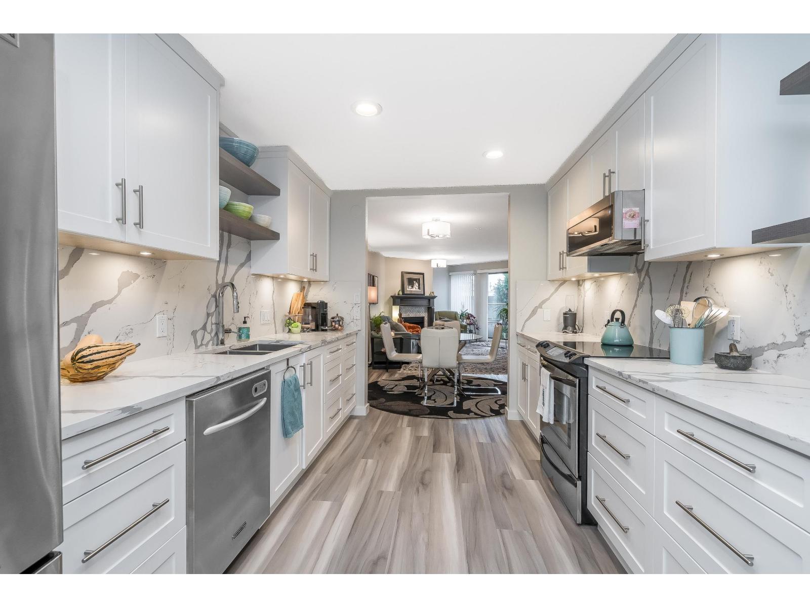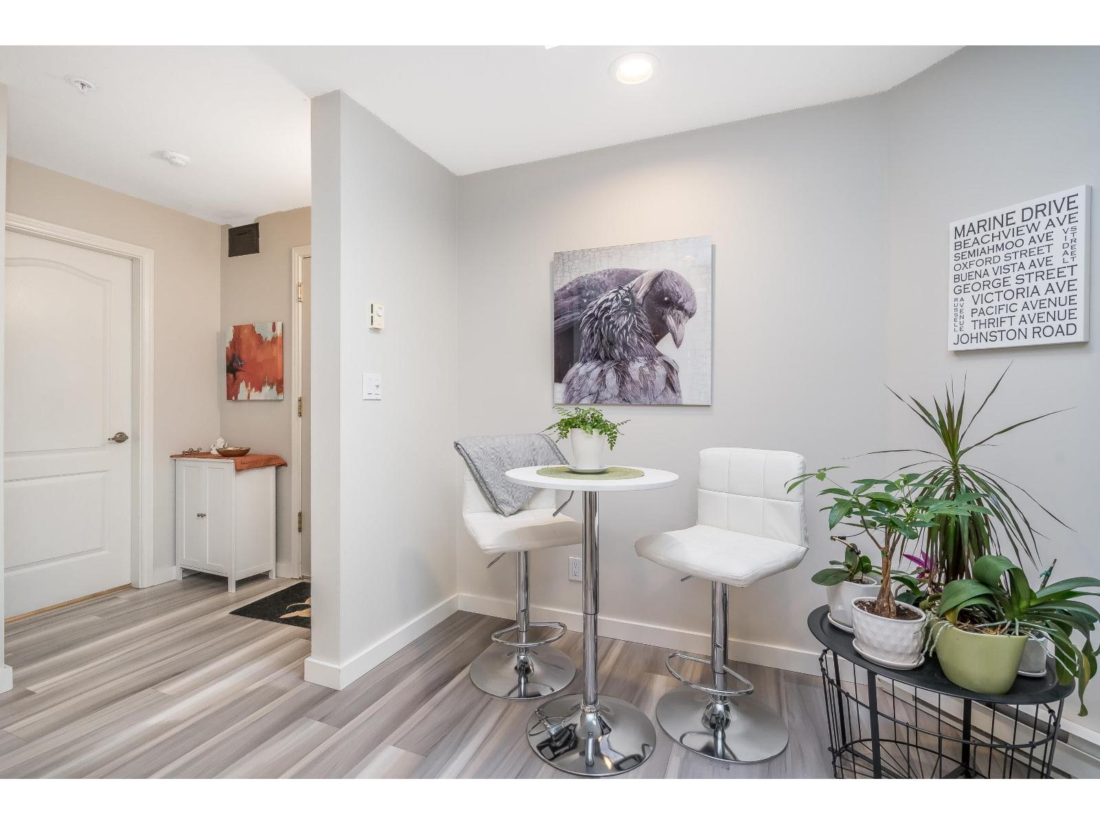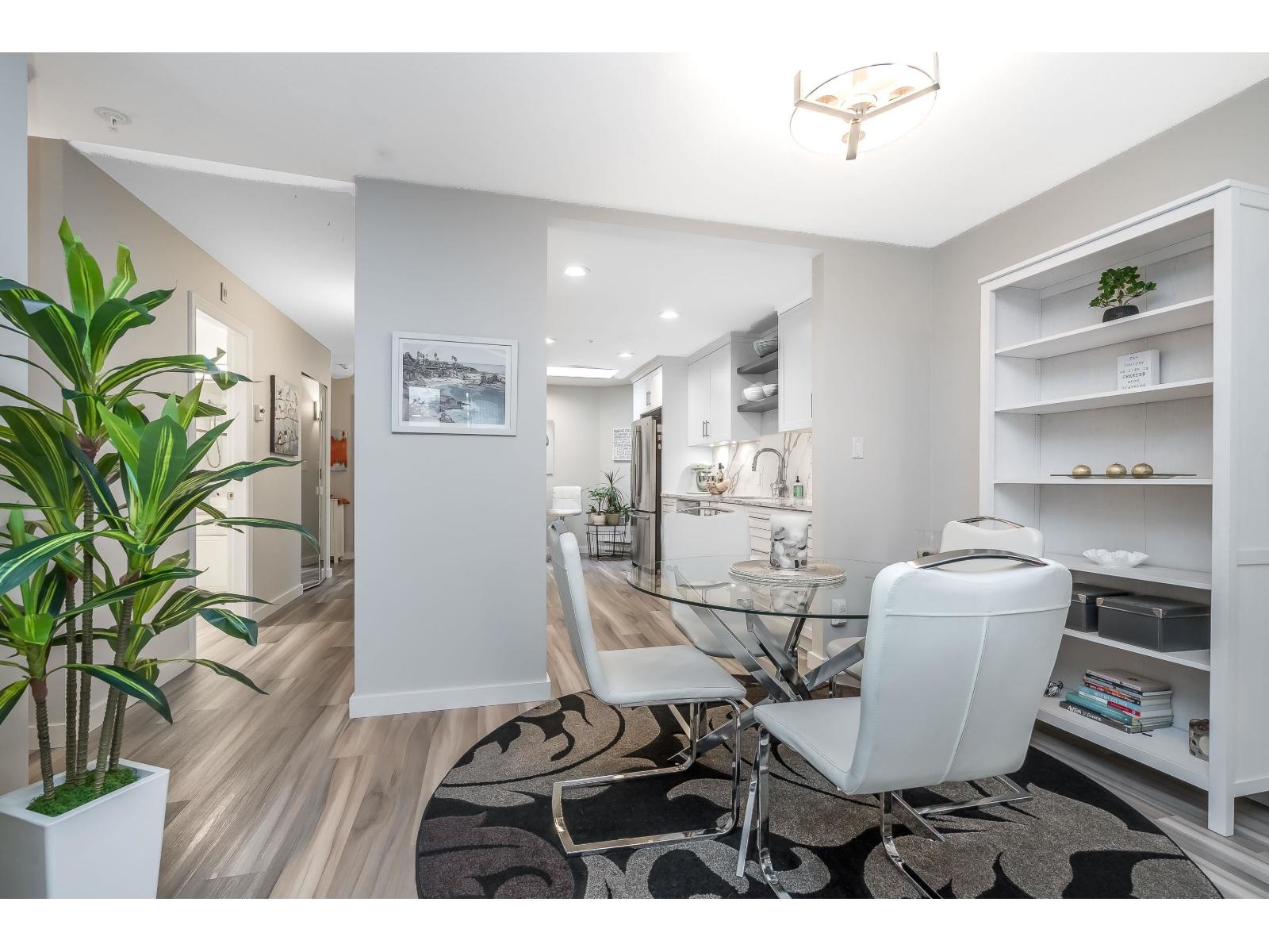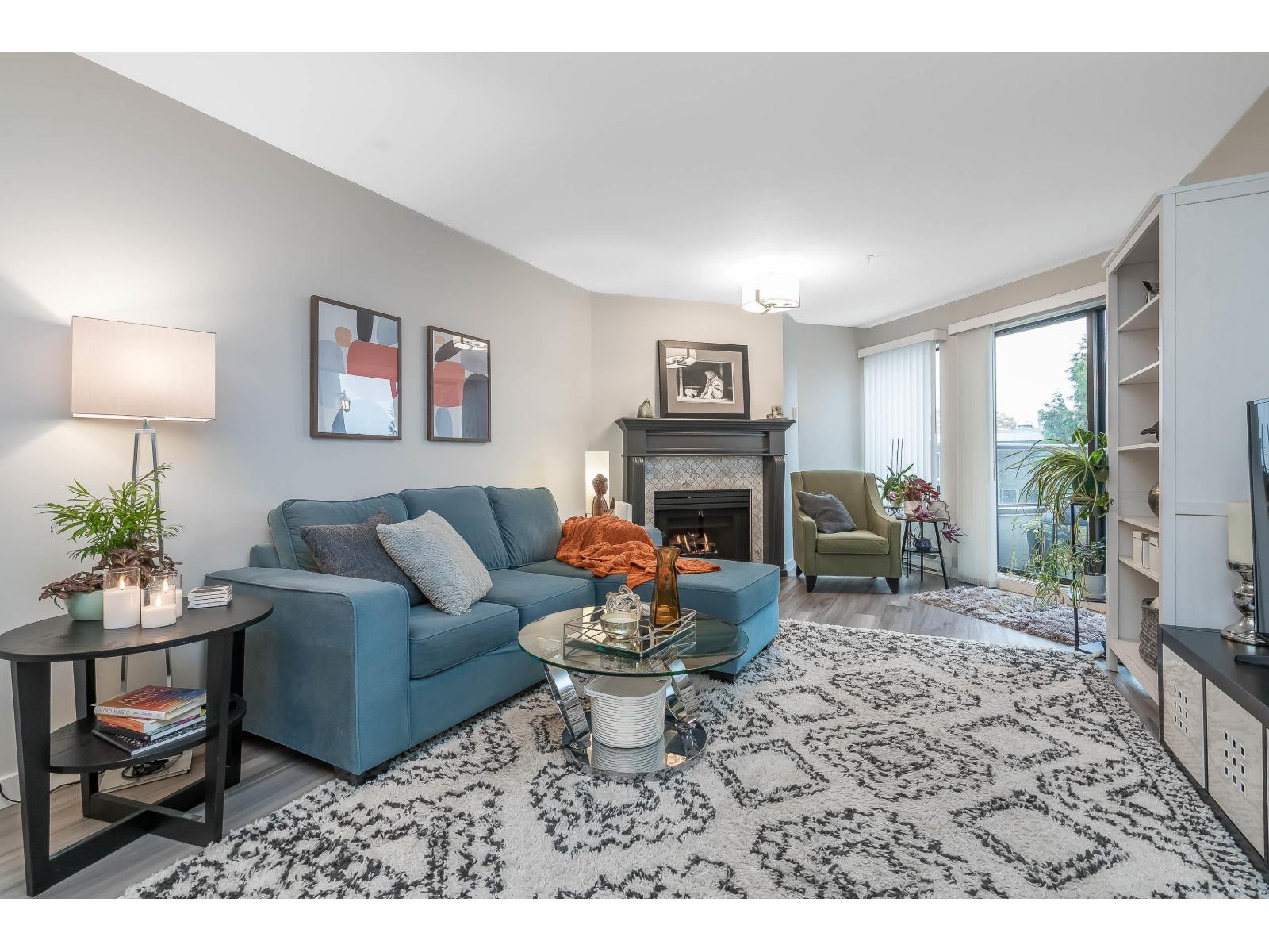 $634.32 MonthlyWelcome to Georgian Square - White Rock's boutique, award-winning building! Top-floor, end unit with 1,300+ sq. ft., 2 large bedrooms, 2 full baths, and a huge wrap-around deck, east facing with partial ocean views. 2020 updates include new kitchen, vinyl flooring, paint, light fixtures, and bathrooms. Bright kitchen with skylight, stainless steel appliances, and eating area. Spacious living/dining areas with a gas fireplace and huge bedrooms. Primary suite has a large walk-in closet and room for a grand piano. Quiet east side location, steps to cafés, shops, and White Rock Beach. 1 cat or dog allowed! Open House November 8th 2pm-4pm (id:44393)