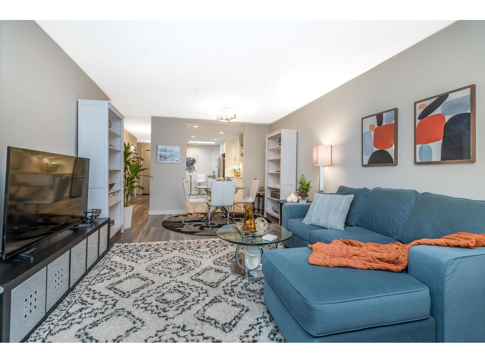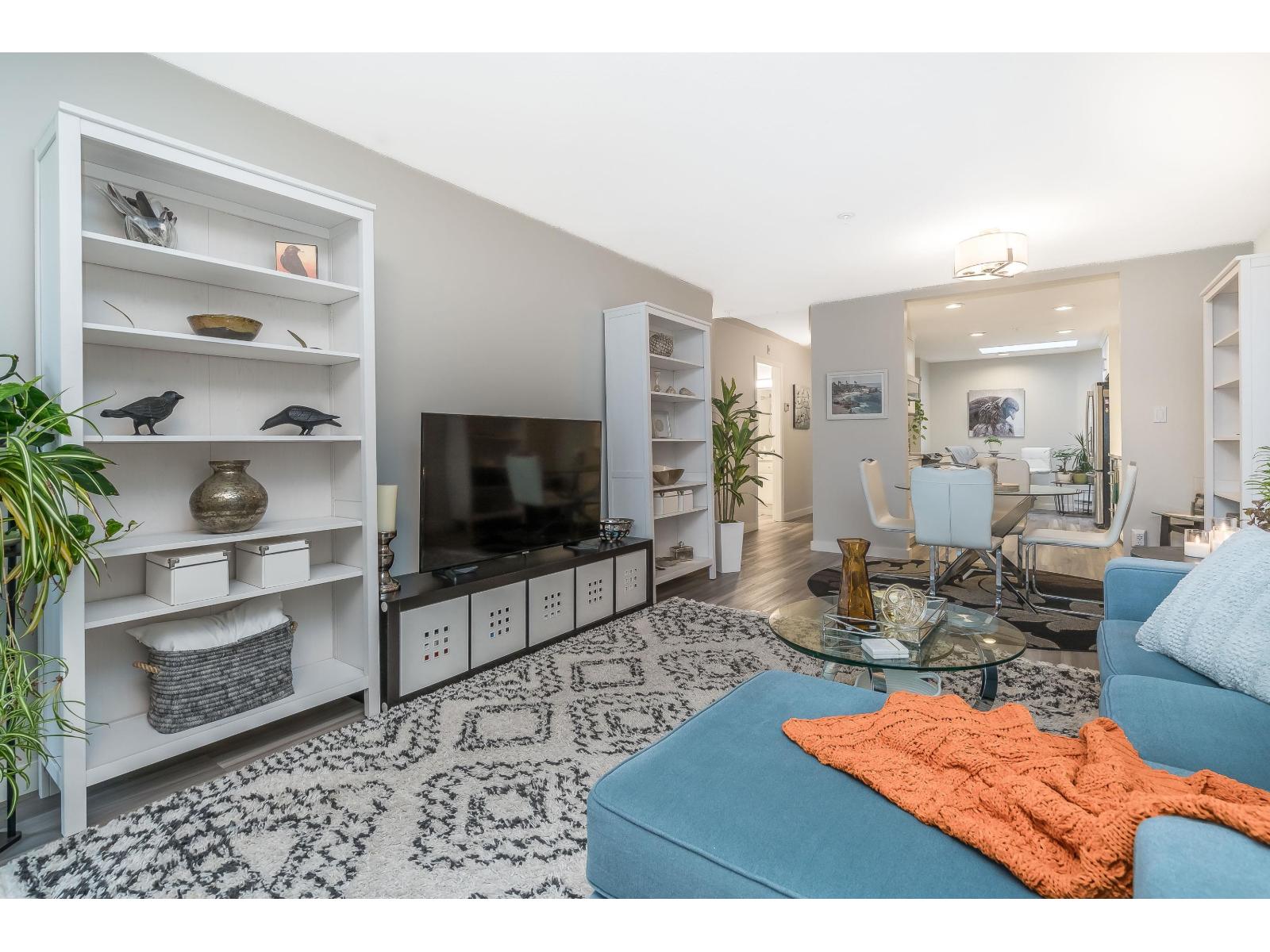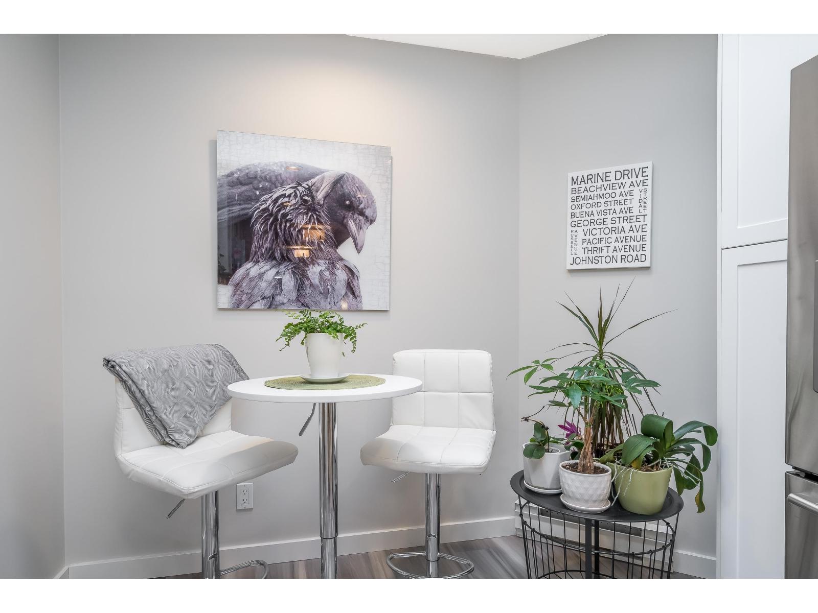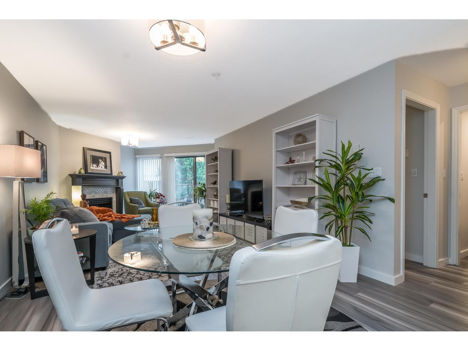 $634.32 MonthlyWelcome to Georgian Square - White Rock's boutique, award-winning building! Top-floor, end unit with 1,300+ sq. ft., 2 large bedrooms, 2 full baths, and a huge wrap-around deck, east facing with partial ocean views. 2020 updates include new kitchen, vinyl flooring, paint, light fixtures, and bathrooms. Bright kitchen with skylight, stainless steel appliances, and eating area. Spacious living/dining areas with a gas fireplace and huge bedrooms. Primary suite has a large walk-in closet and room for a grand piano. Quiet east side location, steps to cafés, shops, and White Rock Beach. 1 cat or dog allowed! Open House November 8th 2pm-4pm (id:44393)