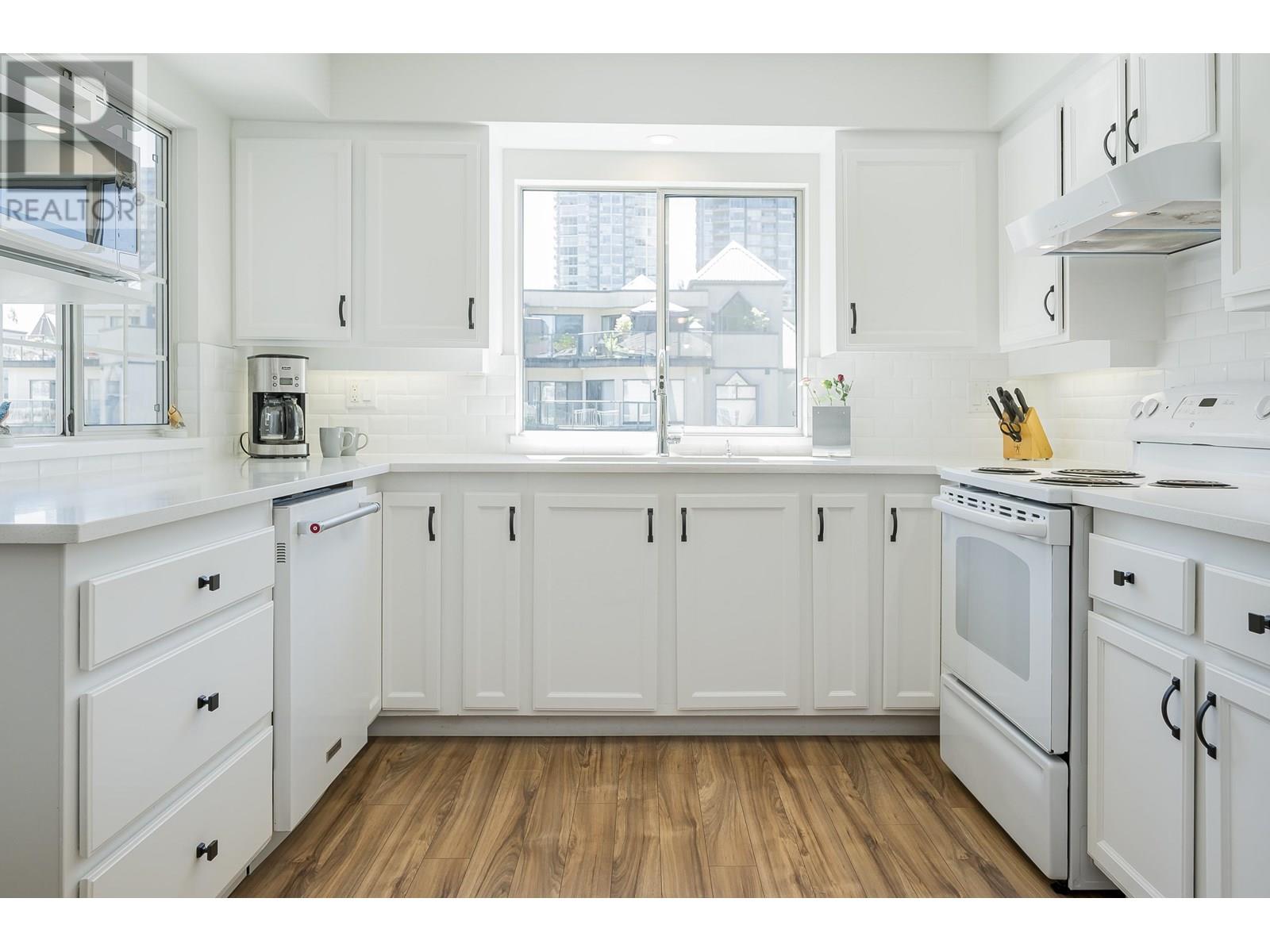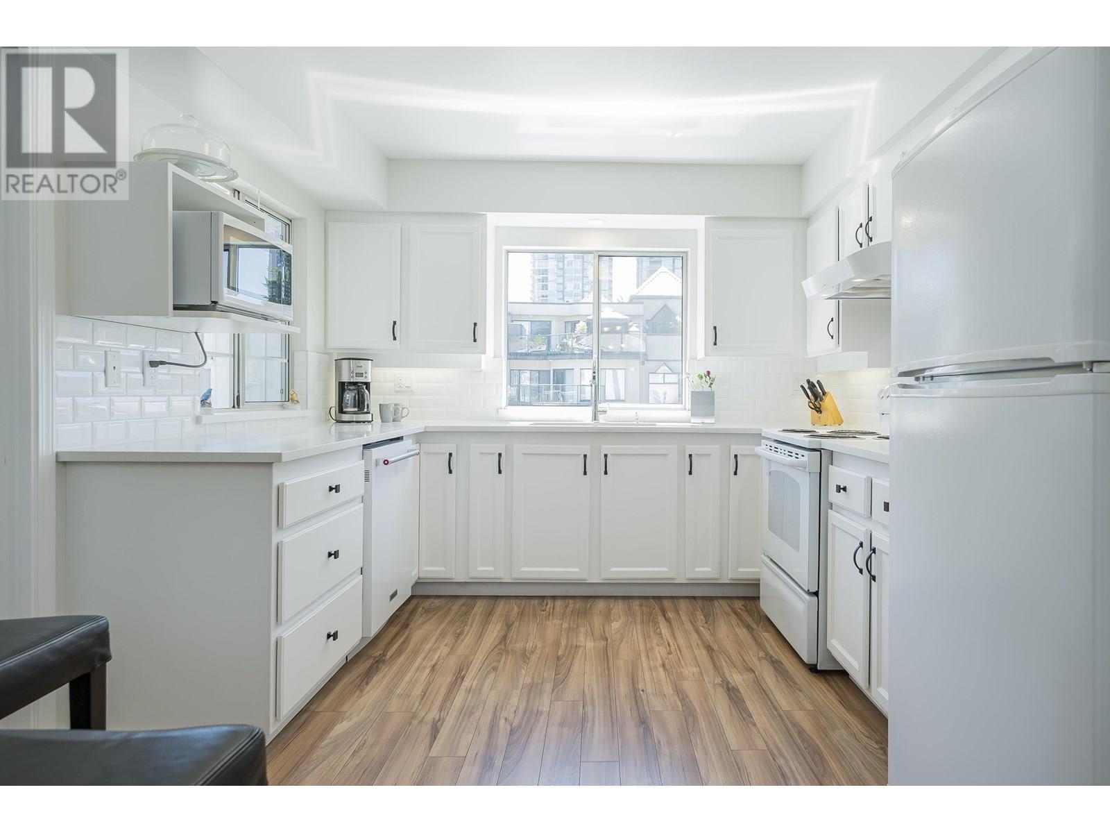 $563.91 MonthlyWell cared for & maintained gated, 55 +Burlington Estates presents this 1185 sq ft, 2 bdrm, 2 bathroom sunny CORNER UNIT with a great floor plan! Updated kitchen has plenty of white cabinetry, with stylish black handles, quartz counters & gleaming white back splash. Both bdrms are well sized with primary large enough for a king bed.Sliders lead to the south facing sunny balcony to enjoy your morning coffee. Convenient full size in suite laundry & tons of storage throughout! Additional updates include flooring, counters, lighting,1 yr old hot water tank, fresh paint & more! Some amenities include community garden, clubhouse, gym ... Location is quiet, yet walking distance to recreation, Lafarge lake, Coquitlam Centre, skytrain~ everything is right outside your door! Locker and 1 parking. (id:44393)