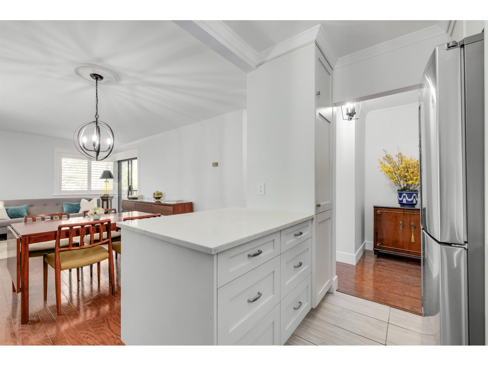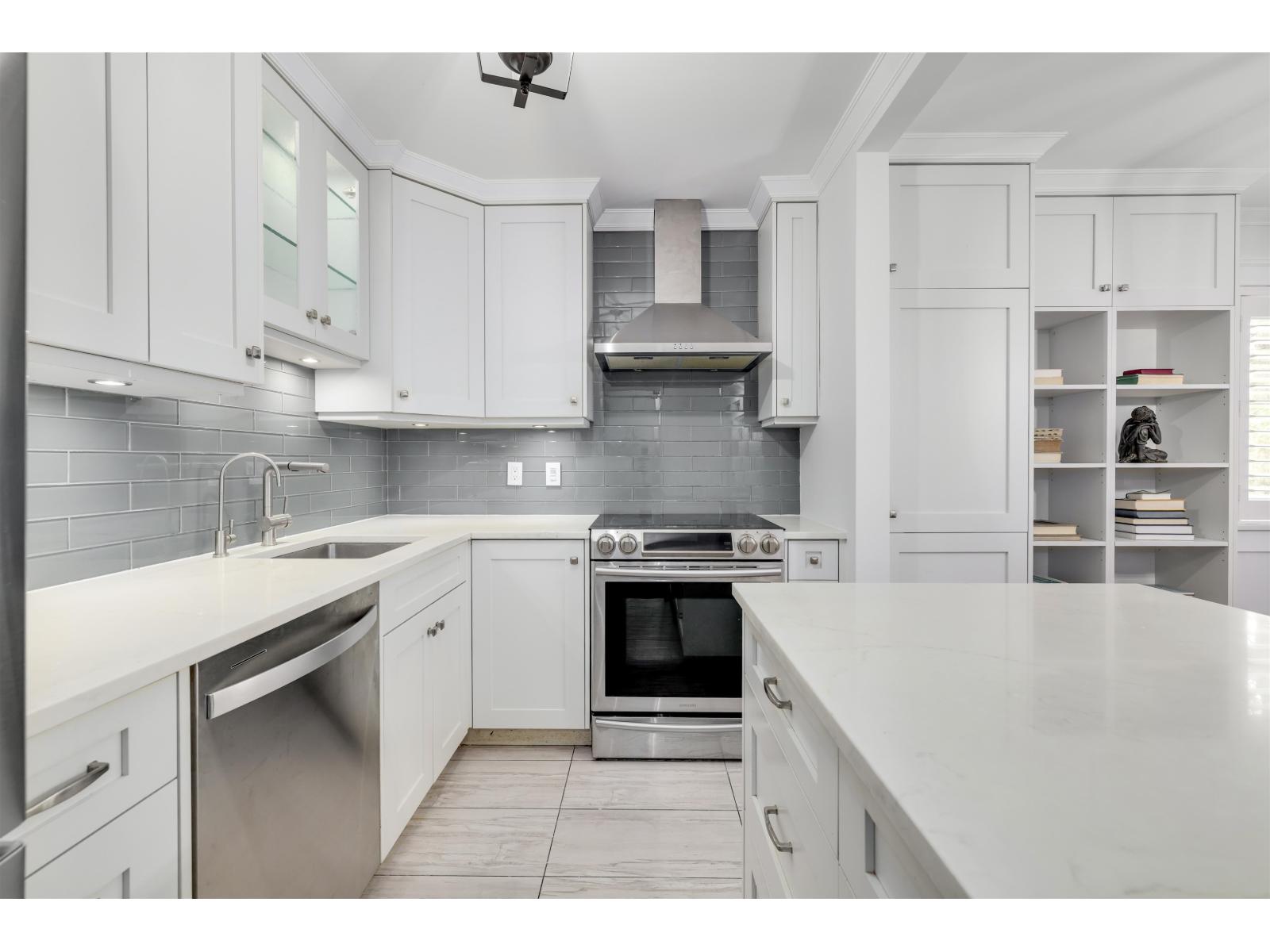 $516.86 MonthlyStylish corner condo that feels more like a home! Featuring real hardwood floors, crown mouldings and timeless shaker cabinetry with under-cabinet lighting. The kitchen shines with stone countertops, a spacious island with storage, stainless steel appliances, and a lit glass display cabinet to showcase your favourites. Enjoy two pantries with slide-outs, built-in shelving, and abundant storage throughout. The bright primary suite boasts a walk-through closet to the ensuite, while the main bathroom is finished with elegant marble tile. California shutters dress the windows, while fresh paint and a cozy fireplace add warmth and charm. 5 minute walk to all that upper Johnston has to offer: Shopping, restaurants, banking, groceries. It's a must see! It's a must see! (id:44393)