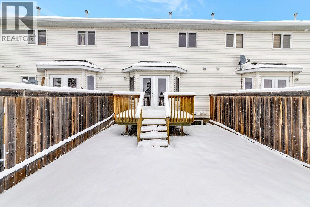 $343.32 MonthlyIn Grandview Estates West, backing directly onto Jaycee Park, this townhouse-style condo offers a level of privacy and setting that’s hard to come by. With no rear neighbours and open views, it feels more like a home than a typical condo. Inside, the space has been thoughtfully refreshed and is move-in ready. The main floor features hand-scraped hardwood in the living room, tile in the kitchen, bathrooms and entry way, with updated finishes throughout including cabinetry, countertops, backsplash, and trim. The layout is functional and comfortable, with three bedrooms up, 1.5 bathrooms, and the convenience of main floor laundry. Upstairs also has brand new carpet, while the unfinished basement gives you the flexibility to add value over time in a way that suits your needs. Outside, you’ll appreciate the fully fenced yard, private deck, and quiet park backdrop, along with a covered front veranda for added curb appeal. Professionally managed with typical condo fees and a strong reserve fund, this is a well-cared-for development that stands out in the Lloydminster condo market. (id:44393)