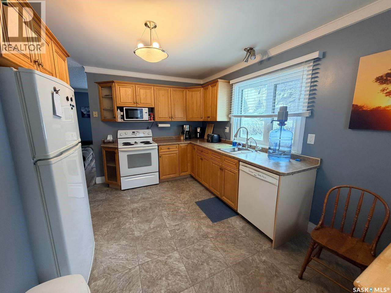 Welcome to 302 Humboldt Street. Tucked into the peaceful village of Jansen, SK, this 724 sq. ft. home sits on an expansive triple lot (120' x 115'), offering a rare combination of privacy, space, and small-town charm. Recent upgrades throughout make it move-in ready. Inside, you'll find newer flooring across both levels, a well-appointed kitchen with updated cabinetry, and a bright main-floor living room with patio doors opening onto the deck. A spacious 3-piece bathroom and expansive bedroom complete the main floor. Downstairs adds a second bedroom, a freshly renovated laundry room (2021), and dedicated storage and utility areas. Other major upgrades include triple-pane windows (2019), a newer furnace (2014), and a metal roof (2020) which was added to both the house and the guest house. Outside, the property truly comes into its own. An insulated, powered 19x23 detached garage serves equally well as a workshop or extra parking. A separate guest house or private office adds flexibility for visitors or remote work. Round it out with a deck, patio, and garden area. Positioned near the edge of town, this property delivers the quiet of rural living without sacrificing convenience. A well-maintained, thoughtfully upgraded property. Contact us today for more info or to book your viewing. (id:44393)