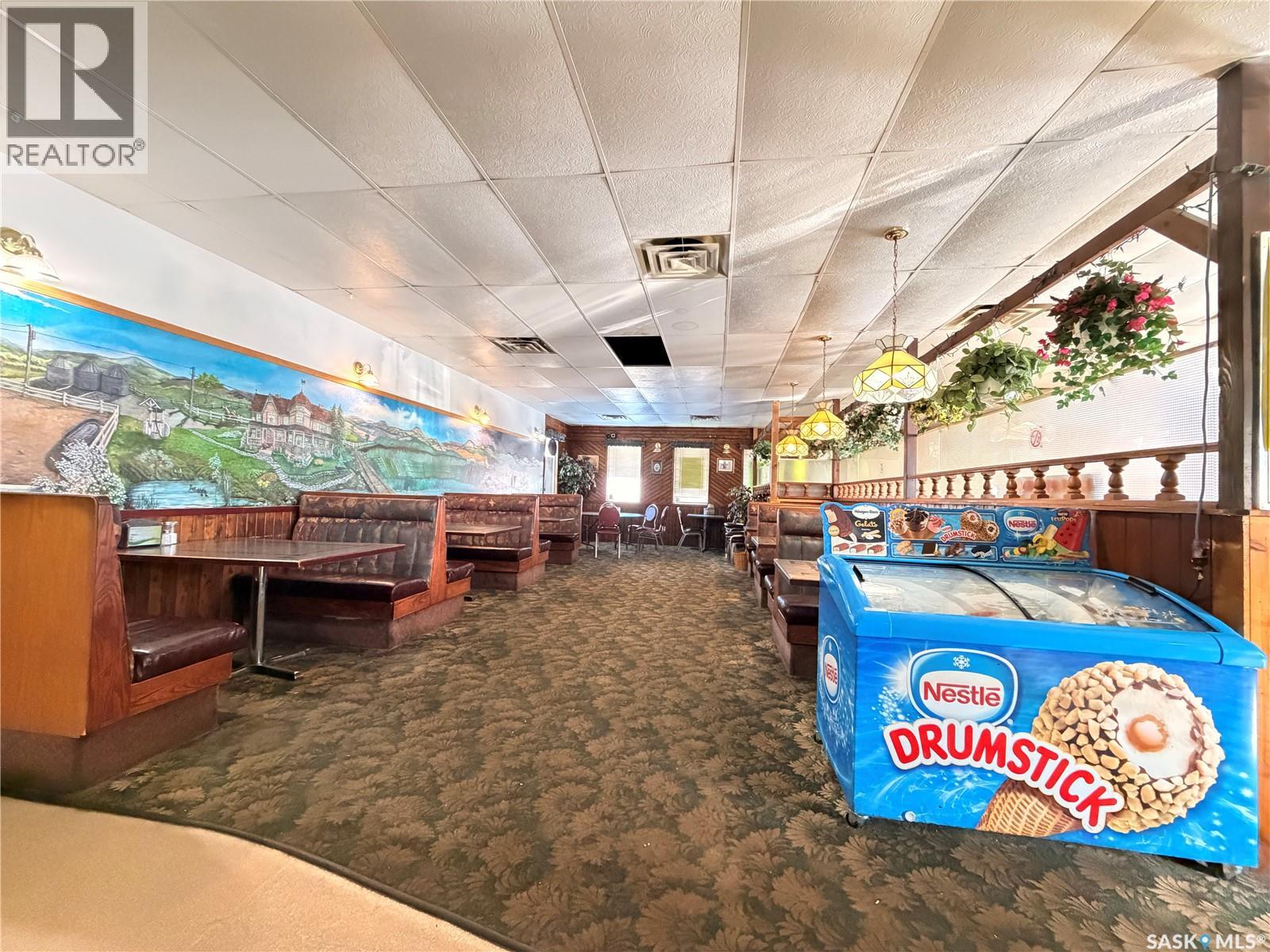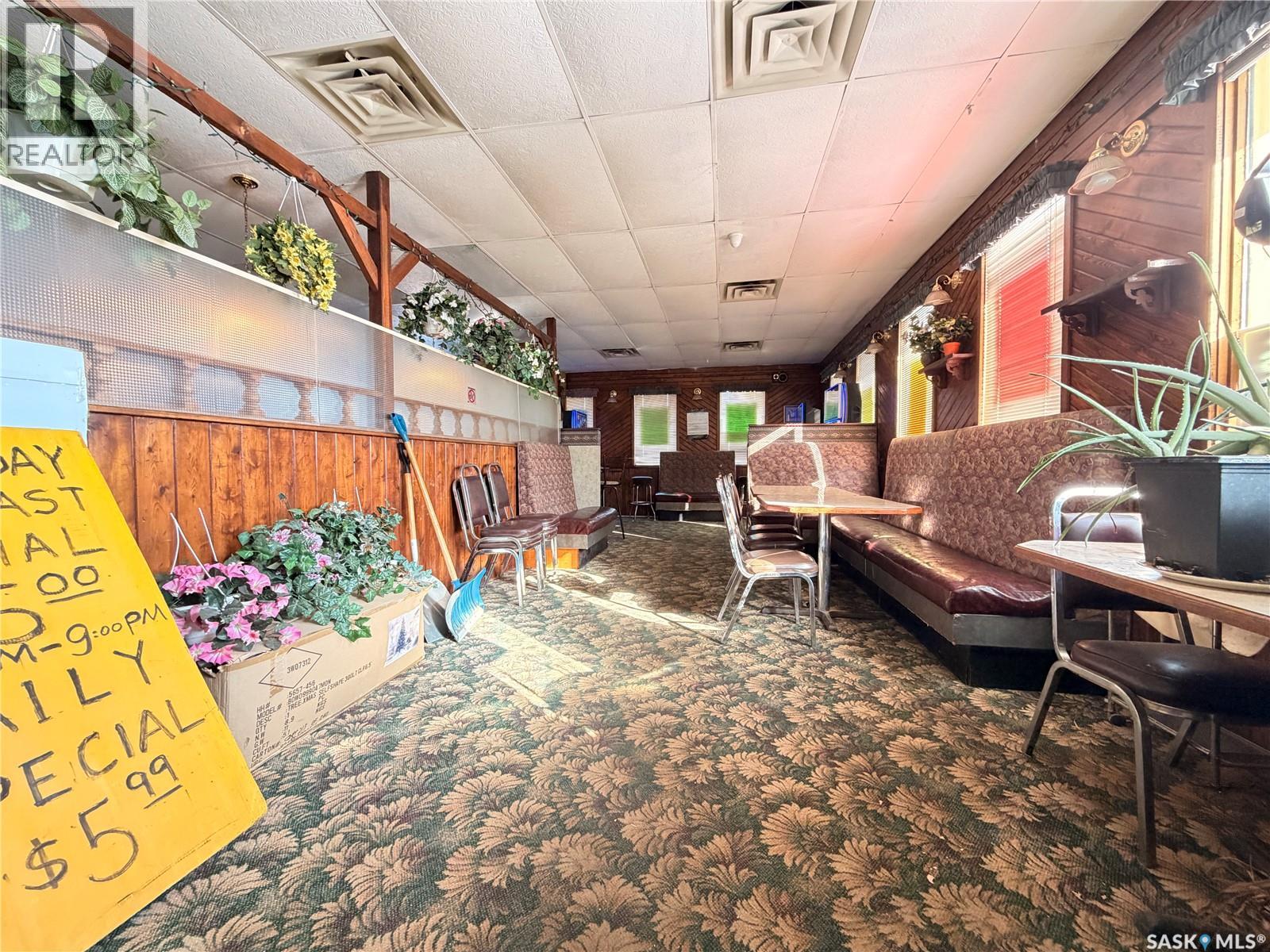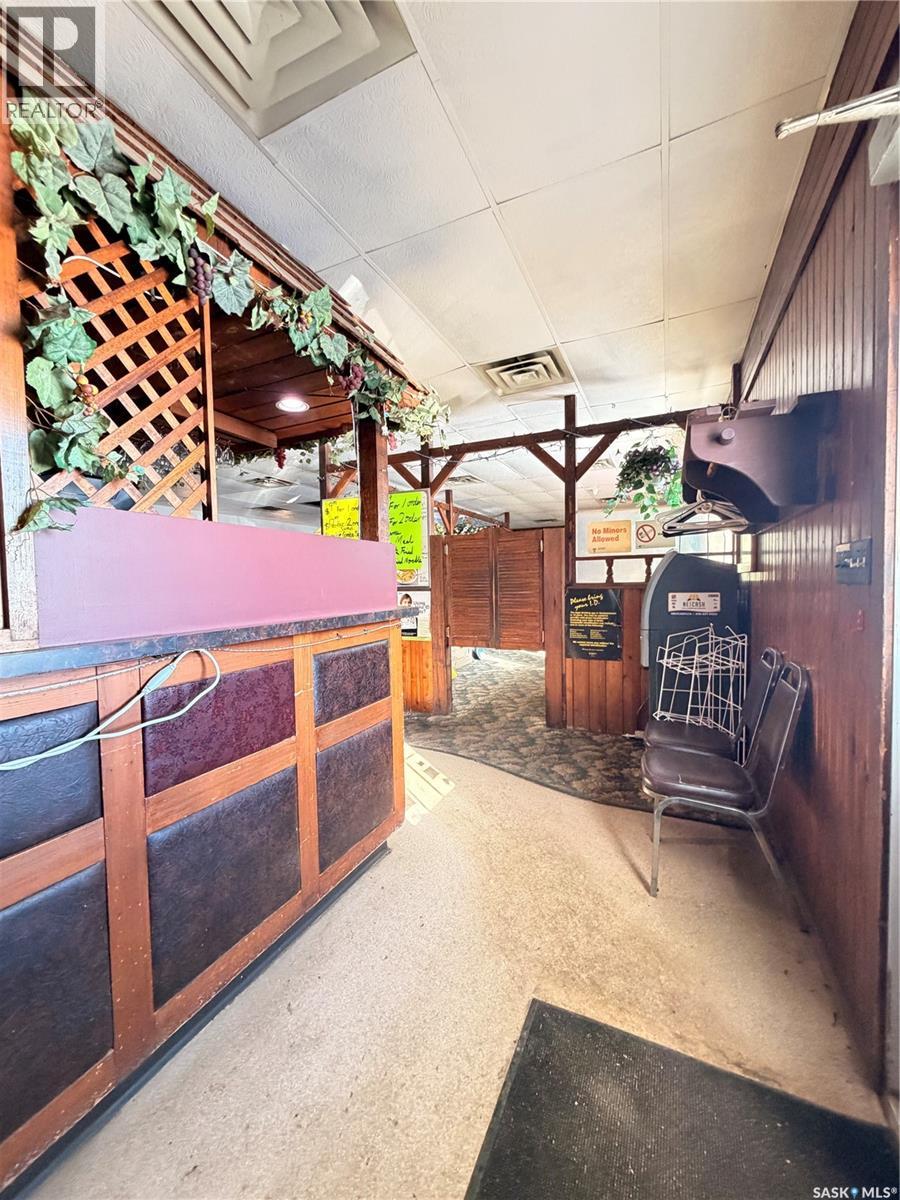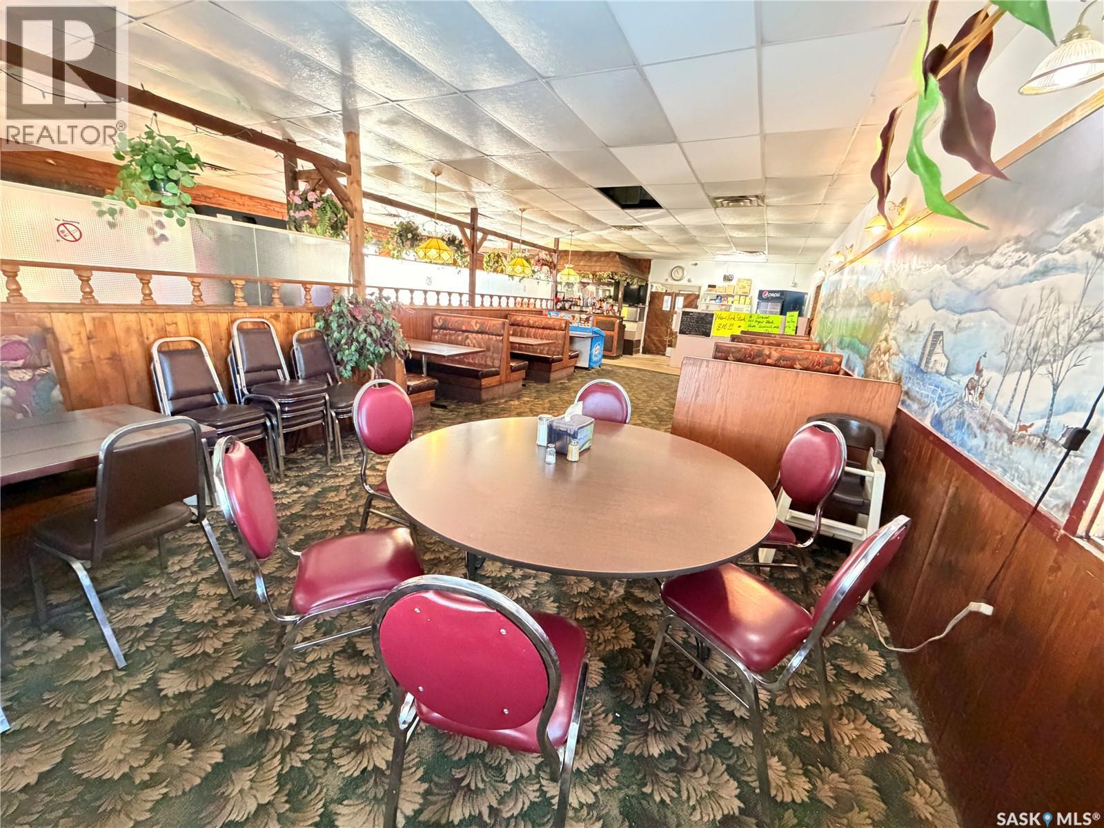 Priced for a quick sale! Long Standing restaurant, bar, and banquet facility located in the heart of Assiniboia, offering approximately 140 seats. The restaurant is ideally located along Highway 2, offering excellent visibility and convenient access for both local and highway traffic This well-known community establishment features a valid liquor license and a dedicated games room with four VLT machines (new owners will be required to obtain both permits from Saskatchewan Liquor and Gaming Authority). Major updates include a roof replacement in recent years, along with newer air conditioning and furnace systems for improved efficiency and comfort. The property is offered as an asset sale and sold in “as-is” condition, with all existing machinery, equipment, and chattels currently on site included in the purchase price. This is an excellent opportunity to acquire a fully equipped hospitality business with strong local presence and potential for growth. (id:44393)
