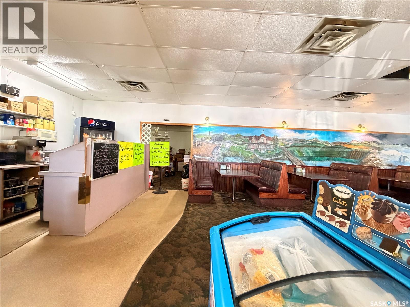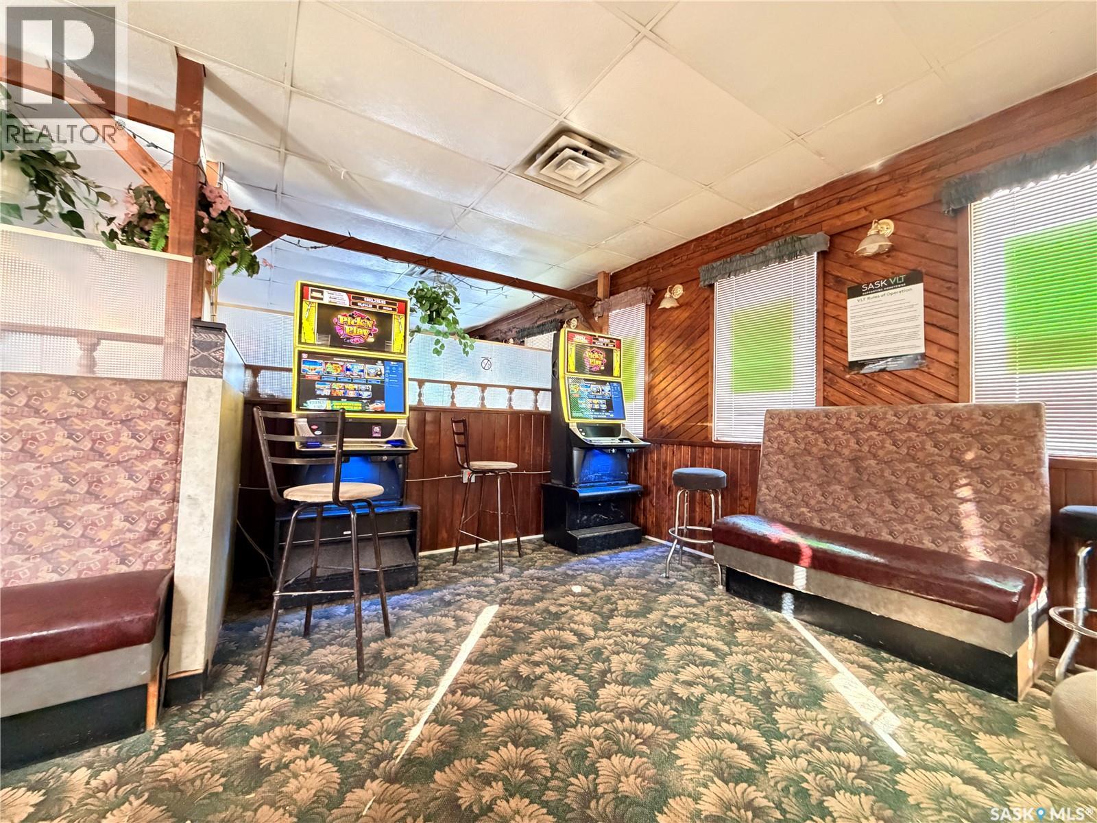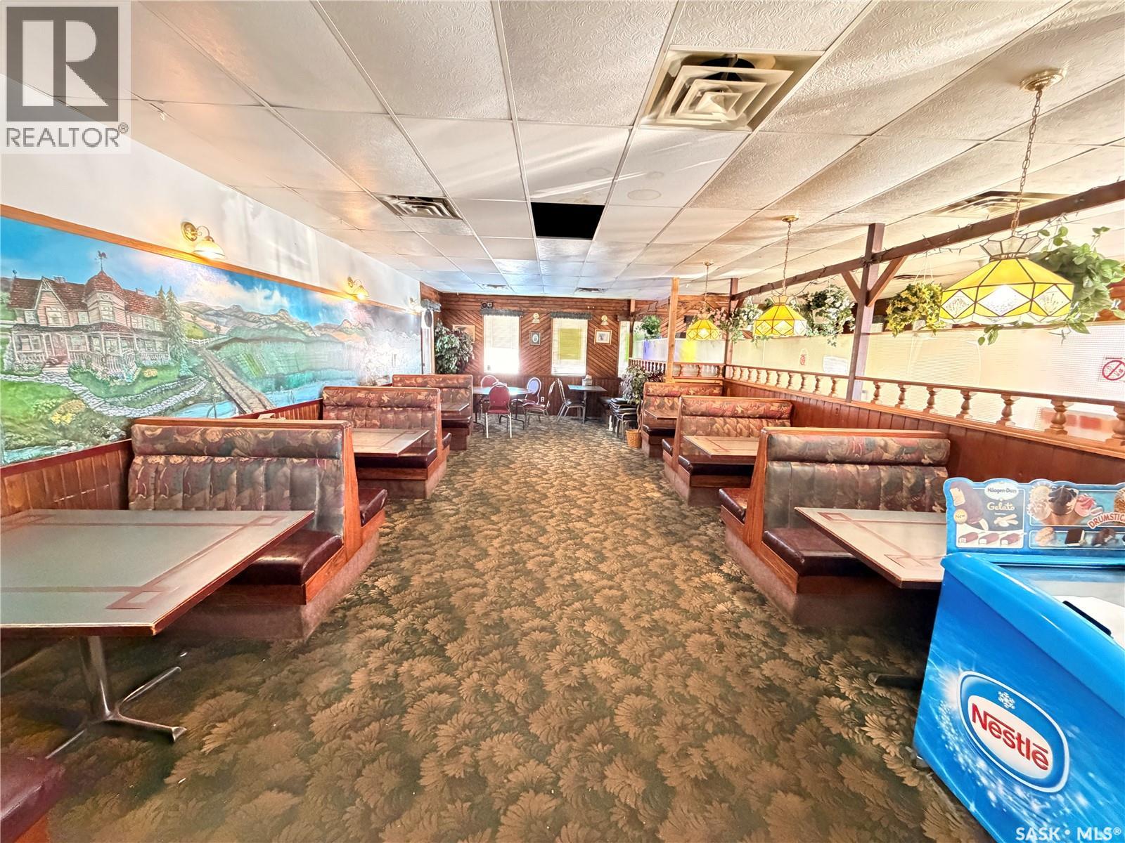 Priced for a quick sale! Long Standing restaurant, bar, and banquet facility located in the heart of Assiniboia, offering approximately 140 seats. The restaurant is ideally located along Highway 2, offering excellent visibility and convenient access for both local and highway traffic This well-known community establishment features a valid liquor license and a dedicated games room with four VLT machines (new owners will be required to obtain both permits from Saskatchewan Liquor and Gaming Authority). Major updates include a roof replacement in recent years, along with newer air conditioning and furnace systems for improved efficiency and comfort. The property is offered as an asset sale and sold in “as-is” condition, with all existing machinery, equipment, and chattels currently on site included in the purchase price. This is an excellent opportunity to acquire a fully equipped hospitality business with strong local presence and potential for growth. (id:44393)