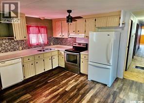 Welcome to 305 2nd Street W in the quiet town of Milden! Milden is a safe, quiet, family filled community that is a short drive to Outlook and Rosetown, is the home of The Milden Roadhouse and has bus pickup for your children to attend school in Rosetown or Dinsmore. The property is on a massive owned lot and features a big heated and insulated double detached garage, multiple garden plots, cherry & apple trees and a treehouse. This bright, spacious home features a large entry way, tons of storage including a cold storage cellar, laundry, a full four piece bathroom with storage, two large bedrooms, kitchen and dining area with all appliances included, a huge living room and a sunroom or extra storage room. You will be pleased to find there are lots of updates such as the HE furnace, windows in the front bay windows, fridge 2015, dishwasher 2014, insulated skirting around the trailer 2013, vinyl plank flooring in the kitchen and living room 2019, new paint in the living room and kitchen 2019, some new treated wood supports under home, newer patio doors on to the 12x12 deck, lots of new light fixtures, water heater and electrical panel in 2021, added extra insulation and new carpet in the master bedroom, completely renovated second bedroom including insulation, complete bathroom Reno, new electrical mast and mostly all new plumbing throughout. Call today for your own private tour! (id:44393)