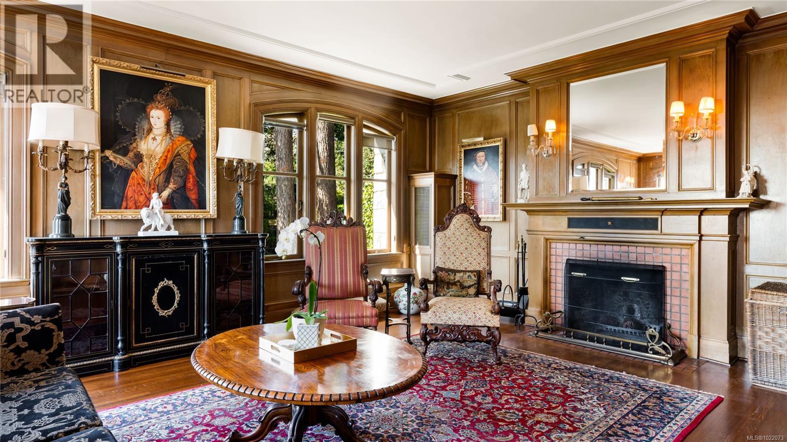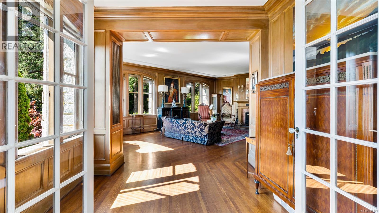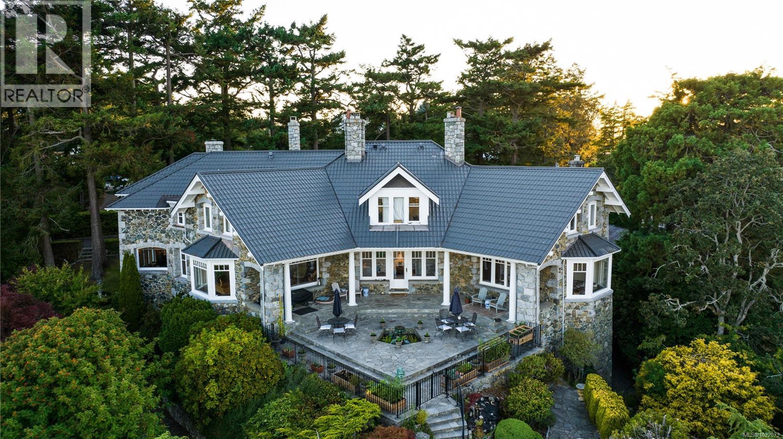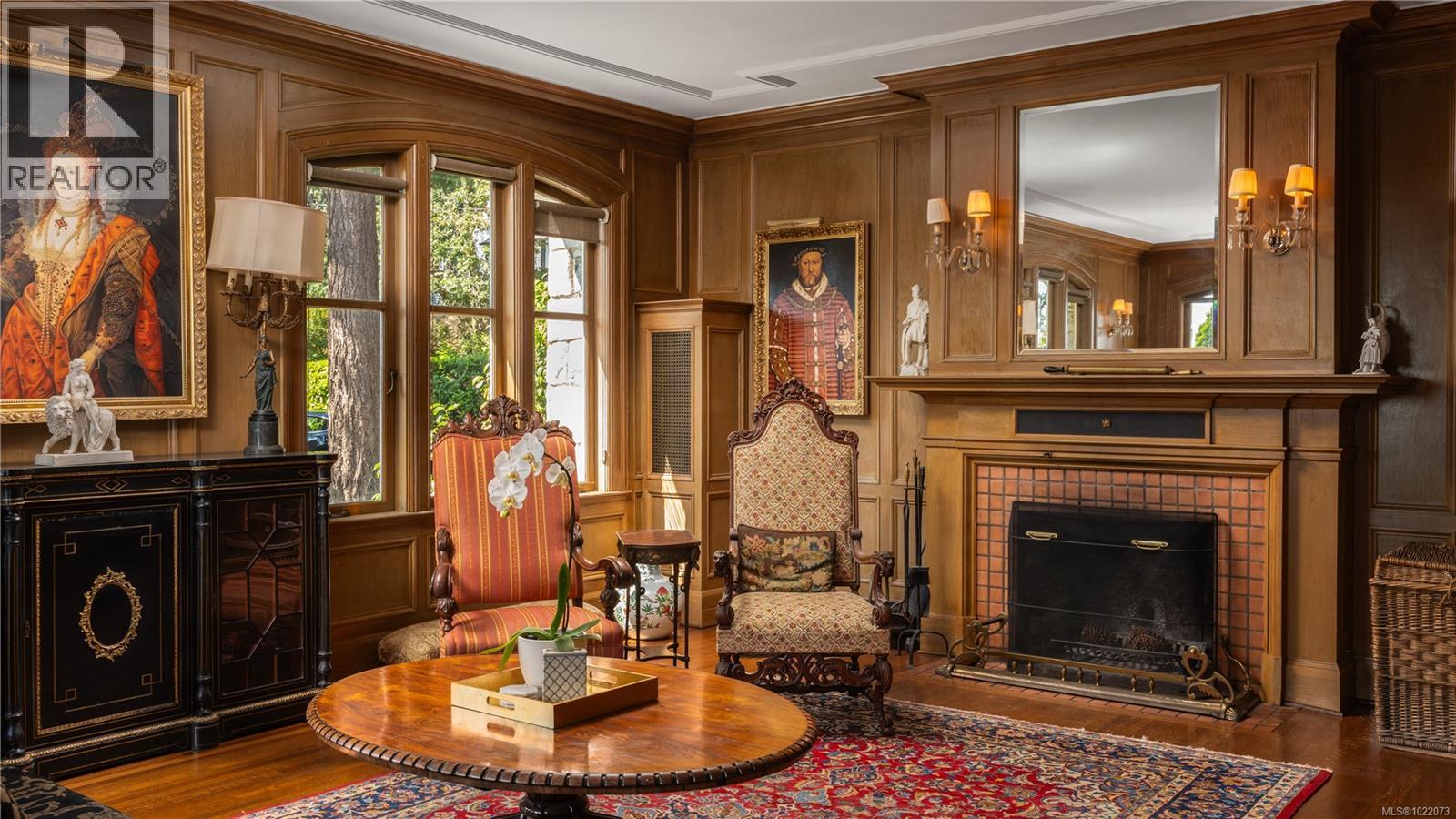 Introducing Kingsmount - a landmark estate in prestigious Oak Bay. Perched atop Gonzales Hill on nearly an acre of exquisitely landscaped grounds, this residence stands among Victoria’s most distinguished architectural treasures. Originally designed by renowned architects Samuel Maclure and Francis Rattenbury, with a later addition by D.C. Frame, Kingsmount is a masterful expression of British Arts and Crafts design, where heritage craftsmanship meets refined modern luxury. A grand entry with original 100-year-old marble flooring sets a tone of timeless elegance. Ten-foot ceilings, oak flooring throughout the main level, and extraordinary original detailing speak to impeccable provenance. The main floor is ideal for intimate gatherings and grand-scale entertaining, offering an impressive living room, music room, library, private office, sitting room, and a chef’s kitchen anchored by a statement fireplace. A bright marble-floored sunroom opens to an extensive stone patio, gardens, and uninterrupted sightlines to the ocean and Mt. Baker beyond, creating a seamless indoor-outdoor lifestyle rarely found in Oak Bay. Upstairs, the stately primary suite is accompanied by five additional bedrooms, many with fireplaces and walk-in closets. Fir flooring throughout the upper level adds warmth and continuity. The lower level offers a private guest suite with separate entrance, wine room, and workshop—ideal for extended family, guests, or staff. The grounds are enchanting: mature trees, garden pathways, water features, and expansive patios provide serene privacy and a setting that has hosted countless elegant gatherings. Located on one of Oak Bay’s most beautiful and coveted lanes, just steps to Gonzales Hill Park and minutes to beaches, trails, Oak Bay Village, top schools, Victoria Golf Club, fine dining, and boutique shopping. A rare and refined opportunity to own one of Oak Bay’s landmark estates - timeless, grand, and utterly exclusive. (id:44393)