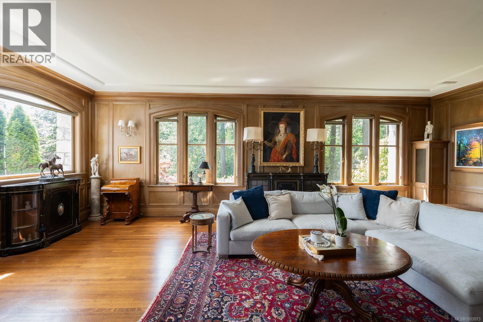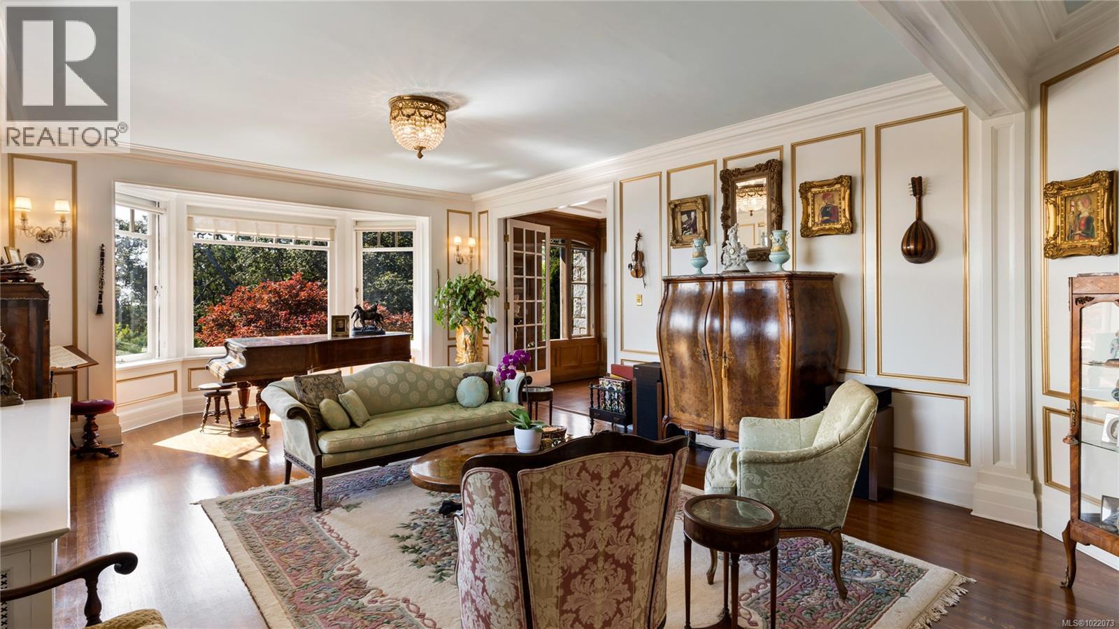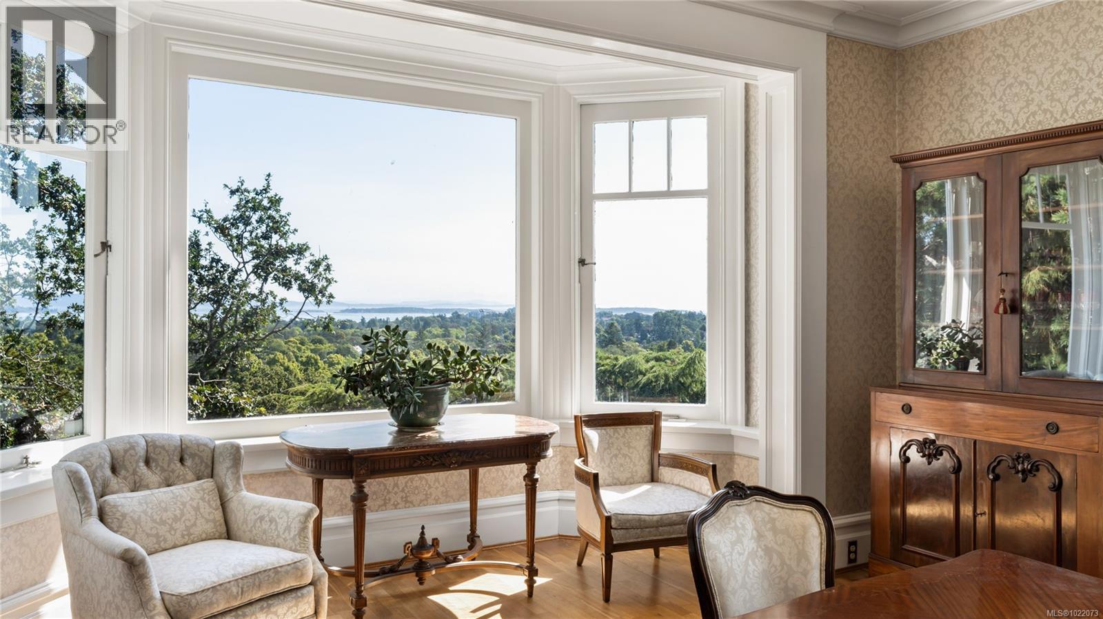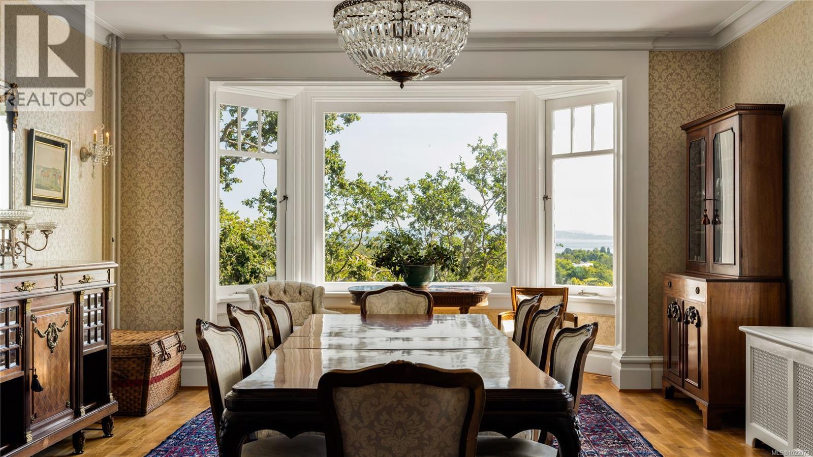 Introducing Kingsmount - a landmark estate in prestigious Oak Bay. Perched atop Gonzales Hill on nearly an acre of exquisitely landscaped grounds, this residence stands among Victoria’s most distinguished architectural treasures. Originally designed by renowned architects Samuel Maclure and Francis Rattenbury, with a later addition by D.C. Frame, Kingsmount is a masterful expression of British Arts and Crafts design, where heritage craftsmanship meets refined modern luxury. A grand entry with original 100-year-old marble flooring sets a tone of timeless elegance. Ten-foot ceilings, oak flooring throughout the main level, and extraordinary original detailing speak to impeccable provenance. The main floor is ideal for intimate gatherings and grand-scale entertaining, offering an impressive living room, music room, library, private office, sitting room, and a chef’s kitchen anchored by a statement fireplace. A bright marble-floored sunroom opens to an extensive stone patio, gardens, and uninterrupted sightlines to the ocean and Mt. Baker beyond, creating a seamless indoor-outdoor lifestyle rarely found in Oak Bay. Upstairs, the stately primary suite is accompanied by five additional bedrooms, many with fireplaces and walk-in closets. Fir flooring throughout the upper level adds warmth and continuity. The lower level offers a private guest suite with separate entrance, wine room, and workshop—ideal for extended family, guests, or staff. The grounds are enchanting: mature trees, garden pathways, water features, and expansive patios provide serene privacy and a setting that has hosted countless elegant gatherings. Located on one of Oak Bay’s most beautiful and coveted lanes, just steps to Gonzales Hill Park and minutes to beaches, trails, Oak Bay Village, top schools, Victoria Golf Club, fine dining, and boutique shopping. A rare and refined opportunity to own one of Oak Bay’s landmark estates - timeless, grand, and utterly exclusive. (id:44393)