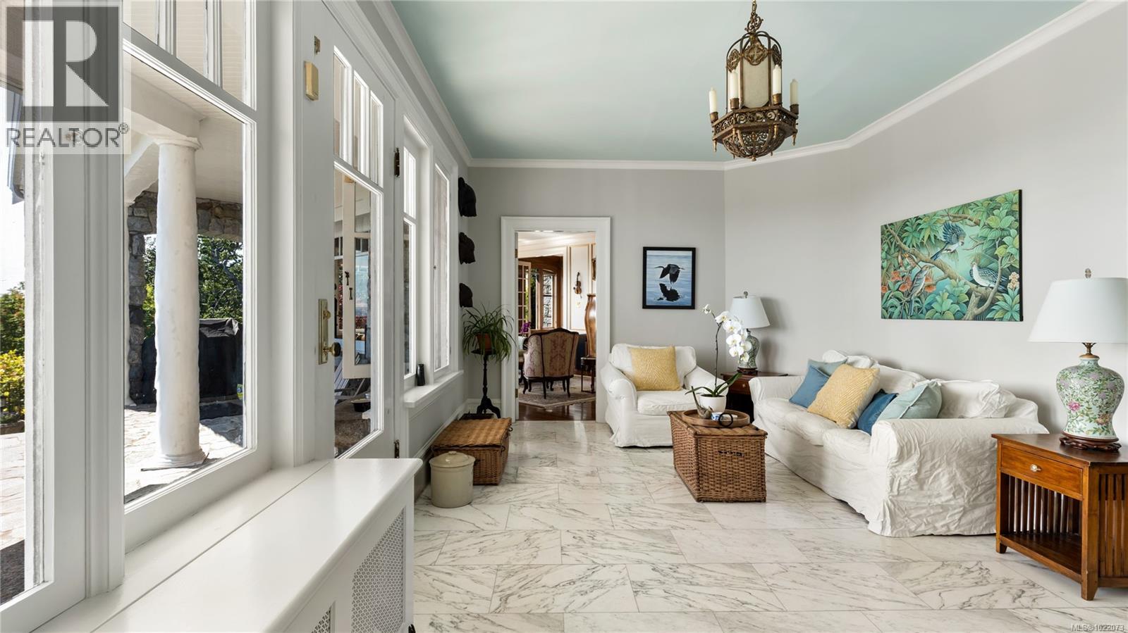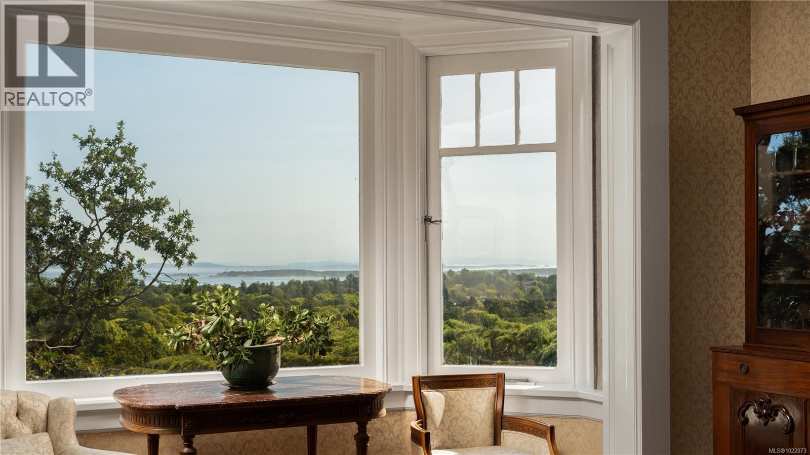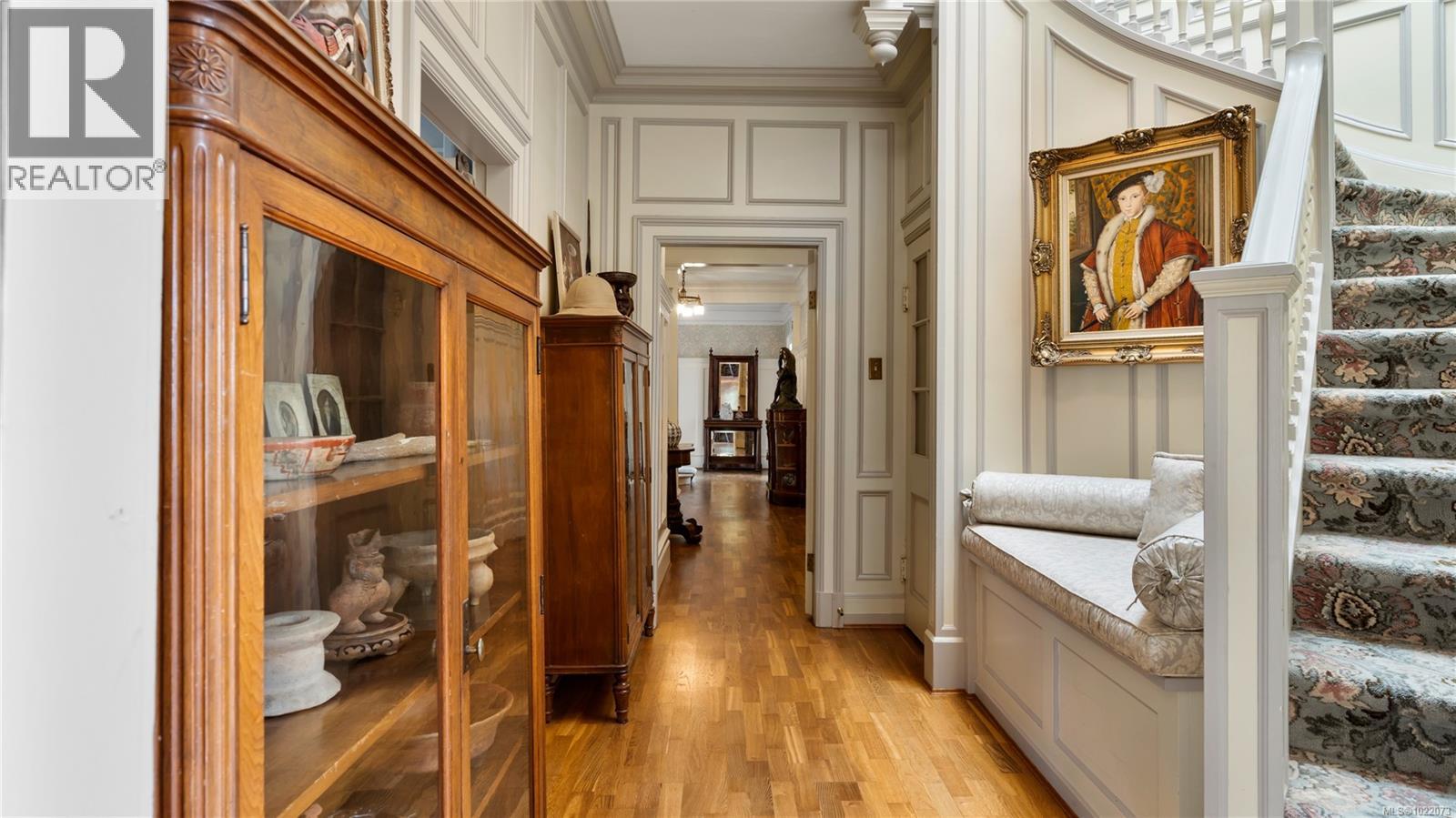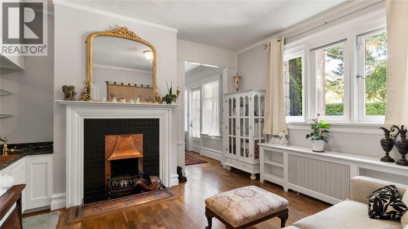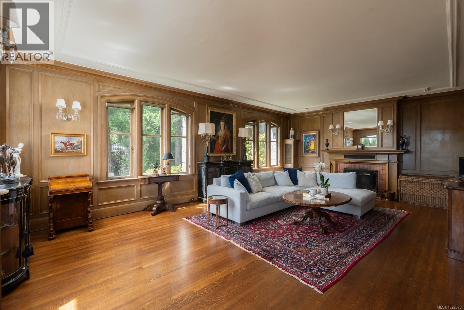 Introducing Kingsmount - a landmark estate in prestigious Oak Bay. Perched atop Gonzales Hill on nearly an acre of exquisitely landscaped grounds, this residence stands among Victoria’s most distinguished architectural treasures. Originally designed by renowned architects Samuel Maclure and Francis Rattenbury, with a later addition by D.C. Frame, Kingsmount is a masterful expression of British Arts and Crafts design, where heritage craftsmanship meets refined modern luxury. A grand entry with original 100-year-old marble flooring sets a tone of timeless elegance. Ten-foot ceilings, oak flooring throughout the main level, and extraordinary original detailing speak to impeccable provenance. The main floor is ideal for intimate gatherings and grand-scale entertaining, offering an impressive living room, music room, library, private office, sitting room, and a chef’s kitchen anchored by a statement fireplace. A bright marble-floored sunroom opens to an extensive stone patio, gardens, and uninterrupted sightlines to the ocean and Mt. Baker beyond, creating a seamless indoor-outdoor lifestyle rarely found in Oak Bay. Upstairs, the stately primary suite is accompanied by five additional bedrooms, many with fireplaces and walk-in closets. Fir flooring throughout the upper level adds warmth and continuity. The lower level offers a private guest suite with separate entrance, wine room, and workshop—ideal for extended family, guests, or staff. The grounds are enchanting: mature trees, garden pathways, water features, and expansive patios provide serene privacy and a setting that has hosted countless elegant gatherings. Located on one of Oak Bay’s most beautiful and coveted lanes, just steps to Gonzales Hill Park and minutes to beaches, trails, Oak Bay Village, top schools, Victoria Golf Club, fine dining, and boutique shopping. A rare and refined opportunity to own one of Oak Bay’s landmark estates - timeless, grand, and utterly exclusive. (id:44393)