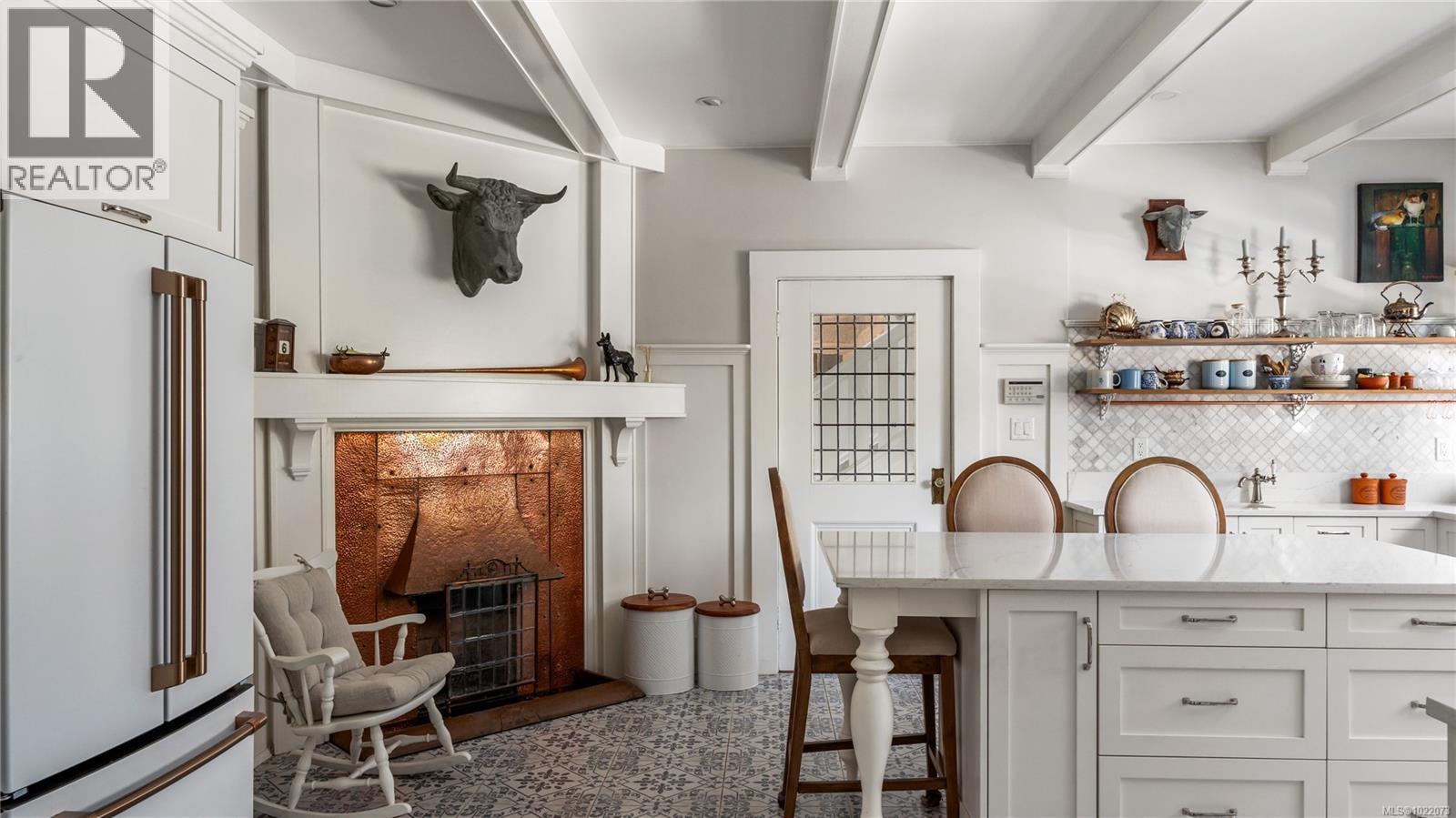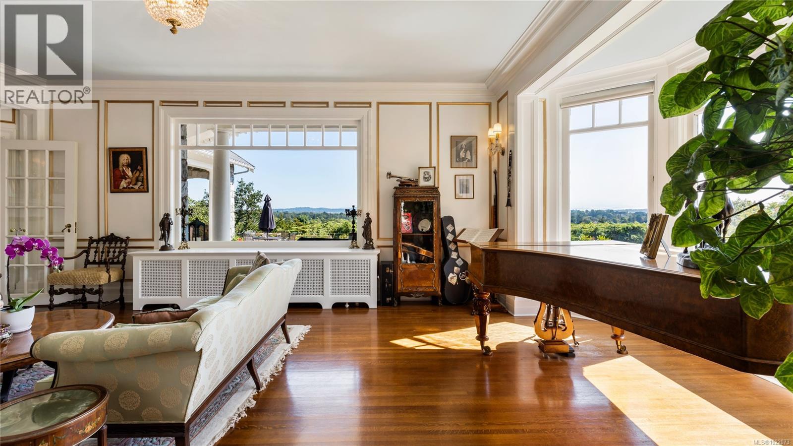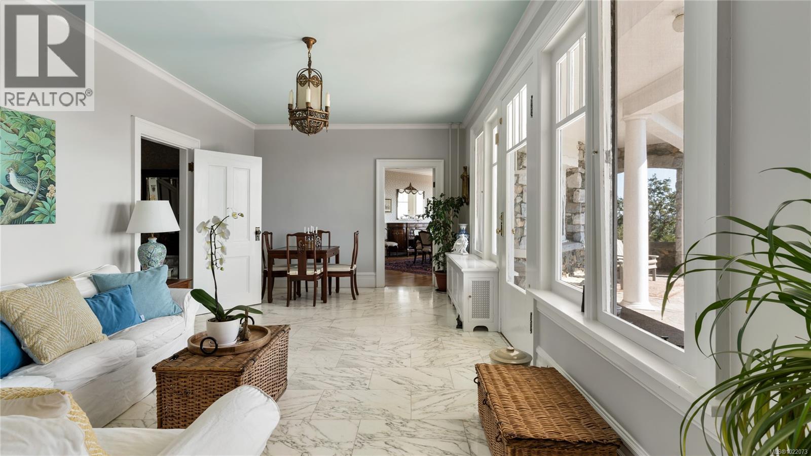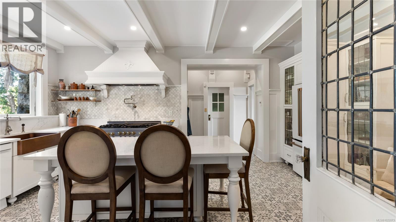 Introducing Kingsmount - a landmark estate in prestigious Oak Bay. Perched atop Gonzales Hill on nearly an acre of exquisitely landscaped grounds, this residence stands among Victoria’s most distinguished architectural treasures. Originally designed by renowned architects Samuel Maclure and Francis Rattenbury, with a later addition by D.C. Frame, Kingsmount is a masterful expression of British Arts and Crafts design, where heritage craftsmanship meets refined modern luxury. A grand entry with original 100-year-old marble flooring sets a tone of timeless elegance. Ten-foot ceilings, oak flooring throughout the main level, and extraordinary original detailing speak to impeccable provenance. The main floor is ideal for intimate gatherings and grand-scale entertaining, offering an impressive living room, music room, library, private office, sitting room, and a chef’s kitchen anchored by a statement fireplace. A bright marble-floored sunroom opens to an extensive stone patio, gardens, and uninterrupted sightlines to the ocean and Mt. Baker beyond, creating a seamless indoor-outdoor lifestyle rarely found in Oak Bay. Upstairs, the stately primary suite is accompanied by five additional bedrooms, many with fireplaces and walk-in closets. Fir flooring throughout the upper level adds warmth and continuity. The lower level offers a private guest suite with separate entrance, wine room, and workshop—ideal for extended family, guests, or staff. The grounds are enchanting: mature trees, garden pathways, water features, and expansive patios provide serene privacy and a setting that has hosted countless elegant gatherings. Located on one of Oak Bay’s most beautiful and coveted lanes, just steps to Gonzales Hill Park and minutes to beaches, trails, Oak Bay Village, top schools, Victoria Golf Club, fine dining, and boutique shopping. A rare and refined opportunity to own one of Oak Bay’s landmark estates - timeless, grand, and utterly exclusive. (id:44393)