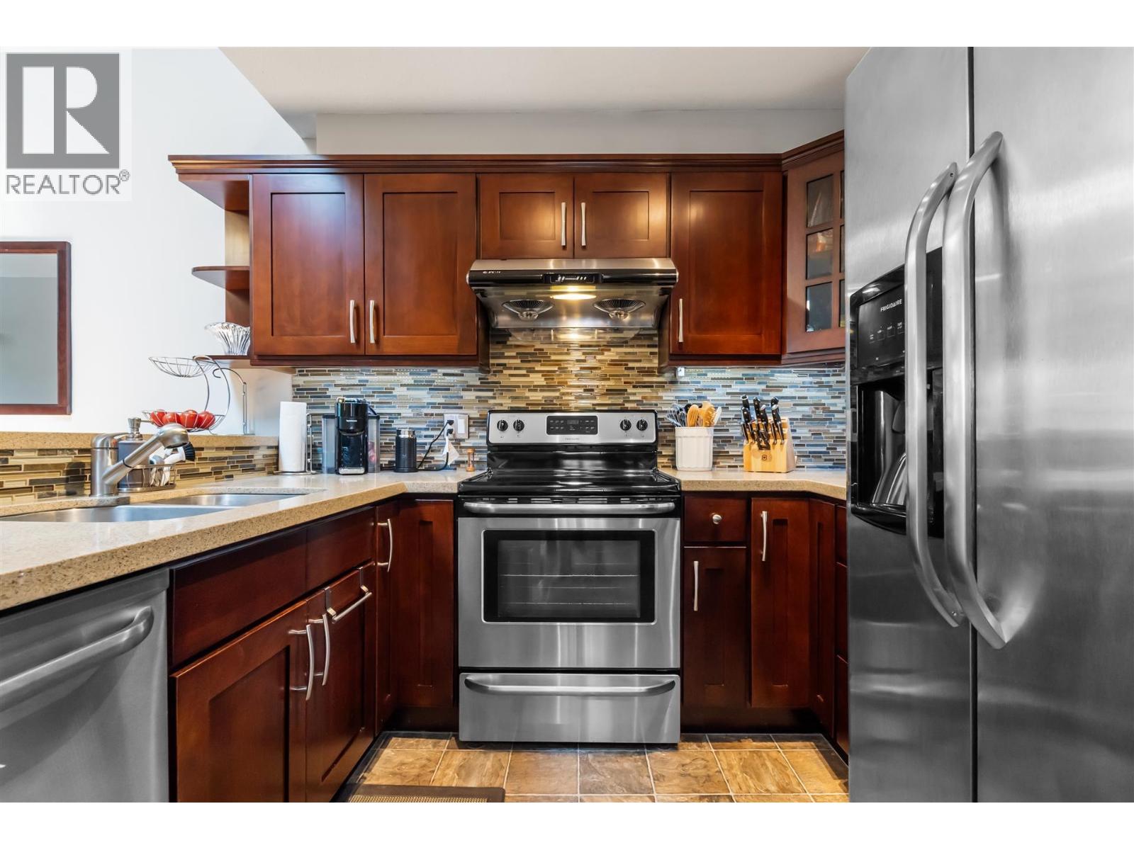 $342.68 MonthlyBeautifully renovated TOP-floor 1 bedroom home is an Artistic Oasis in Burnaby's South Slope! Enter & be impressed by a Stunning Rustic Ledgestone Fireplace from floor to nearly 15 foot tall Vaulted Ceiling w/sky light. Gorgeous Solid Asian Oak Hardwood kitchen cabinets, Quartz counters & built in beverage/wine fridge. Stainless steel appliances completes the look of this charming kitchen. Cheater ensuite bathroom off the walk-thru closet has thoughtful design & comfort with elegance. Quiet location just steps from Edmonds Sky-train (6 min) Metro-town in 2 stops, New Westminster in 2 stops as well. Groceries & other necessities at Kim's Mart just a 3 min. Perfect convenience for those who want to leave the car at home. Surrounded by parks & serene forested trails. (id:44393)