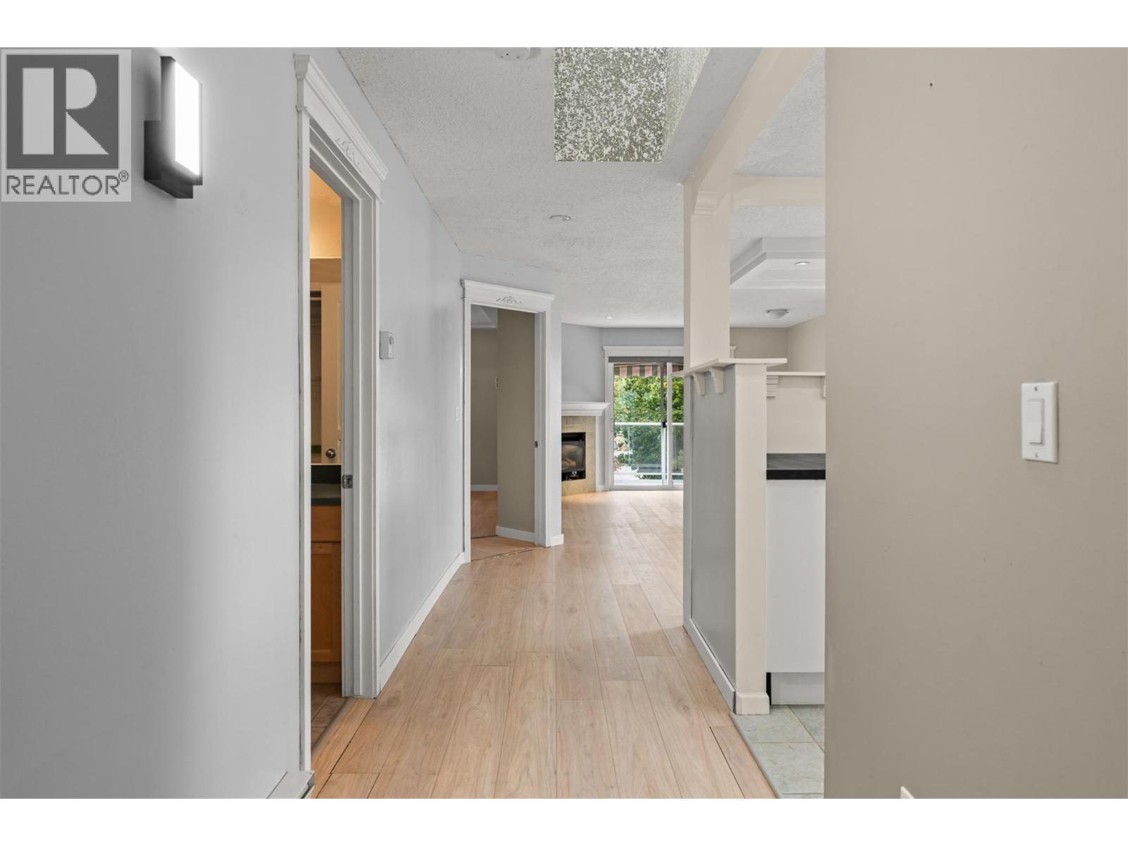 $360 MonthlyBright corner townhouse near Kal Beach! Welcome to this 2-bedroom, 2-bathroom top-floor townhouse offering comfort, convenience, and in great condition. This corner unit features additional windows and an inviting floor plan with new paint and new flooring, ready for you to move right in. Upon entry you’re greeted by a spacious landing area for east facing outdoor covered seating, once inside, it leads into the first bedroom and a full shared bathroom. The primary bedroom offers a private ensuite and peaceful ambiance. The open kitchen, dining, and living areas are perfect for entertaining, highlighted by west-facing windows, crown moulding, and a skylight that fills the space with warmth and light. Step out to your private patio and unwind with an afternoon book and warm drink while enjoying nature. This home includes two parking stalls (one covered) and is vacant for quick possession. Enjoy a relaxed lifestyle close to golfing, public transportation, and a short distance to Kal Beach and the Rail Trail- the perfect spot for four-season living. Bring your pets, (one cat or one dog with no size restriction). Ideal for first-time buyers, down-sizers, or investors alike. Don’t miss your chance to own this clean, move-in-ready home in a desirable location! (id:44393)