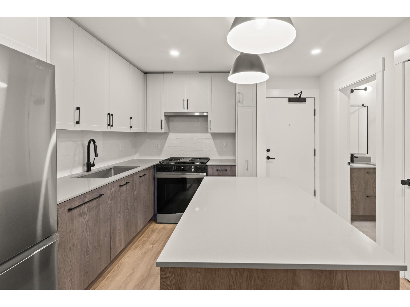 $450 MonthlyWelcome to Aldergrove Town Centre! This bright and beautifully designed 2-bedroom, 2-bath residence offers over 700 sq. ft. of modern living, complete with 1 EV-ready parking stall and 2 storage lockers. The home features a sleek contemporary kitchen with a gas range, an open-concept living and dining area, and expansive windows that flood the space with natural light. Enjoy a private balcony with serene views of the new trail and surrounding green space. Year-round comfort is ensured with efficient air conditioning. Perfectly situated just steps from Fraser Highway's shops, restaurants, and everyday conveniences near highway access and Aldergrove Community Centre and the US border. This is effortless, modern living in the heart of Aldergrove. (id:44393)