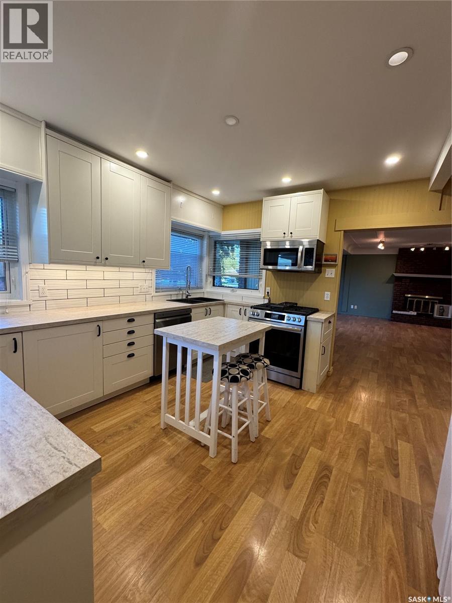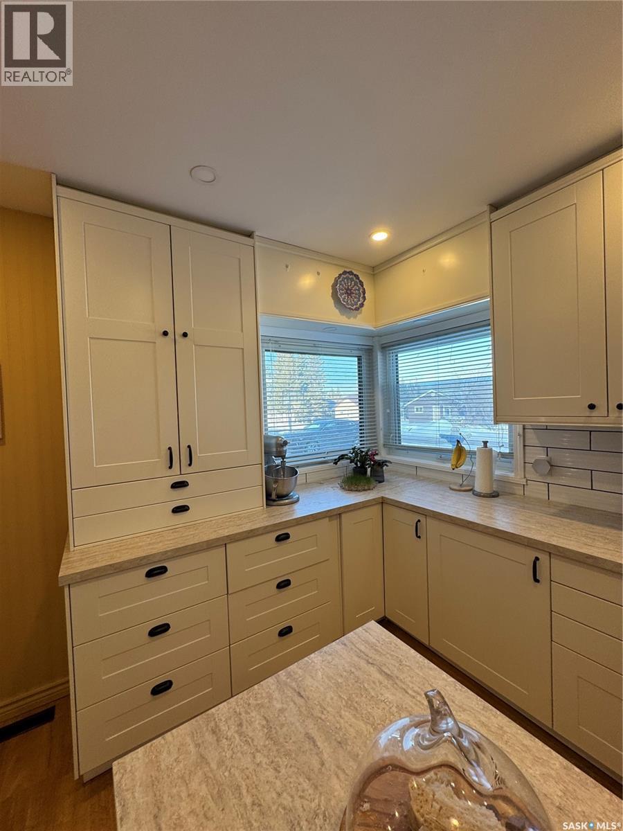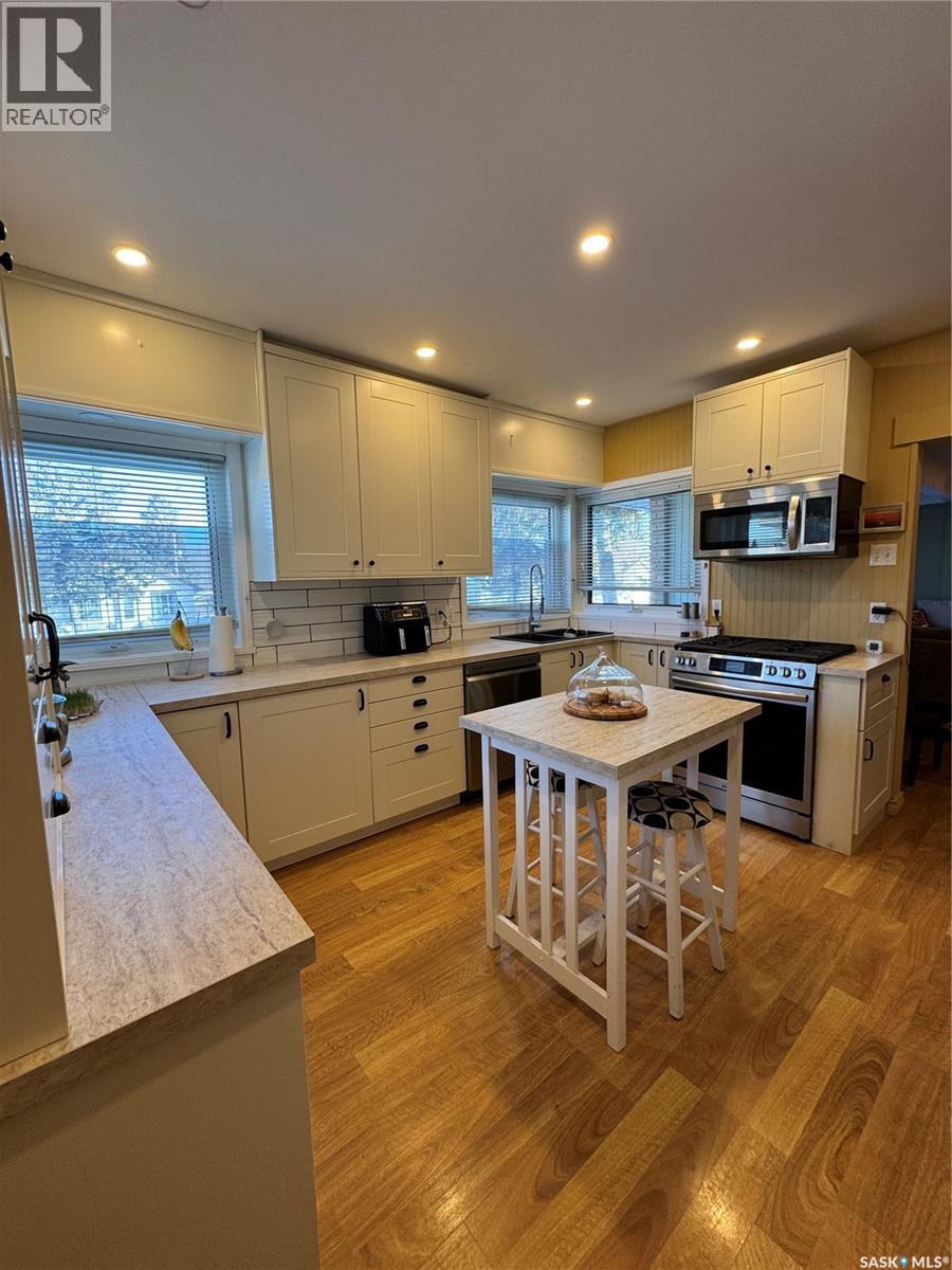Timeless Character Meets Modern Luxury! Step into a home where character, comfort, & thoughtful design come together beautifully. This stunning 3-bedroom, 2-bath residence offers inviting spaces, quality updates, & unique architectural charm throughout. The beautifully renovated kitchen is the heart of the home, featuring stylish cabinetry, elegant countertops, a spacious island, & a custom built-in coffee bar. A cozy breakfast nook creates the perfect spot for morning coffee while natural light fills the space. Included appliances feature a natural gas stove, refrigerator, microwave fan, and dishwasher. Designed for both everyday living and entertaining, the open-concept dining and living area showcases a charming built-in china cabinet, creating a warm and welcoming atmosphere for gatherings with family and friends. A dramatic recreational room with vaulted ceilings and expansive windows floods the home with natural light and offers an impressive space for relaxing or entertaining. The spiral staircase leads to a charming sitting area or private office retreat—an ideal place to unwind while enjoying breathtaking views of the Northern Lights dancing across the night sky.The finished basement provides exceptional versatility with a spacious bedroom, a stylish three-piece bath, and a large rumpus room perfect for family activities or hosting guests. A rare and highly desirable feature is the attached triple-car garage (13’x34’ +19’x42’),complete with in-floor heating, a private bathroom, and a workbench with sink-perfect for hobbyists, car enthusiasts, or additional workspace. Outdoors, the property continues to impress with a beautiful front-yard fountain, raised garden beds, and a backyard oasis that includes a greenhouse and workshop, offering endless possibilities for gardening, creativity, and relaxation.This exceptional home offers space, charm, & distinctive features rarely found in one property. Experience it for yourself—schedule your private viewing today. (id:44393)