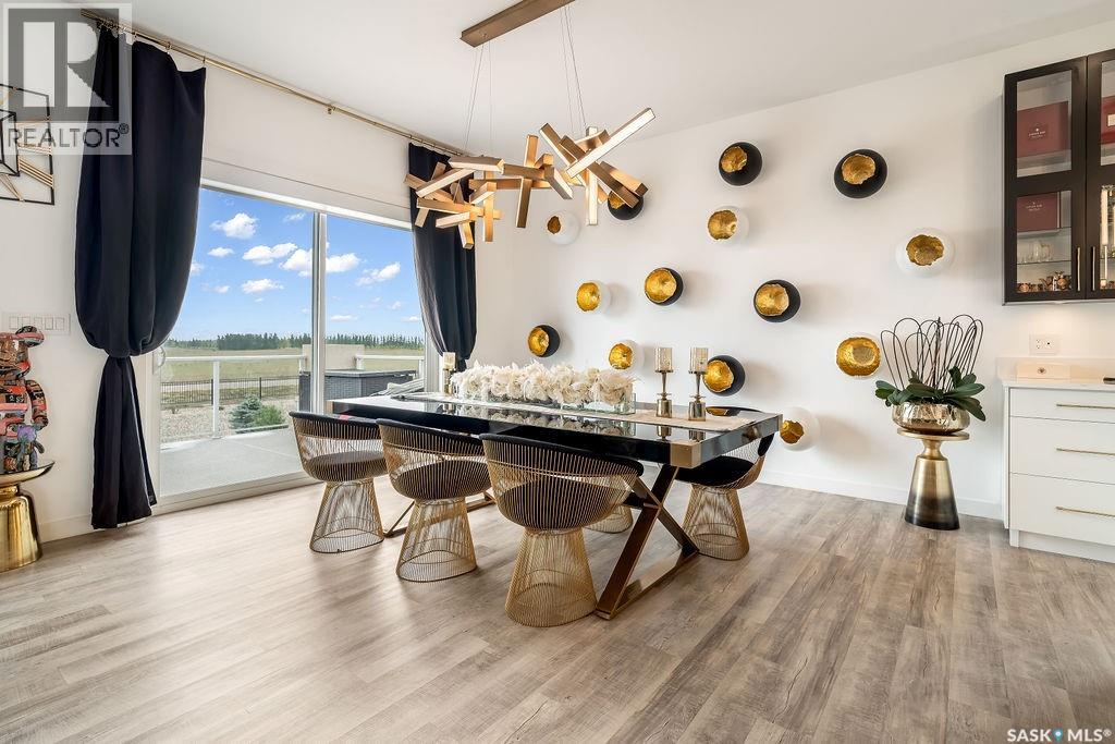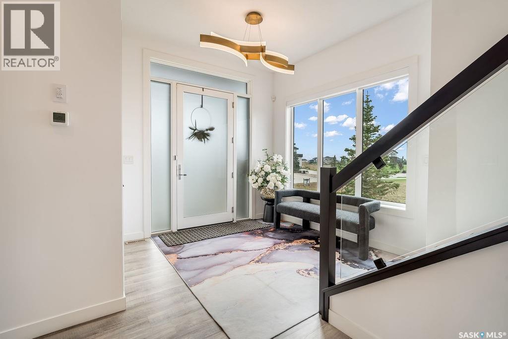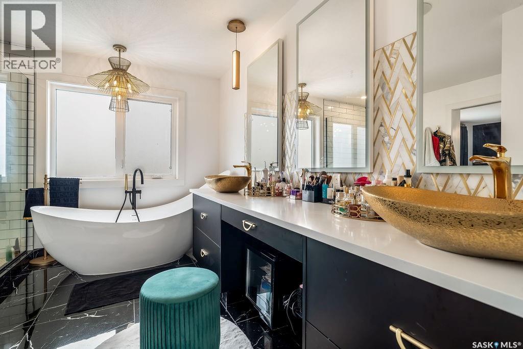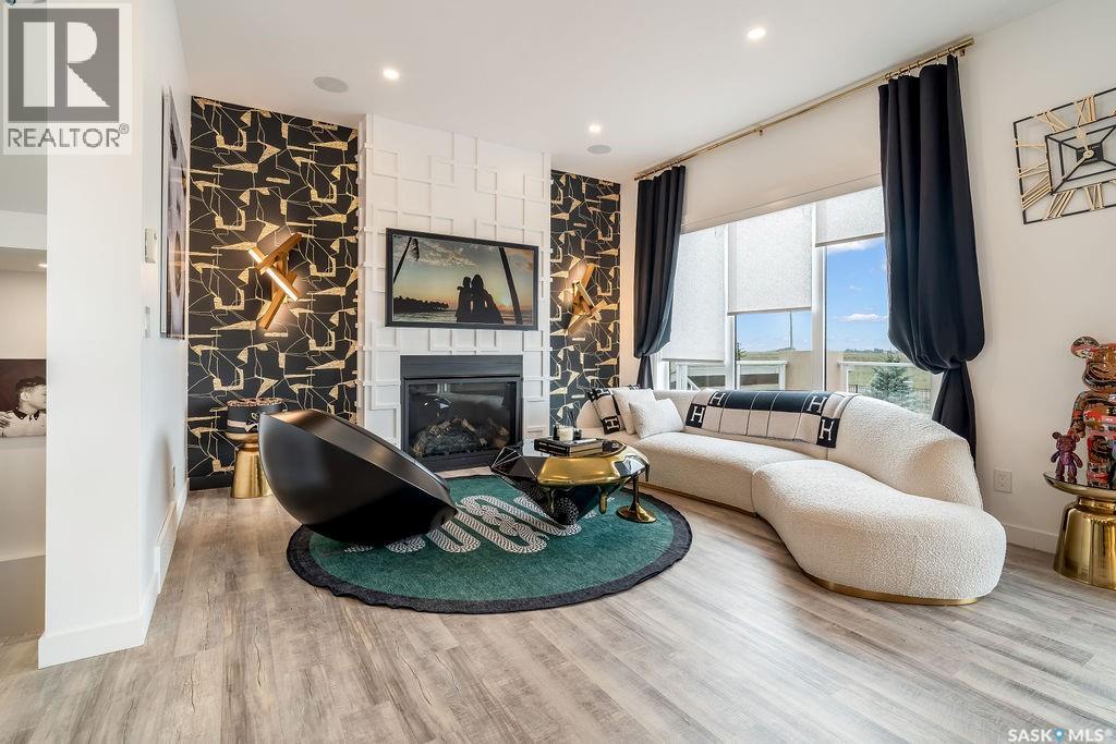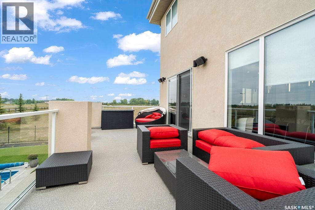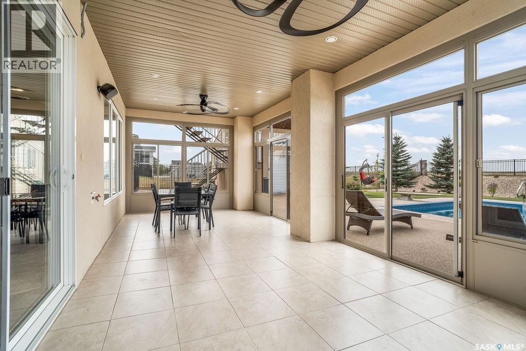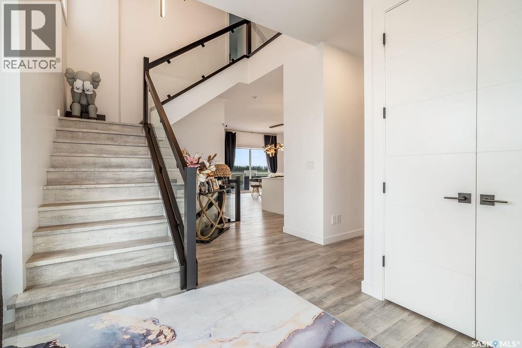 Luxury Living in Spruce Creek Estates – Pool, Walkout, Triple Garage This exquisite two-storey 2018 Stars Lottery Home, is located in the prestigious community just minutes east of Regina. From the moment you arrive, the curb appeal captivates with modern architecture, cedar and stone accents, and beautifully manicured landscaping. Inside, the open-concept design strikes the perfect balance between luxury and comfort. The chef’s kitchen makes a bold statement with crisp white lower cabinets, sleek black glass uppers, quartz countertops, and a huge island, providing both function and style. The living room, anchored by a gas fireplace, flows seamlessly into the dining room, which opens onto the deck where you can enjoy breathtaking Saskatchewan sunsets. Upstairs, the home continues to impress with 3 bedrooms and a bonus room enhanced with a custom JMS mural wall. The Primary suite has been beautifully updated, it is spacious, has a walk in closet and 5 piece ensuite. With chic tiled floors, updated cabinetry, a custom-tiled shower, a stand-alone soaker tub, and double sinks, this retreat feels like a luxury spa within your own home. The 2nd floor also features a full bathroom and laundry room. The fully developed walkout basement is perfect for entertaining or family time, with a gas fireplace in the family room, wet bar, 4th bedroom, bathroom, and spacious sunroom making it an ideal extension of your living space. Stepping outside, you’ll find a private backyard oasis designed for both relaxation and fun. A raised deck and patio overlook lush green space, putting green, and in-ground pool. Everything you need to enjoy hot Saskatchewan summers. The triple attached garage has 12-foot ceilings, epoxy-coated floors, and is heated. With in-floor heating in the basement, newer flooring, cabinetry, paint, & lighting throughout, as well as a home audio system and a fully fenced and landscaped 1/2 lot, this home delivers executive style with everyday comfort. (id:44393)