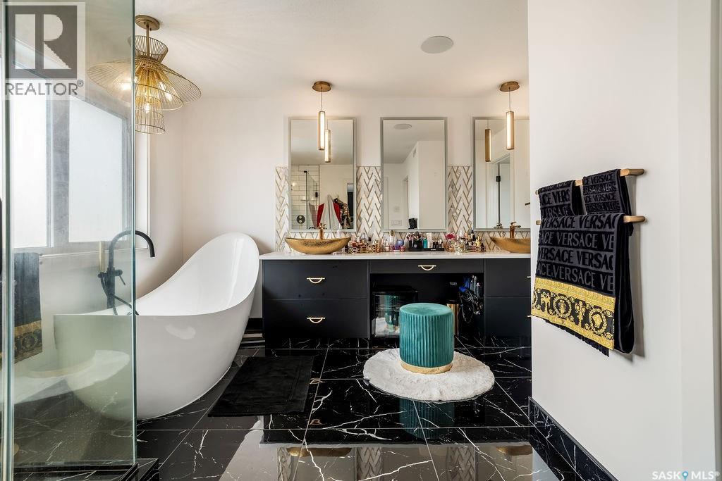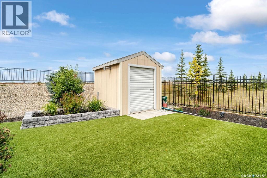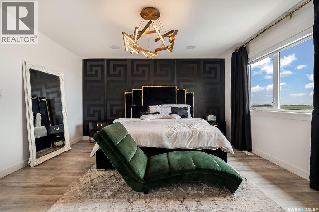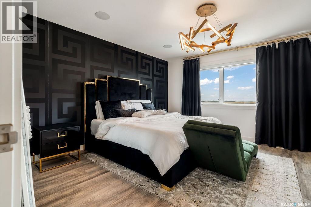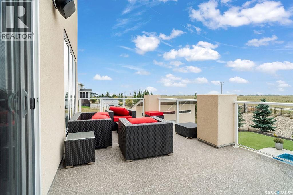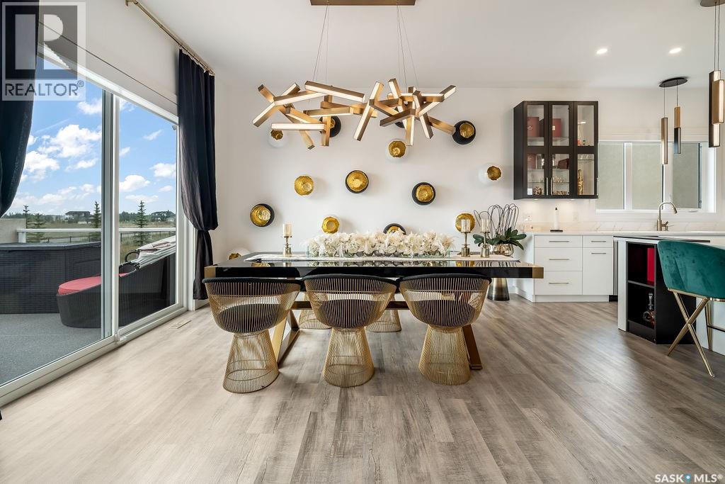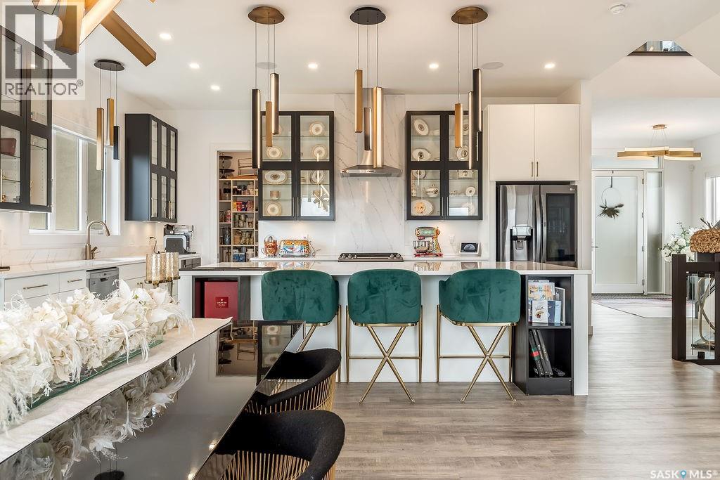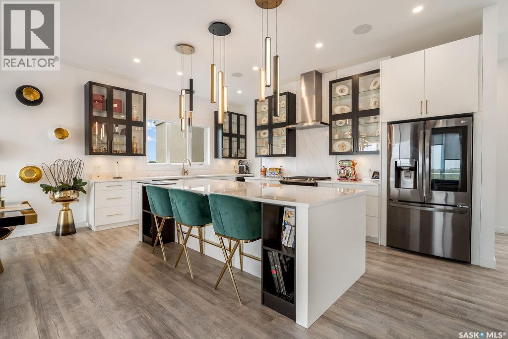Luxury Living in Spruce Creek Estates – Pool, Walkout, Triple Garage This exquisite two-storey 2018 Stars Lottery Home, is located in the prestigious community just minutes east of Regina. From the moment you arrive, the curb appeal captivates with modern architecture, cedar and stone accents, and beautifully manicured landscaping. Inside, the open-concept design strikes the perfect balance between luxury and comfort. The chef’s kitchen makes a bold statement with crisp white lower cabinets, sleek black glass uppers, quartz countertops, and a huge island, providing both function and style. The living room, anchored by a gas fireplace, flows seamlessly into the dining room, which opens onto the deck where you can enjoy breathtaking Saskatchewan sunsets. Upstairs, the home continues to impress with 3 bedrooms and a bonus room enhanced with a custom JMS mural wall. The Primary suite has been beautifully updated, it is spacious, has a walk in closet and 5 piece ensuite. With chic tiled floors, updated cabinetry, a custom-tiled shower, a stand-alone soaker tub, and double sinks, this retreat feels like a luxury spa within your own home. The 2nd floor also features a full bathroom and laundry room. The fully developed walkout basement is perfect for entertaining or family time, with a gas fireplace in the family room, wet bar, 4th bedroom, bathroom, and spacious sunroom making it an ideal extension of your living space. Stepping outside, you’ll find a private backyard oasis designed for both relaxation and fun. A raised deck and patio overlook lush green space, putting green, and in-ground pool. Everything you need to enjoy hot Saskatchewan summers. The triple attached garage has 12-foot ceilings, epoxy-coated floors, and is heated. With in-floor heating in the basement, newer flooring, cabinetry, paint, & lighting throughout, as well as a home audio system and a fully fenced and landscaped 1/2 lot, this home delivers executive style with everyday comfort. (id:44393)