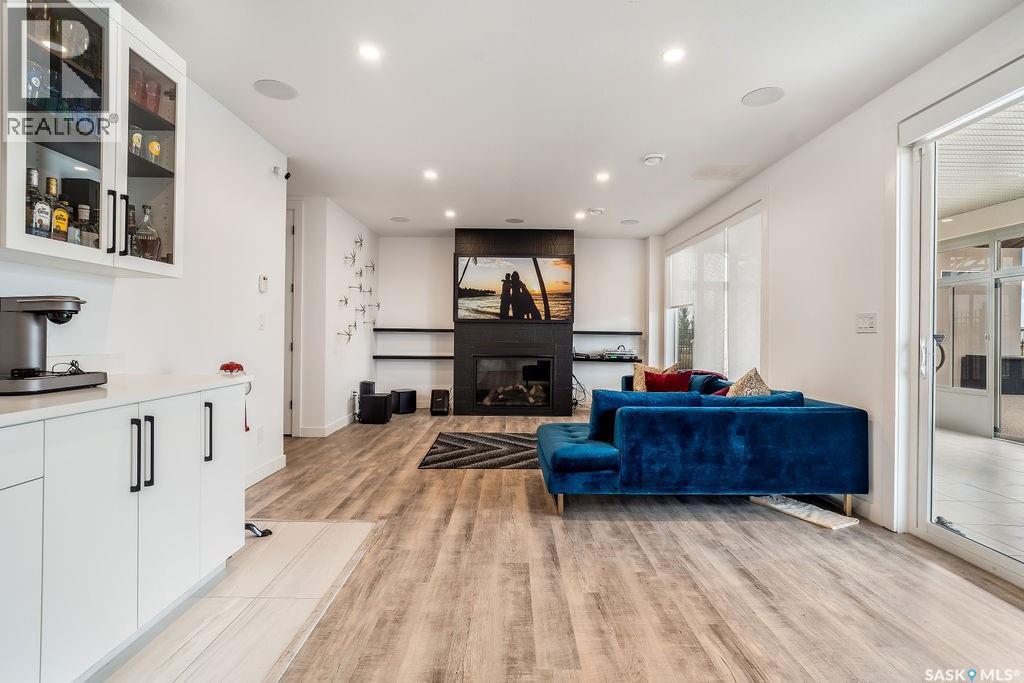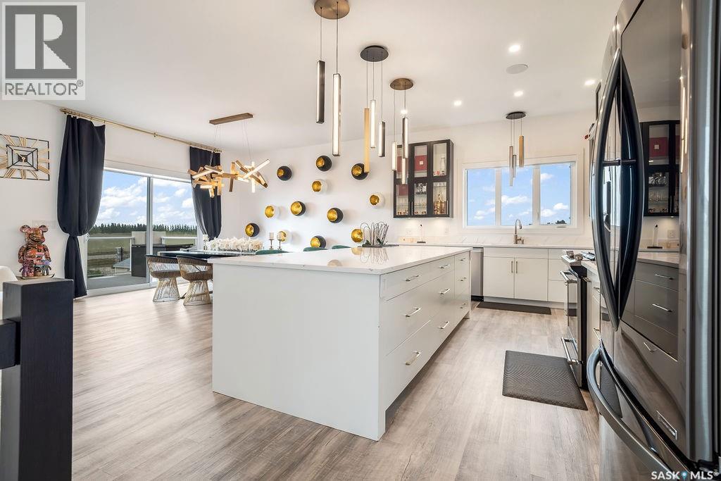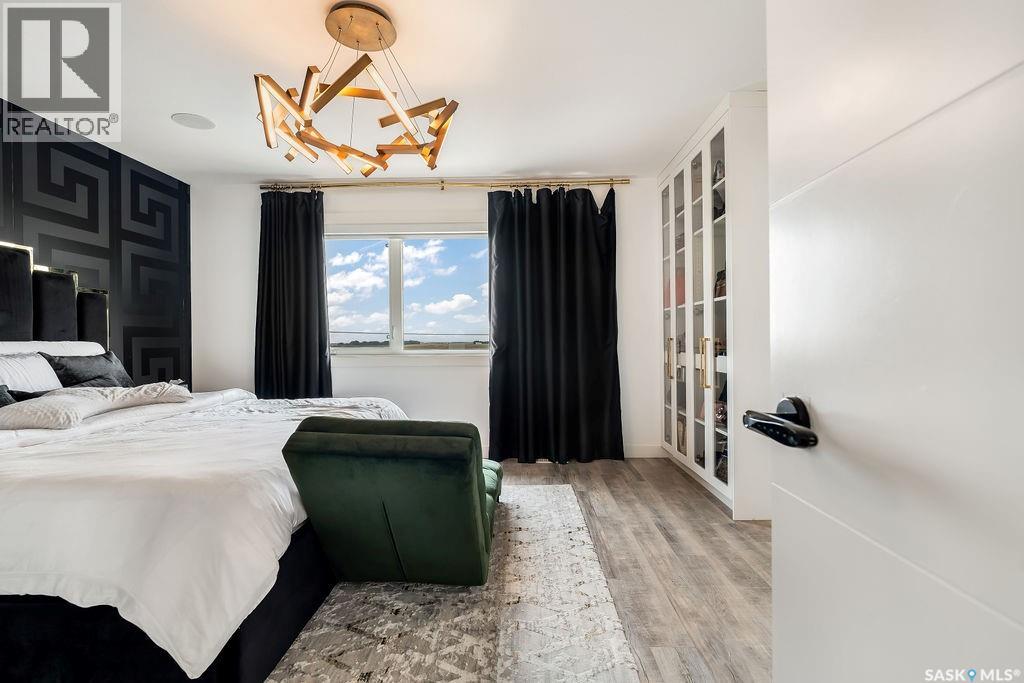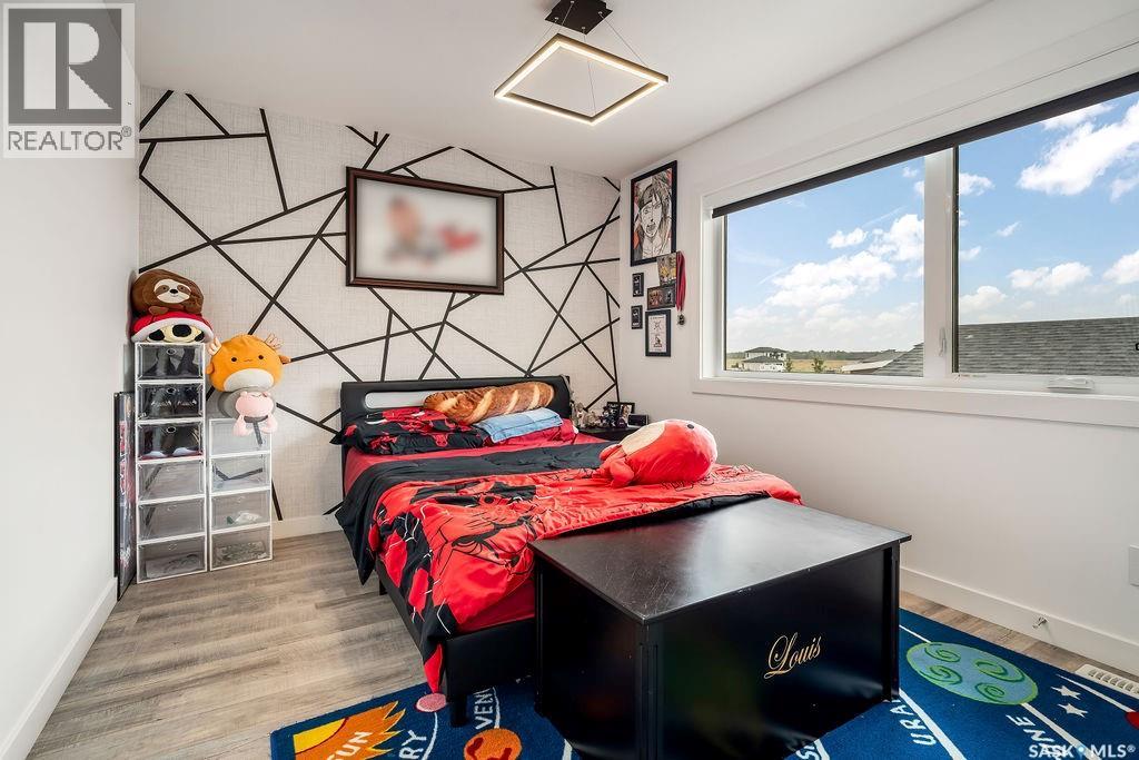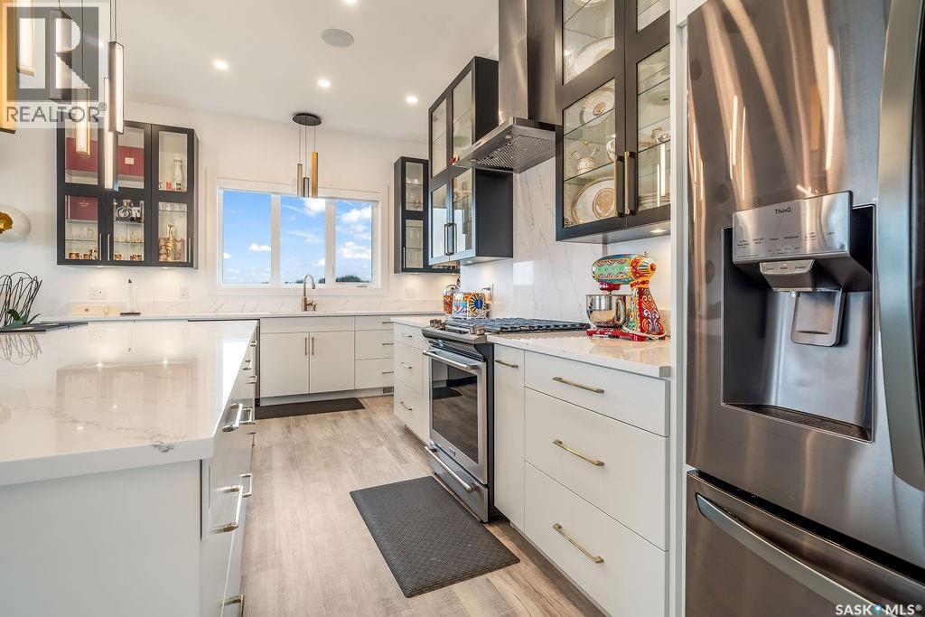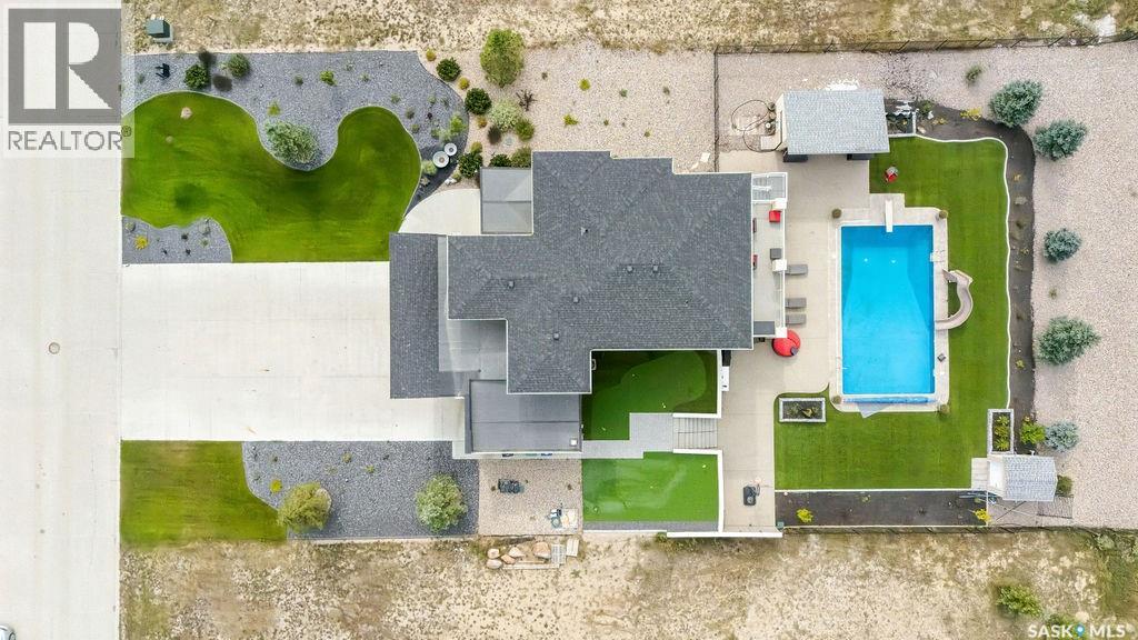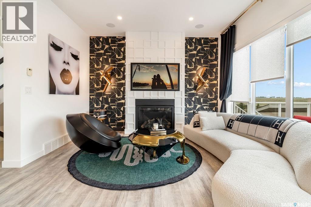 Luxury Living in Spruce Creek Estates – Pool, Walkout, Triple Garage This exquisite two-storey 2018 Stars Lottery Home, is located in the prestigious community just minutes east of Regina. From the moment you arrive, the curb appeal captivates with modern architecture, cedar and stone accents, and beautifully manicured landscaping. Inside, the open-concept design strikes the perfect balance between luxury and comfort. The chef’s kitchen makes a bold statement with crisp white lower cabinets, sleek black glass uppers, quartz countertops, and a huge island, providing both function and style. The living room, anchored by a gas fireplace, flows seamlessly into the dining room, which opens onto the deck where you can enjoy breathtaking Saskatchewan sunsets. Upstairs, the home continues to impress with 3 bedrooms and a bonus room enhanced with a custom JMS mural wall. The Primary suite has been beautifully updated, it is spacious, has a walk in closet and 5 piece ensuite. With chic tiled floors, updated cabinetry, a custom-tiled shower, a stand-alone soaker tub, and double sinks, this retreat feels like a luxury spa within your own home. The 2nd floor also features a full bathroom and laundry room. The fully developed walkout basement is perfect for entertaining or family time, with a gas fireplace in the family room, wet bar, 4th bedroom, bathroom, and spacious sunroom making it an ideal extension of your living space. Stepping outside, you’ll find a private backyard oasis designed for both relaxation and fun. A raised deck and patio overlook lush green space, putting green, and in-ground pool. Everything you need to enjoy hot Saskatchewan summers. The triple attached garage has 12-foot ceilings, epoxy-coated floors, and is heated. With in-floor heating in the basement, newer flooring, cabinetry, paint, & lighting throughout, as well as a home audio system and a fully fenced and landscaped 1/2 lot, this home delivers executive style with everyday comfort. (id:44393)