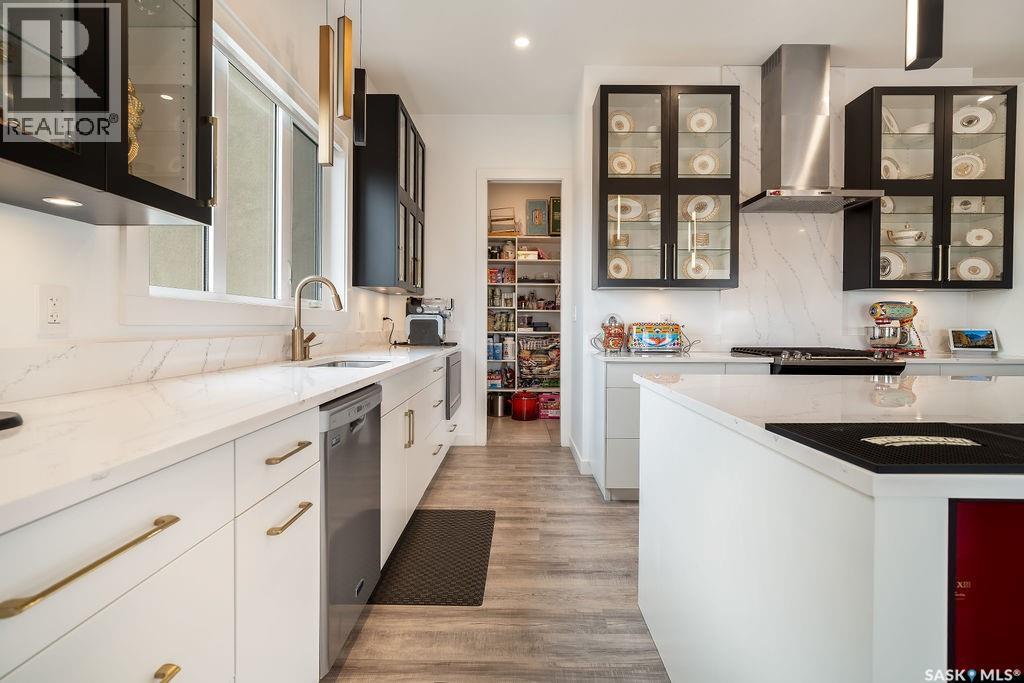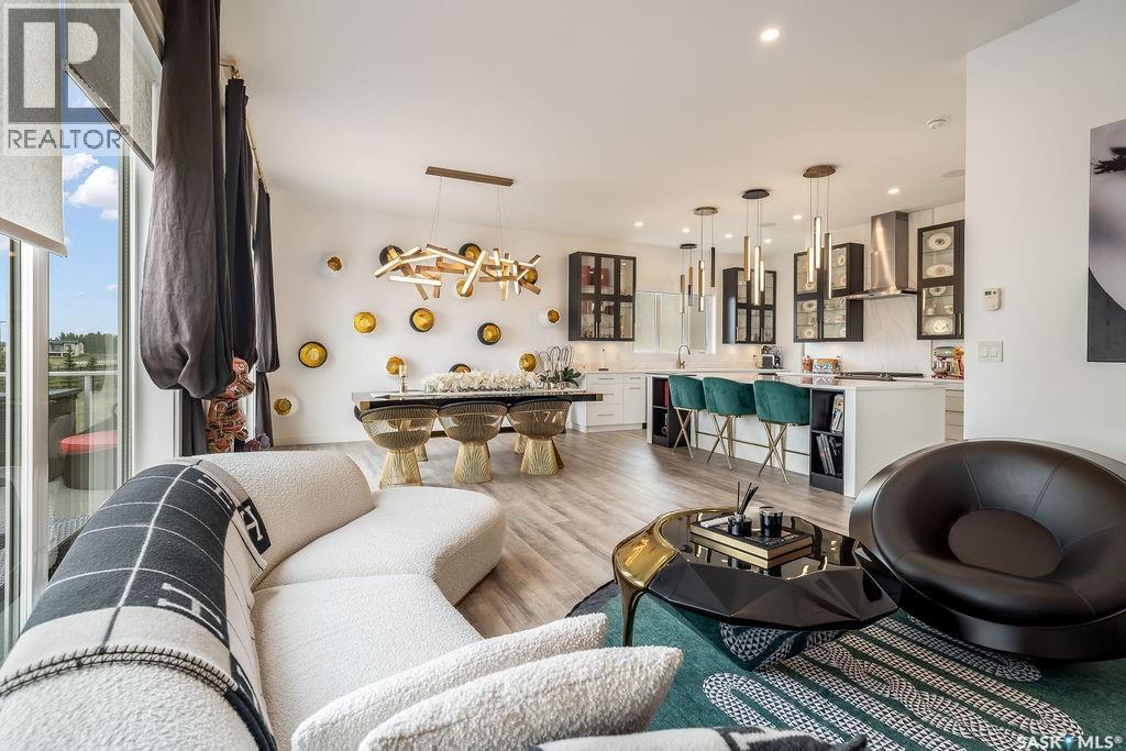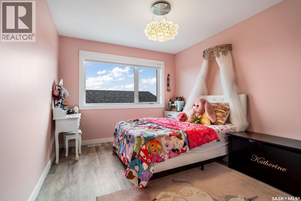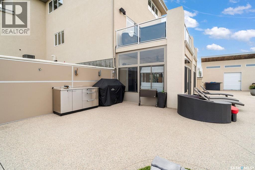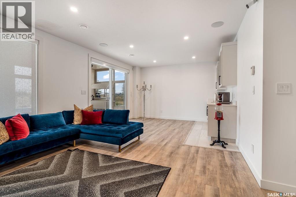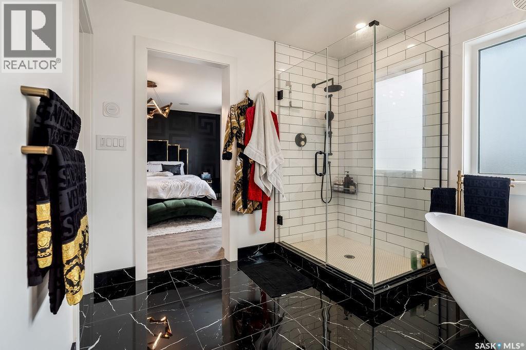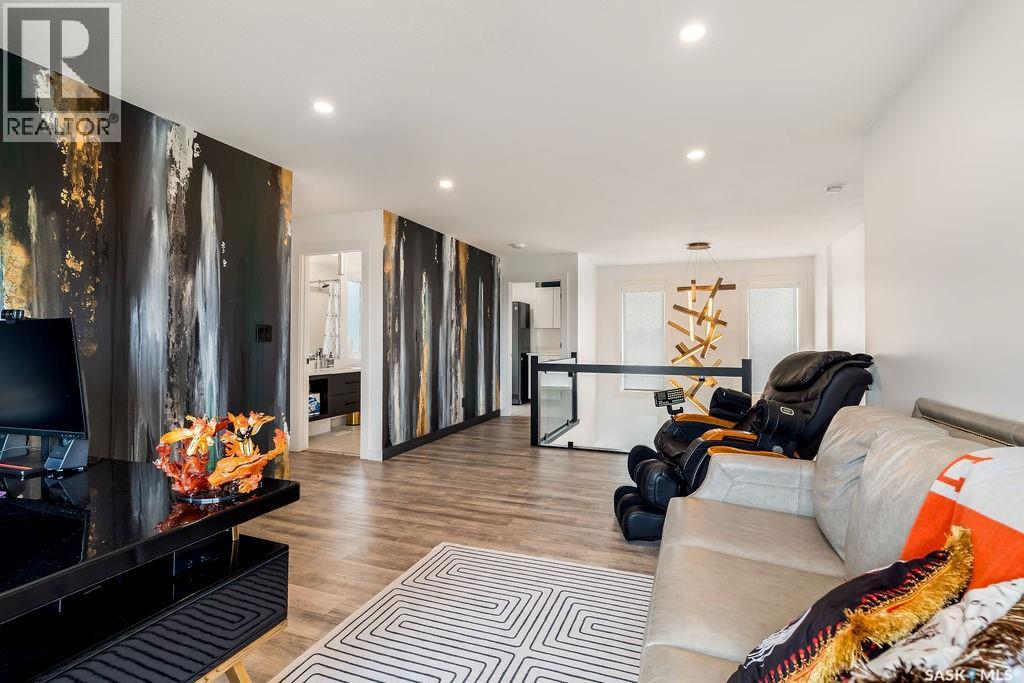 Luxury Living in Spruce Creek Estates – Pool, Walkout, Triple Garage This exquisite two-storey 2018 Stars Lottery Home, is located in the prestigious community just minutes east of Regina. From the moment you arrive, the curb appeal captivates with modern architecture, cedar and stone accents, and beautifully manicured landscaping. Inside, the open-concept design strikes the perfect balance between luxury and comfort. The chef’s kitchen makes a bold statement with crisp white lower cabinets, sleek black glass uppers, quartz countertops, and a huge island, providing both function and style. The living room, anchored by a gas fireplace, flows seamlessly into the dining room, which opens onto the deck where you can enjoy breathtaking Saskatchewan sunsets. Upstairs, the home continues to impress with 3 bedrooms and a bonus room enhanced with a custom JMS mural wall. The Primary suite has been beautifully updated, it is spacious, has a walk in closet and 5 piece ensuite. With chic tiled floors, updated cabinetry, a custom-tiled shower, a stand-alone soaker tub, and double sinks, this retreat feels like a luxury spa within your own home. The 2nd floor also features a full bathroom and laundry room. The fully developed walkout basement is perfect for entertaining or family time, with a gas fireplace in the family room, wet bar, 4th bedroom, bathroom, and spacious sunroom making it an ideal extension of your living space. Stepping outside, you’ll find a private backyard oasis designed for both relaxation and fun. A raised deck and patio overlook lush green space, putting green, and in-ground pool. Everything you need to enjoy hot Saskatchewan summers. The triple attached garage has 12-foot ceilings, epoxy-coated floors, and is heated. With in-floor heating in the basement, newer flooring, cabinetry, paint, & lighting throughout, as well as a home audio system and a fully fenced and landscaped 1/2 lot, this home delivers executive style with everyday comfort. (id:44393)