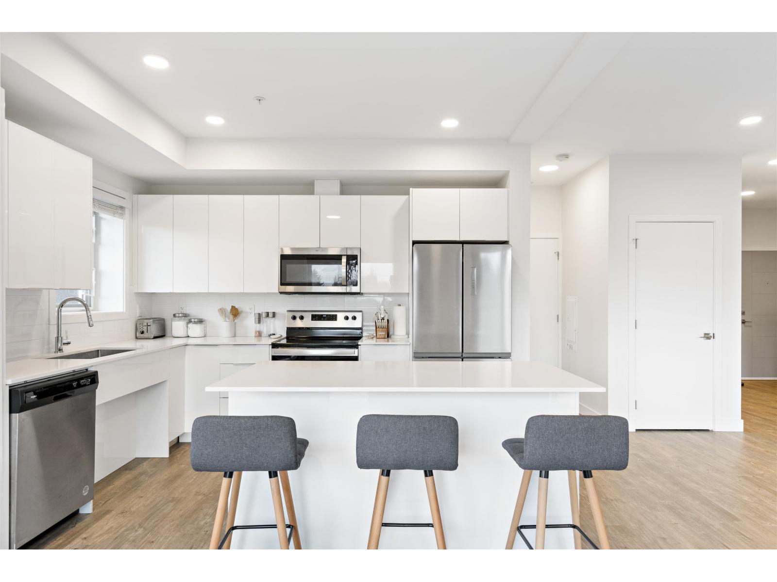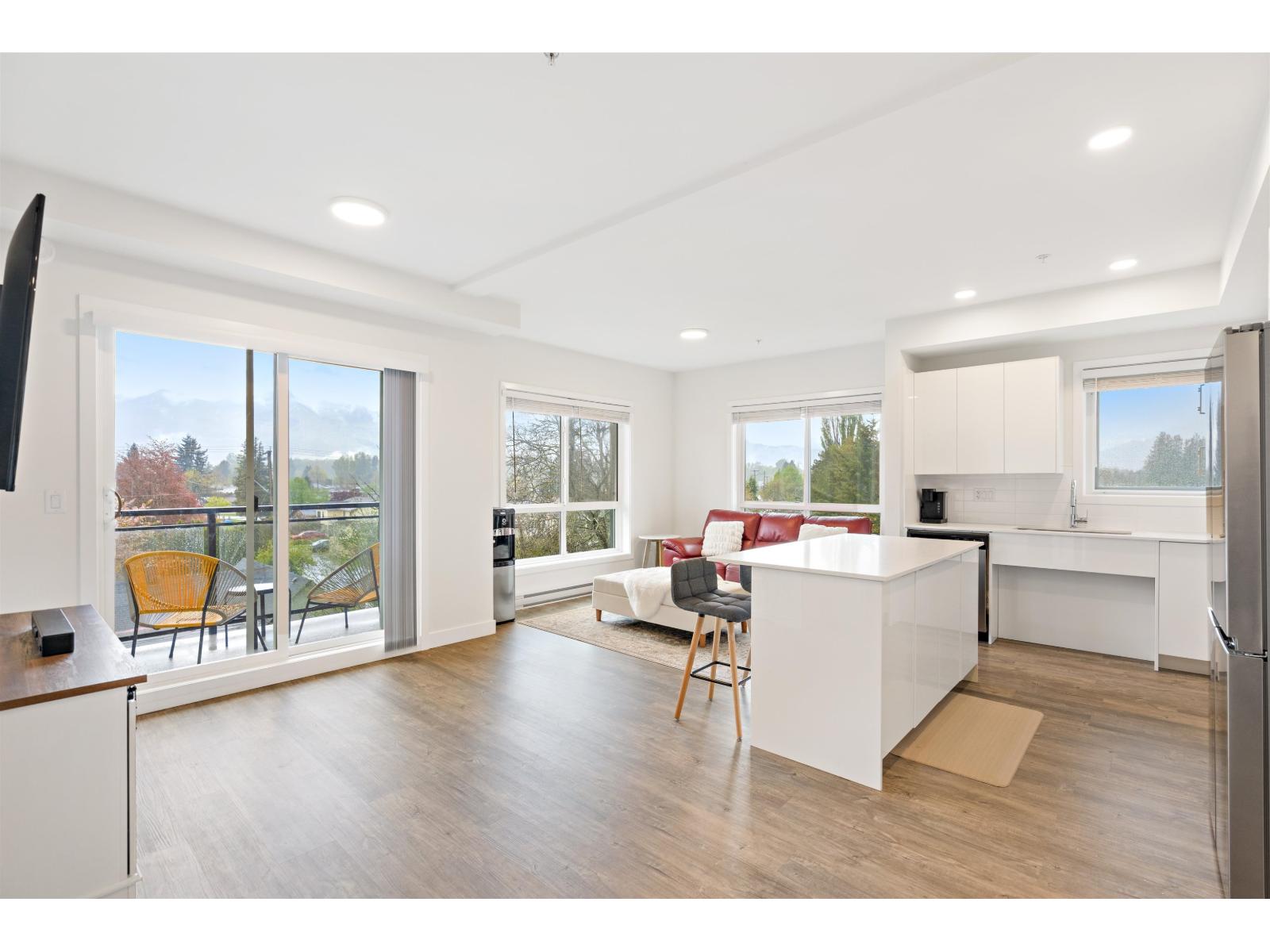 Welcome to "The Robson'' one of the most desirable floor plans in the building. This bright corner 2-bed, 2-bath home offers an ideal layout with two spacious parking stalls and a large storage locker, perfectly suited for modern living. Located in Chilliwack's historic district, just minutes from the revitalized Downtown Chilliwack, this home combines charm with convenience. The open-concept living space is flooded with natural light and showcases contemporary finishes, including a gourmet kitchen with quartz countertops and stainless steel appliances, perfect for entertaining or everyday living. The primary bedroom features a walk-through closet and a private ensuite, creating a true retreat. Enjoy the comfort of a well-designed layout, excellent natural light, and a prime corner home. (id:44393)