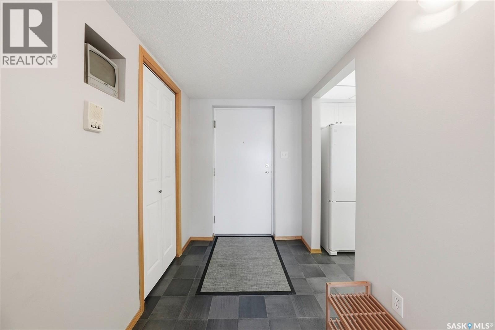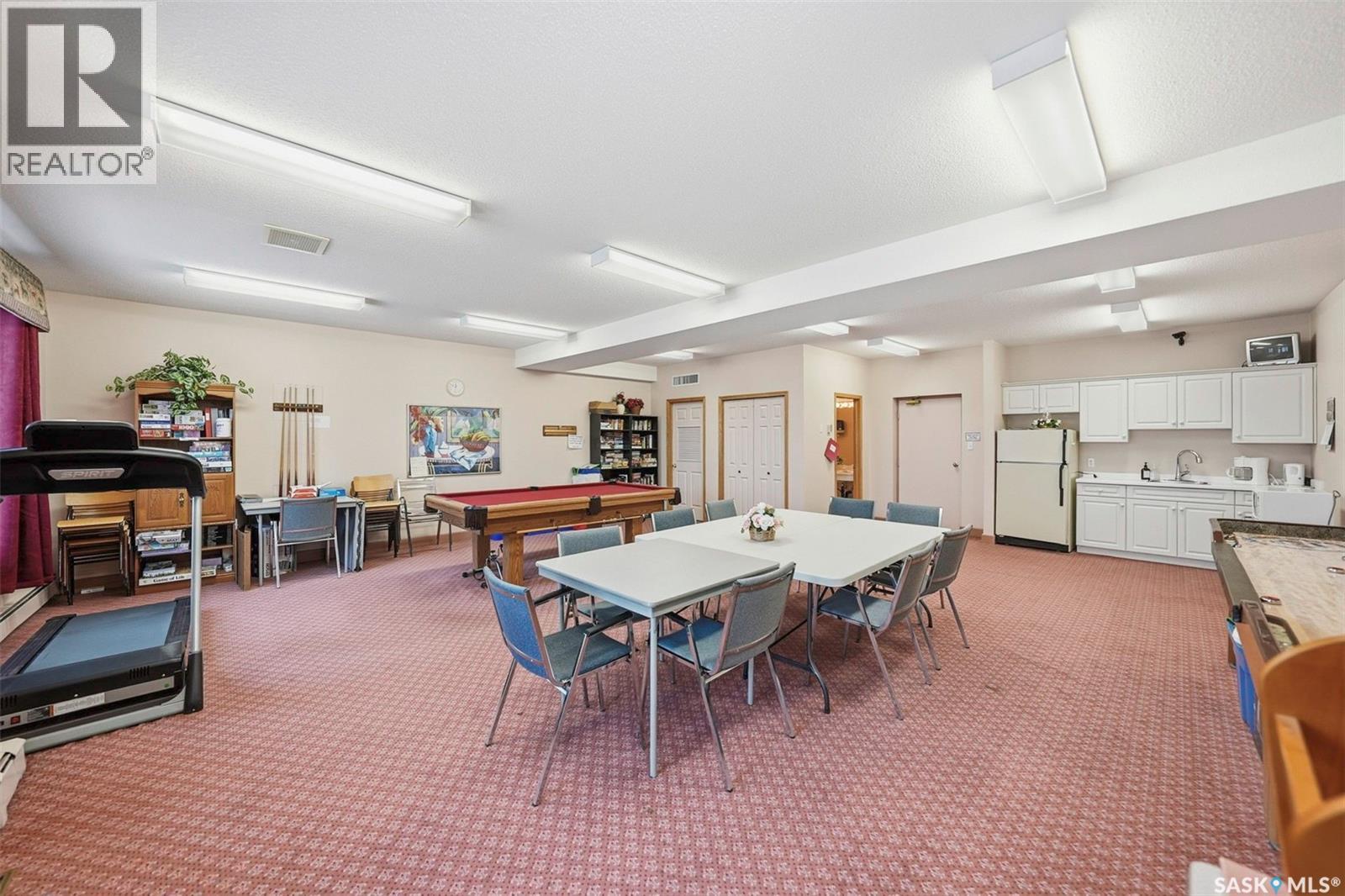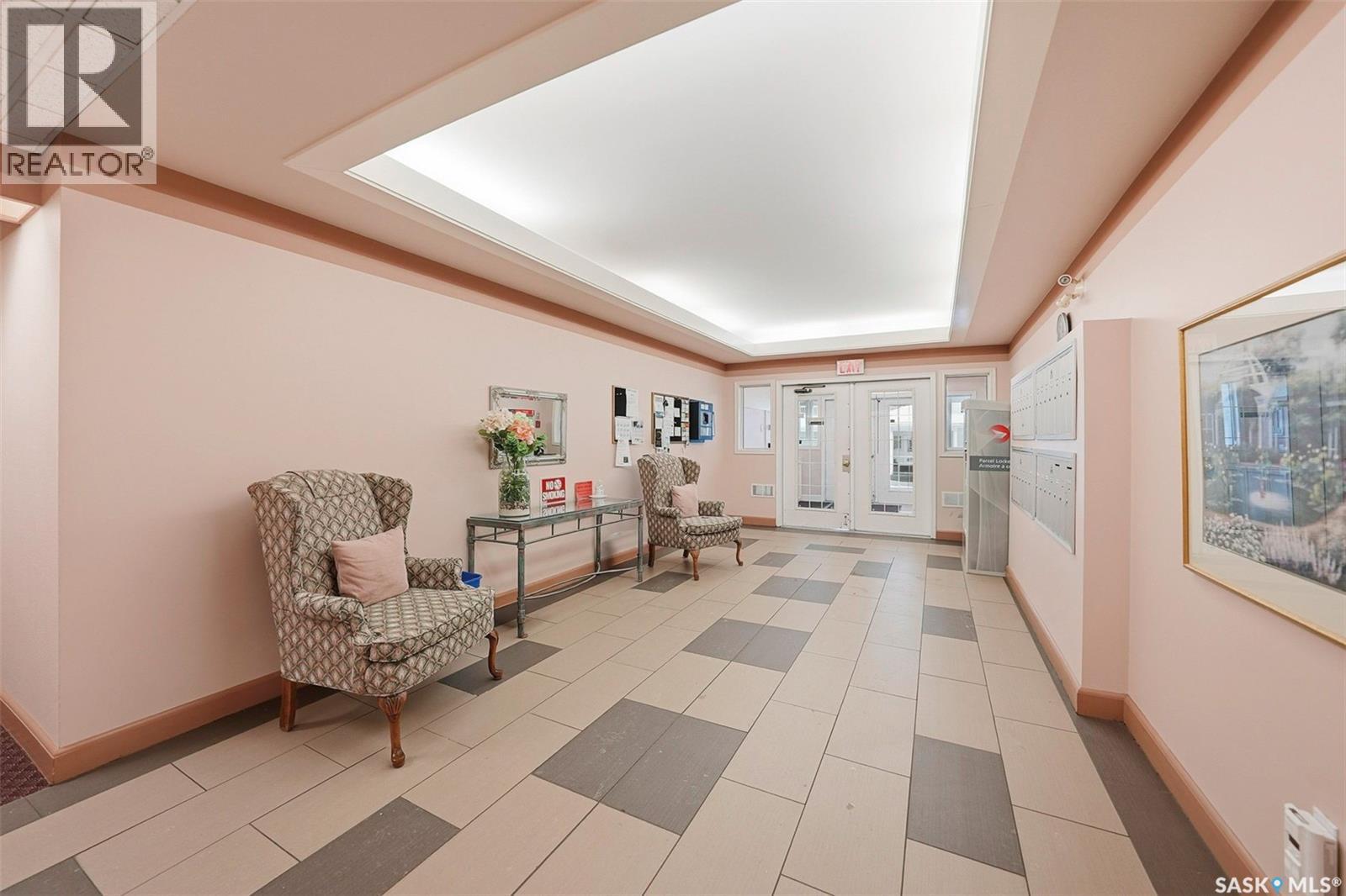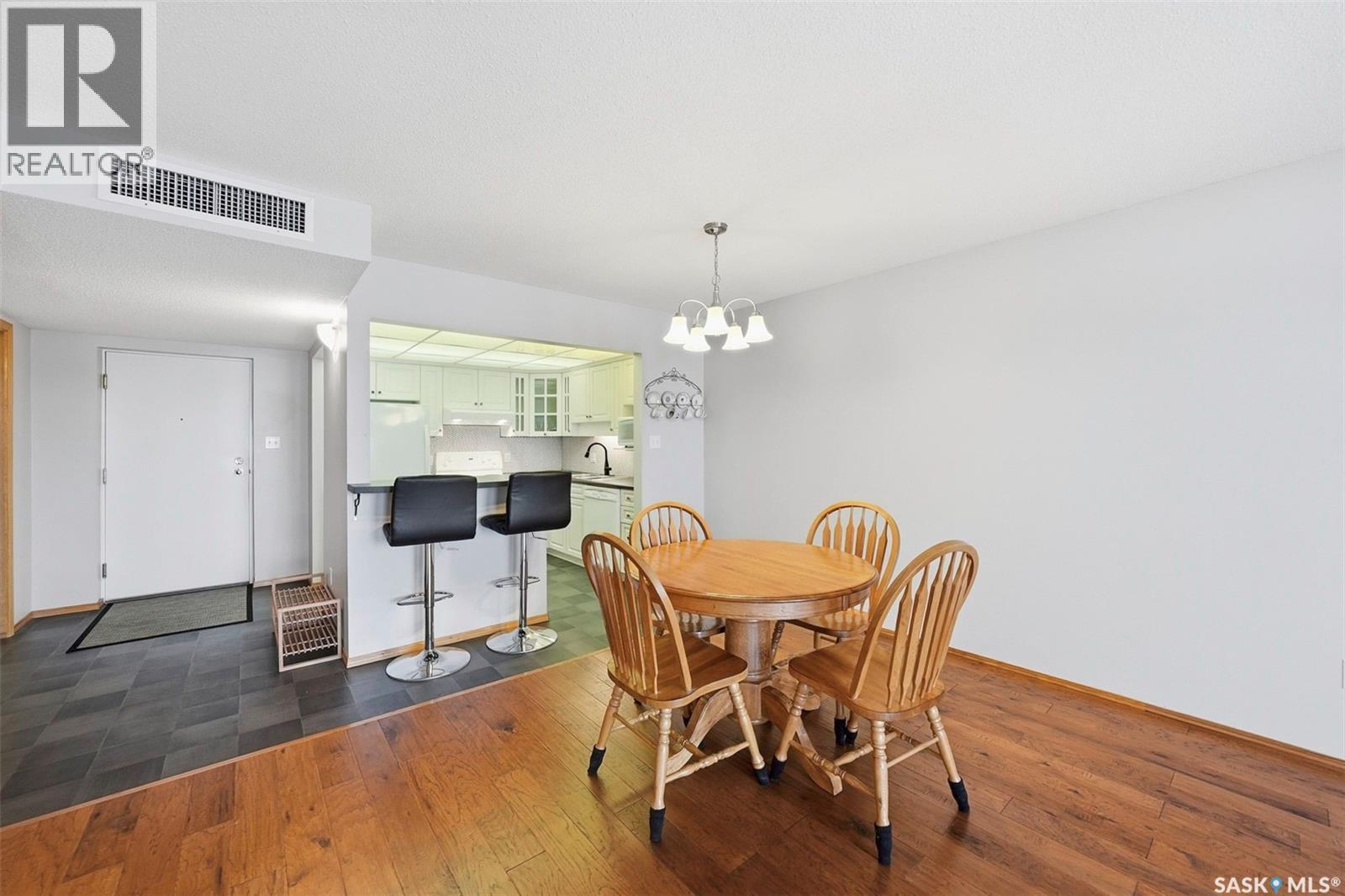 $416.70 MonthlyThis top-floor, south-facing condo in The Mackenzie is one of Prince Albert’s best-kept secrets. Quietly tucked away in South Hill yet within walking distance of everyday amenities, this location offers both privacy and convenience. The 950 sq ft unit features two bedrooms and two bathrooms, including a flexible second bedroom with French doors that also works beautifully as a home office or den. The primary bedroom includes a 2-piece ensuite, while the open-concept living space is designed for easy everyday living and entertaining. The kitchen is bright and inviting, finished in white cabinetry, a bar-height counter for two stools, and a distinctive light-panel ceiling that provides even, natural-style light. South-facing windows flood the living and dining areas with sunshine - a space where plants will absolutely thrive! Additional highlights include in-suite laundry with newer appliances, engineered hardwood flooring, stylish black linoleum in the kitchen and main bathroom, central air conditioning, and tasteful modern touches such as a penny tile backsplash and black hardware accents. The unit comes with one open parking stall and storage in a common storage room on the main level. The building offers a well-equipped amenities room with a pool table, library, treadmill, tables and chairs, and a kitchenette - ideal for gatherings. An elevator also adds everyday convenience. With a quiet atmosphere and a tucked-away South Hill location, this condo is a fantastic option for professionals, healthcare workers, or anyone seeking low-maintenance living in a well-managed building - with immediate or fast possession available. Book your showing today, you'll be glad you did! (id:44393)