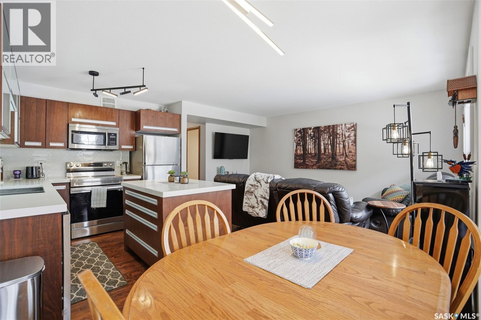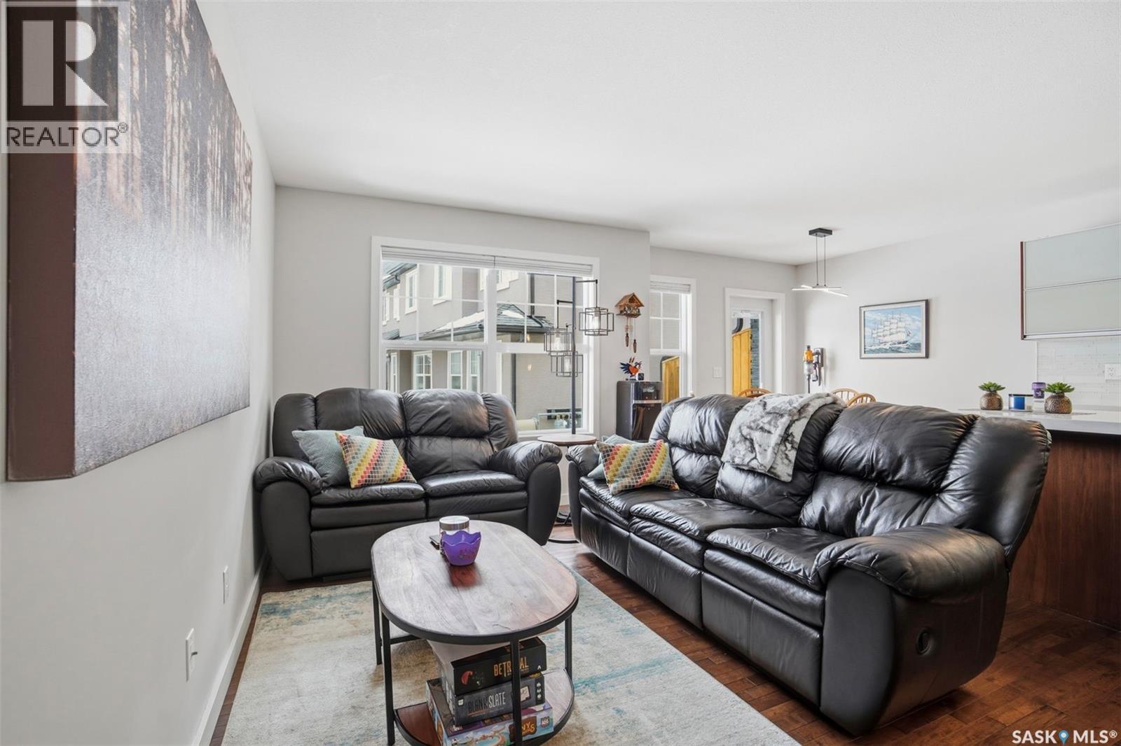 $381.07 MonthlyOne of the best units in the complex! This unit offers an outstanding location facing the university farmland with stunning views of canola fields & northern lights from the primary suite. This great condo features 3 bedrooms, 3 baths, open concept kitchen, living, and dining space with hardwood flooring. The kitchen is spacious, including modern & trendy New York style cabinetry, stainless steel railings, soft close hardware, quartz counters with an under mount sink and white glass back splash, walnut doors/trim, Travertine tile and quality carpet. The 2nd floor features 3 spacious bedrooms and 4 pc bath. Primary suite has a cheater door to the ensuite bath and full walk in closet. This home also comes with a professionally developed basement with a spacious family room with a Murphy bed for added sleeping space for guests, 3pc bath/laundry combo & storage. Singe attached 12 x19 garage with opener included and stone/stucco exterior. Other notables are central A/C, Stainless steel appliances, front load washer & dryer and new blind pkg. This is a very pristine unit in a prime location offering country living feel with urban amenities. (id:44393)
