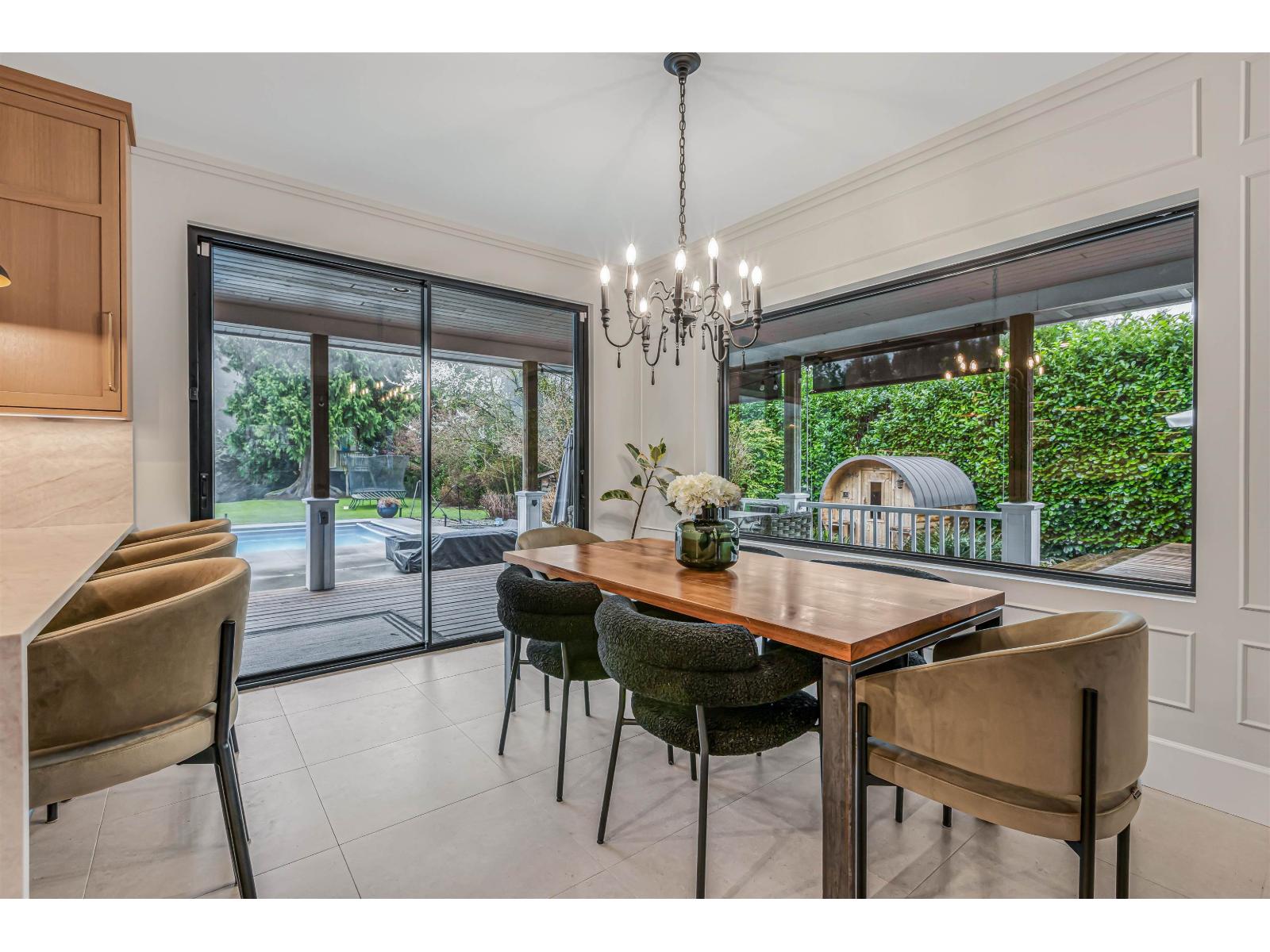 Set on a rare south-facing 0.9-acre lot in sought-after West Mission, this home offers a private, resort-style retreat just steps from the golf course. The south facing, sun-filled backyard features a pool with electric cover and new pump, swim spa, sauna, fire pit, cedar deck, and custom outdoor blinds. Extensively renovated, the home offers 5 bedrooms and 4 bathrooms, a custom white oak kitchen with Taj Mahal quartz and new appliances, maple stairs, and refinished floors. The finished basement includes a theatre room. Upgrades include furnace, A/C, hot water tank, EV charger, and a roof approx. 8 years old, with easy access to Hwy 7. (id:44393)
