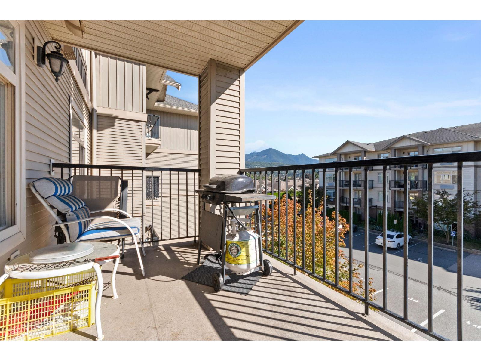 OPEN Sat 8th 11-2pm. & SUN 9th. Call for time. Immaculate. BEST VALUE IN SARDIS!! 2 Bedroom, 2 full bathrooms condo. Great Sardis Location! Terrific floorplan! A bedroom & 'full' bathroom on"each side" of the large living room gives privacy/practicality! Mountain view from south facing sundeck! "Quiet" location less than "1" block walk toTim's, Pizza Hut, BMO & Shoppers Drugs in Vedder Pointe Shopping Center!! Great kitchen. Ample countertops. Breakfast Bar opens to the livingroom. Walk in storage, laundry & Pantry! His & hers closets to '2 seat' shower ensuite! Only steps to Transit. Schools & recreation nearby! Dog & cat or 2 cats OK. Wheelchair friendly; Level access, open floorplan! U/G parking. 2 elevators. Visitor parking at front entrance. (id:44393)