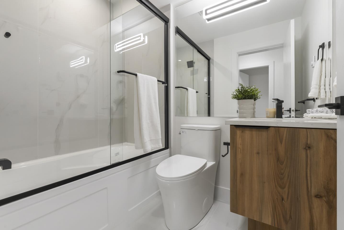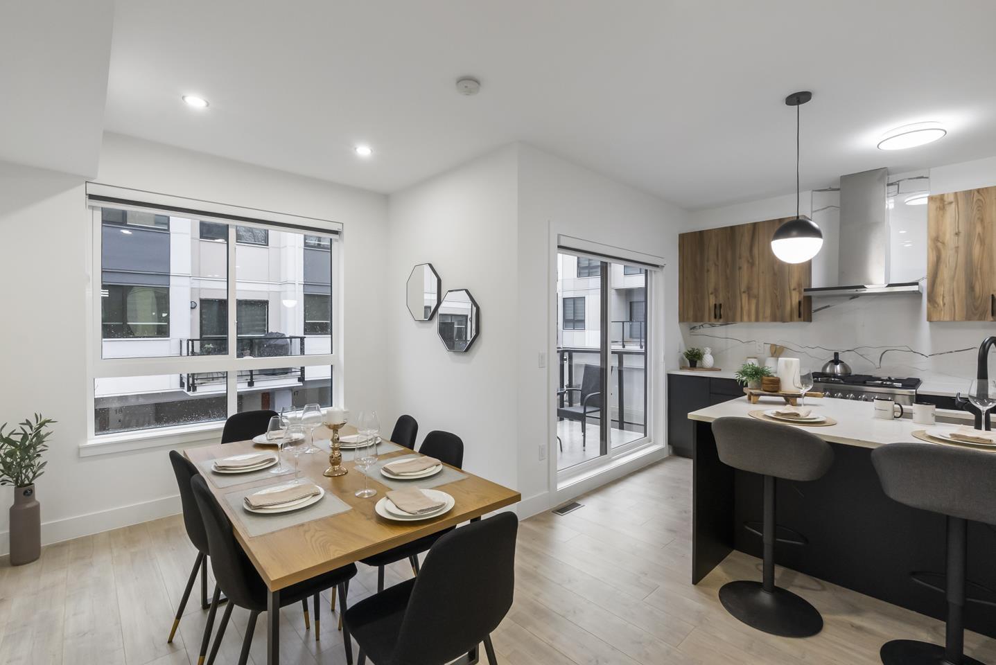 $369.24 MonthlyBrand-new, ultra-modern corner unit 3-bedroom + Den, 2.5-bath townhome backing onto a protected lush greenbelt. The bright, airy main level features 9'ceilings, Fisher & Paykel appliances, motorized blinds, and a kitchen made for cooking enthusiasts with a gas cooktop, quartz countertops, and ample storage in custom cabinetry. The Park Landmark features a playground surrounded by nature and private amenity building perfect for events. This unit features a spacious double garage with rough in EV. Just a short drive to Hyland Elementary and Sullivan Heights Secondary, and minutes to Newton Town Centre, shops, parks, transit, and major amenities. (id:44393)