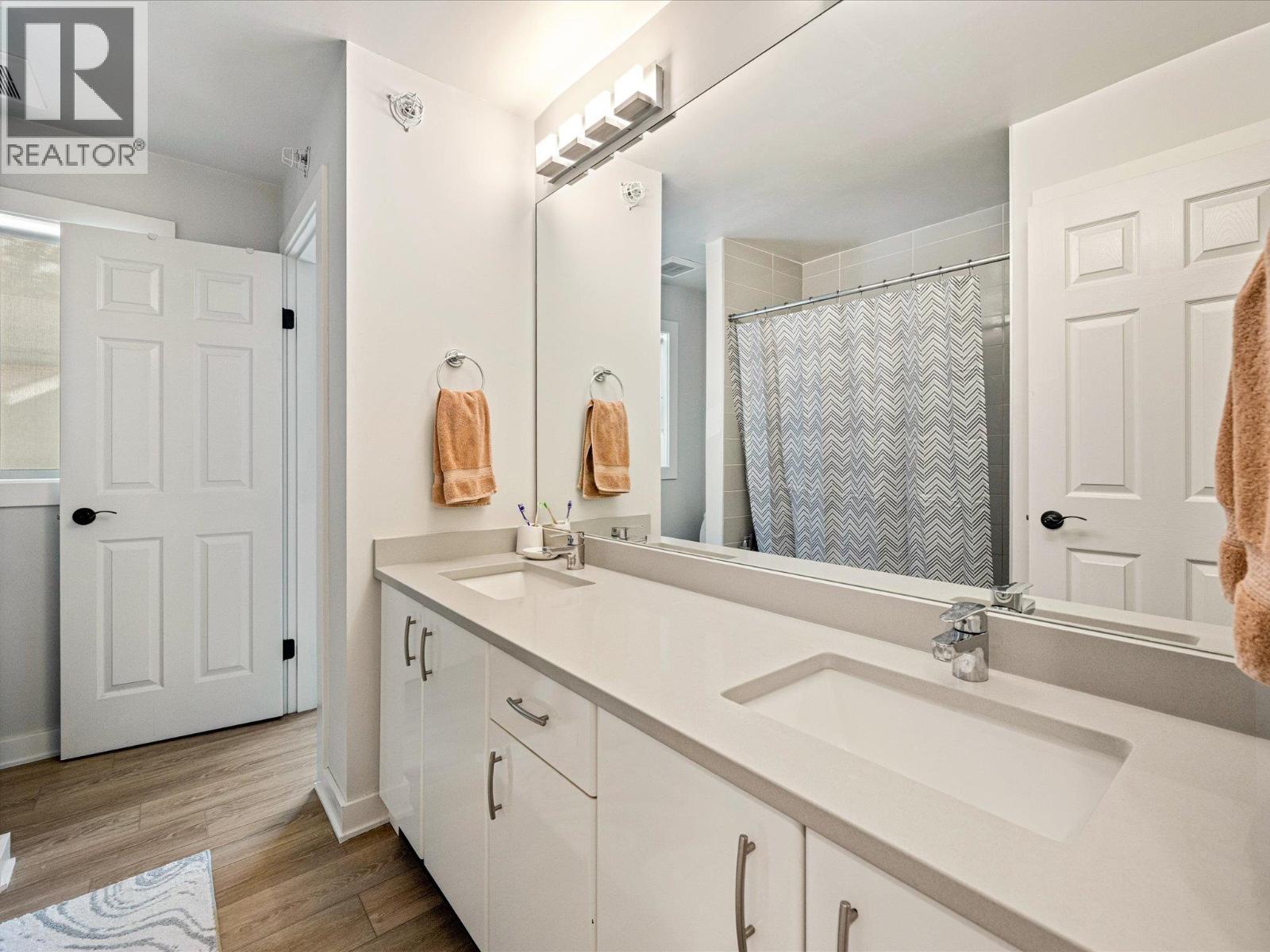 $359 MonthlyBright and spacious 2-bed & 1.5 bath townhouse in Creekside Village has been thoughtfully updated with modern, functional finishes & new flooring throughout. Downstairs features a 2-car garage with a new door-as well as a welcoming entryway with in-floor heating. Upstairs, the main living area offers an open, airy layout with large windows and a private deck that overlooks a serene forested backdrop. Stone countertops, SS appliances, and sleek, timeless cabinetry in the kitchen. On the top floor, you´ll find two comfortable bedrooms and a beautifully renovated main bathroom, complete with custom tile work and a double vanity. Additional upgrades include new plumbing (2010), updated heat registers, recessed lighting, fresh paint throughout, and modernized outlets and switches. (id:44393)