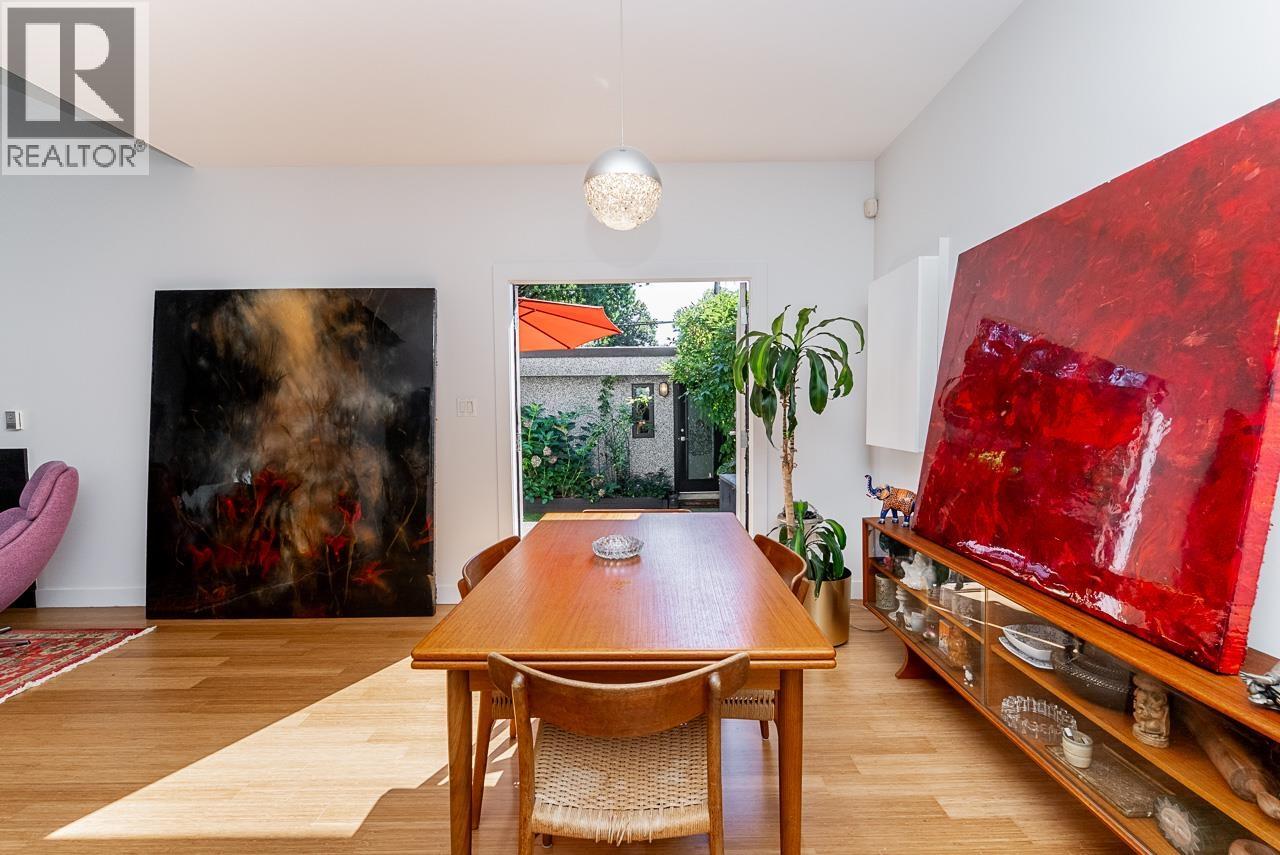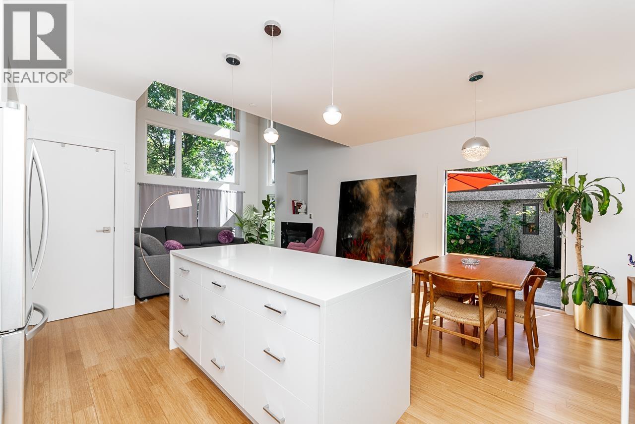 A rare architectural sanctuary in the heart of the city. This is not your average duplex: it´s a light-filled haven with a sunny private backyard. Soaring 18´ ceilings and a full wall of windows flood the space with natural light. Step through a proper foyer (with real closets!) into warmth, calm, and quiet. Thoughtfully upgraded throughout: chef´s kitchen, radiant bamboo floors, on-demand hot water, and 2024´s Benjamin Moore "Colour of the Year" paint. The garage has been transformed into a luxury far-infrared Yoga studio:versatile for work or wellness.Your fully fenced garden oasis includes mature landscaping and outdoor hot water for dog washing. Very livable, timeless design with endless custom touches. Tucked into a vibrant neighbourhood, yet incredibly peaceful. Smart layout, beautiful flow. Move-in ready. Must see to appreciate. Open House: 12-2pm Sunday! (id:44393)