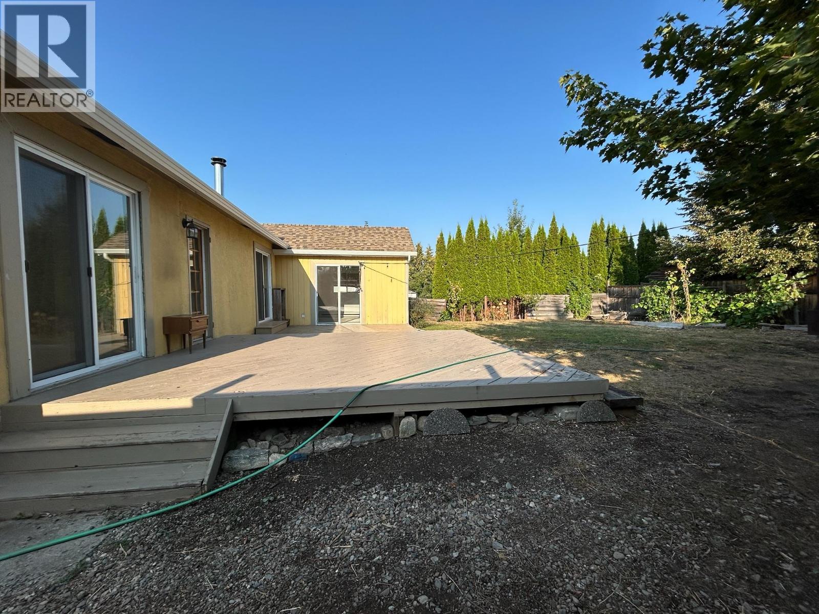 Charming rancher in highly sought-after East Kelowna. Private setting with a large fenced backyard, with garden space and a rustic detached workshop or storage shed. Large deck encompassing the three sliding exit doors, allowing entry from the kitchen/dining area, the living room, and the master bedroom! Original hardwood flooring in the upper living areas. Huge master, 22 feet long with vaulted ceilings and a slider exit door to the outside deck. WET certified wood stove for cozy winter heating. Freshly painted! Parking for 3 vehicles and room for an RV. 6 foot cedar fenced backyard. Great views out to the Okanagan Mountain range. Elementary school catchment is the cherished South East Kelowna Elementary school with multiple playgrounds and playfields only a couple mins away. Great family neighbourhood. Close to Harvest and Gallaghers Golf and scenic hiking. Vacant, quick possession and easy to view! (id:44393)