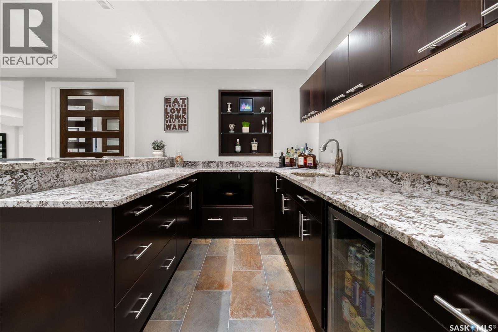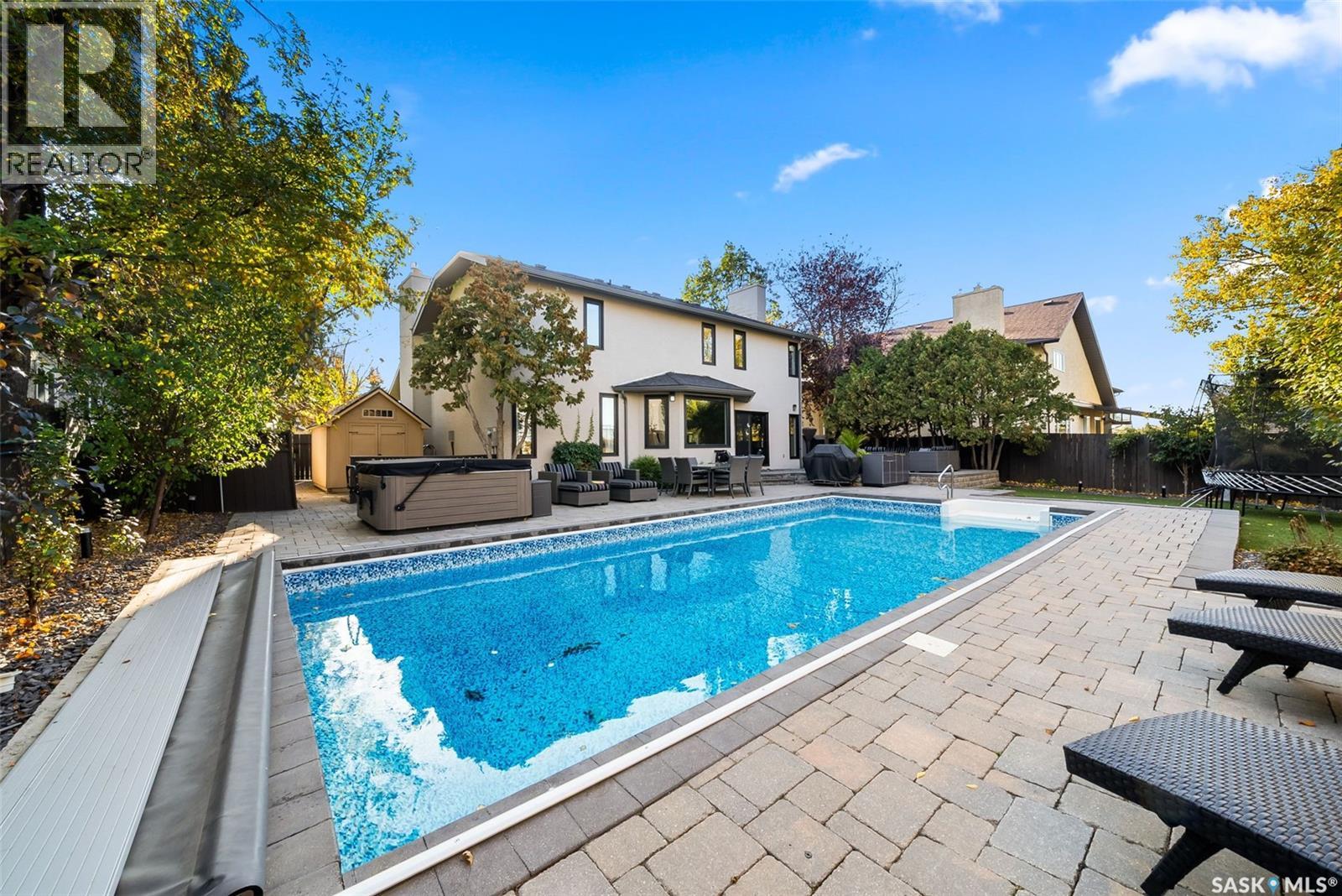 Tucked away on a quiet street in desirable University Park East, this elegantly redesigned 2-storey home offers a rare blend of luxury, comfort, & connection to nature, backing green space & scenic walking paths. The formal living room welcomes you with vaulted ceilings, a gas fireplace with a custom hearth & large windows that fill the space with natural light. It flows seamlessly into the formal dining area, an inviting setting for gatherings. The completely upgraded kitchen is a true showpiece, featuring quartz countertops, Electrolux appliances, tile flooring, and a one-of-a-kind Zapatero wood plank live-edge overhang. Just off the kitchen is a comfortable family room, perfect for relaxing evenings, anchored by a gas fireplace with a marble surround. A custom half bath & mudroom complete the main level. Upstairs are 3 spacious bedrooms and 2 full bathrooms. The primary suite is a luxurious retreat, with a spa-inspired 5-piece ensuite featuring dual sinks, a custom tile shower, and a built-in closet system. Laundry has been thoughtfully relocated upstairs for convenience, & the secondary bedrooms include custom closets. The fully developed basement, built on a structural slab with in-floor heat, is made for entertaining — with an impressive wet bar, a rec room with a gas fireplace & a custom entertainment unit. There’s also a 4th bedroom & a 3-piece bath with a large tiled shower. The heated garage is a dream — complete with luxury vinyl tile flooring, custom shelving, insulated 2x6 walls, a new smart garage door, & even a floor pit for the hobbyist or car enthusiast. Step outside to your private backyard oasis, a “secret garden” designed for relaxation. It features a 16x36 ft in-ground pool with upgraded heater, liner, locking safety cover, winter cover, and color-changing pool light. The yard also includes a paving stone patio, wired lighting, mature trees, and lush landscaping for complete tranquility. No detail has been overlooked in this stunning renovation. (id:44393)