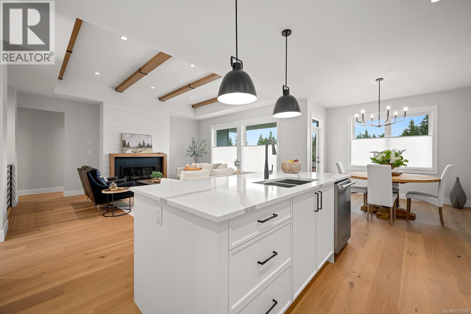 This 2,600 sqft home showcases quality Benco-built craftsmanship and is located in the sought-after community of the Ridge, offering exceptional space, flexibility, and lifestyle. upstairs features 2 bedrooms and 2 bathrooms, a bright kitchen with quartz countertops and a pantry, an open-concept living area, and upstairs laundry - perfect for modern family living. The lover level offers 2 additional bedrooms and 2 bathrooms, plus bonus space that can be used as a media room, home office, gym, or playroom. It's also pre-designed to accommodate a 1-bedroom suite with a private entrance, offering fantastic potential for extended family or rental income. Additional highlights include a large garage, a high-efficiency heat pump, and heated tile floors in the bathrooms for year-round comfort. Located close to parks, trails, and all the amenities of the Comox Valley, this home is an ideal choice for families or anyone seeking a flexible, beautifully crafted space. Don't miss your chance to own a home that offers room to frow, adapt, and elevated your lifestyle! (id:44393)