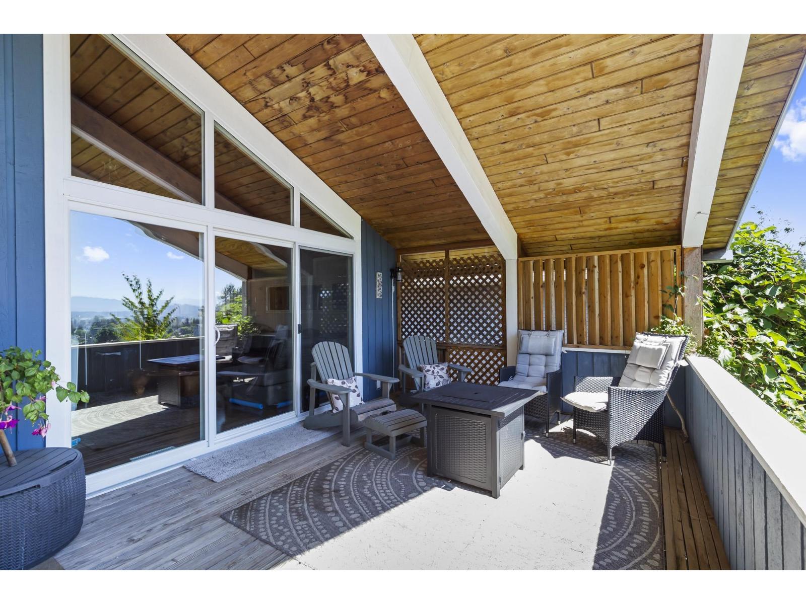 "Discover this truly UNIQUE AND SPACIOUS HOME with over 4000 sqft of living space! You'll be captivated by the breathtaking views of the Valley & Mount Baker. Inside, the main floor boasts gorgeous vaulted exposed-beam wood ceilings and an open-concept layout. The chef's-style kitchen & living area feature oversized sliders that lead to a south-facing covered deck, perfect for entertaining. The upper level offers a separate living area, a 3-piece bath, and two spacious bedrooms. A massive bonus is the fully self-contained, 3-bedroom suite on the lower level, ideal for multi-generational living or a fantastic mortgage helper. This suite includes its own semi-private patio area. Additional features include a NEW tankless hot water system, NEW WINDOWS, beautiful gardens, and an OVERSIZED GARAGE & driveway with room for an RV. Located in a prime spot, you can easily walk to Centennial Park and the Leisure Centre. This home is a must-see! Call your Realtor today! (id:44393)