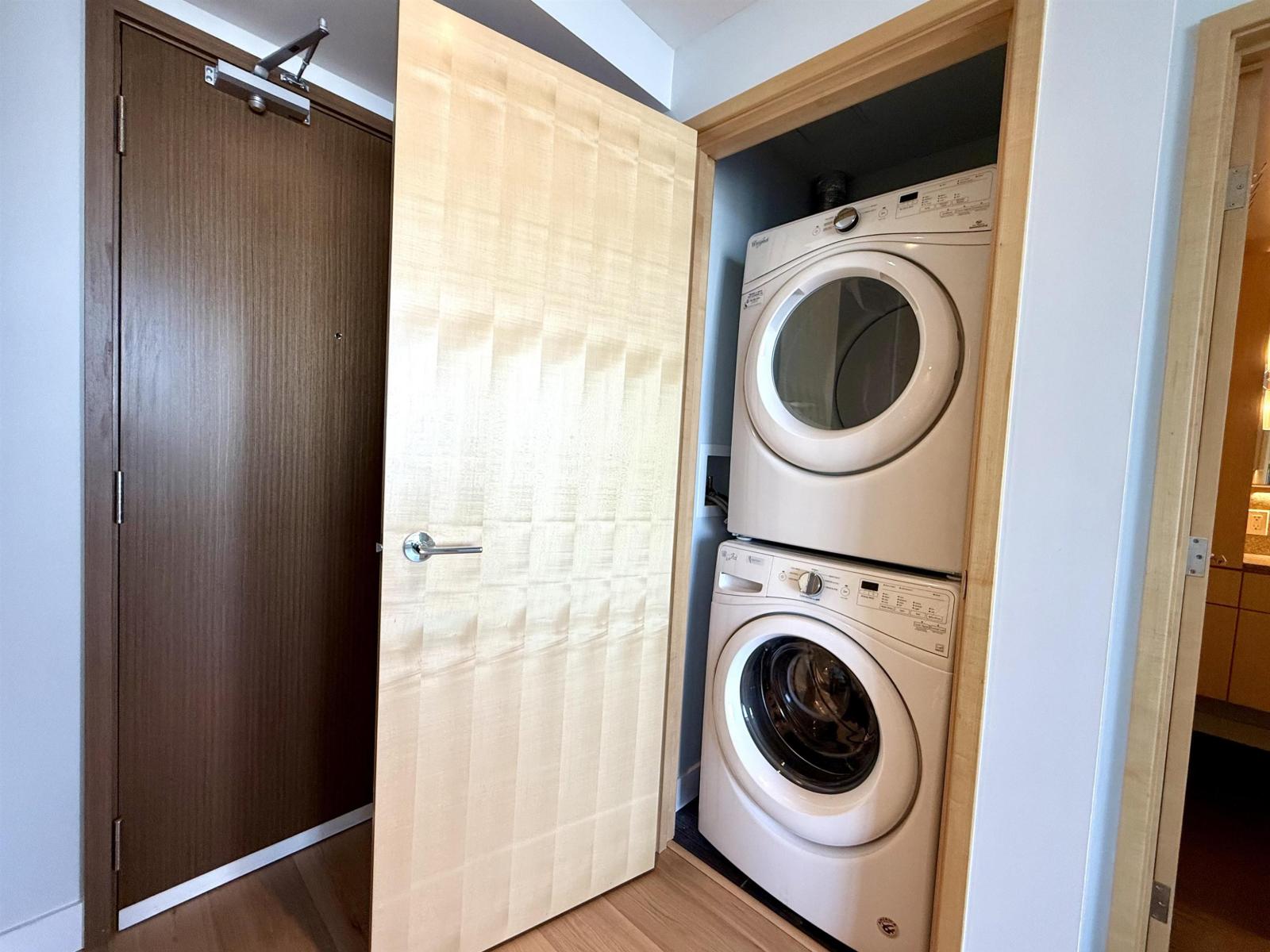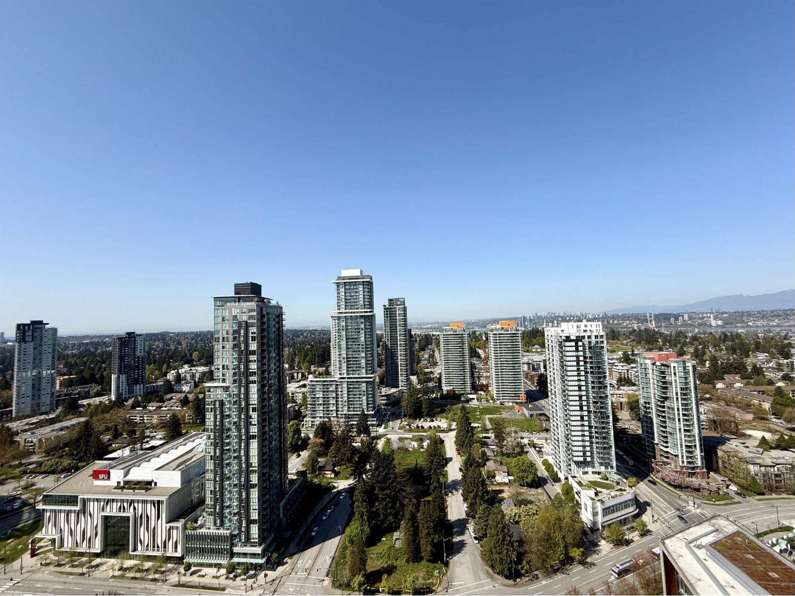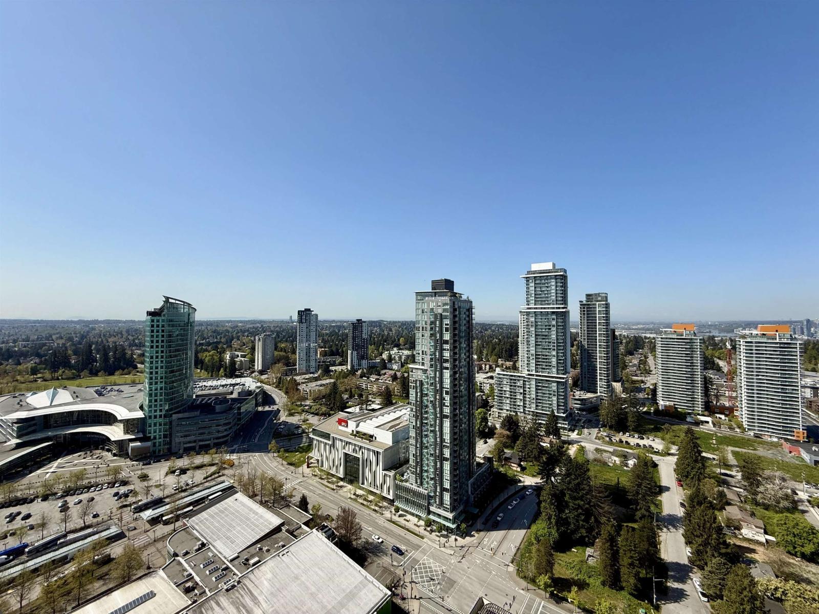 Welcome to this bright west-facing 1 bed, 1 bath home on the 33rd floor at 3 Civic Plaza, offering stunning city views from 516 sq.ft. This well-designed unit features hardwood floors, open concept kitchen with quartz countertops and stainless steel appliances, radiant heating, air conditioning, and in-suite washer/dryer. Includes 1 parking and 1 storage locker. Steps to Surrey Central SkyTrain, SFU, library, recreation centre, shopping, and dining. (id:44393)